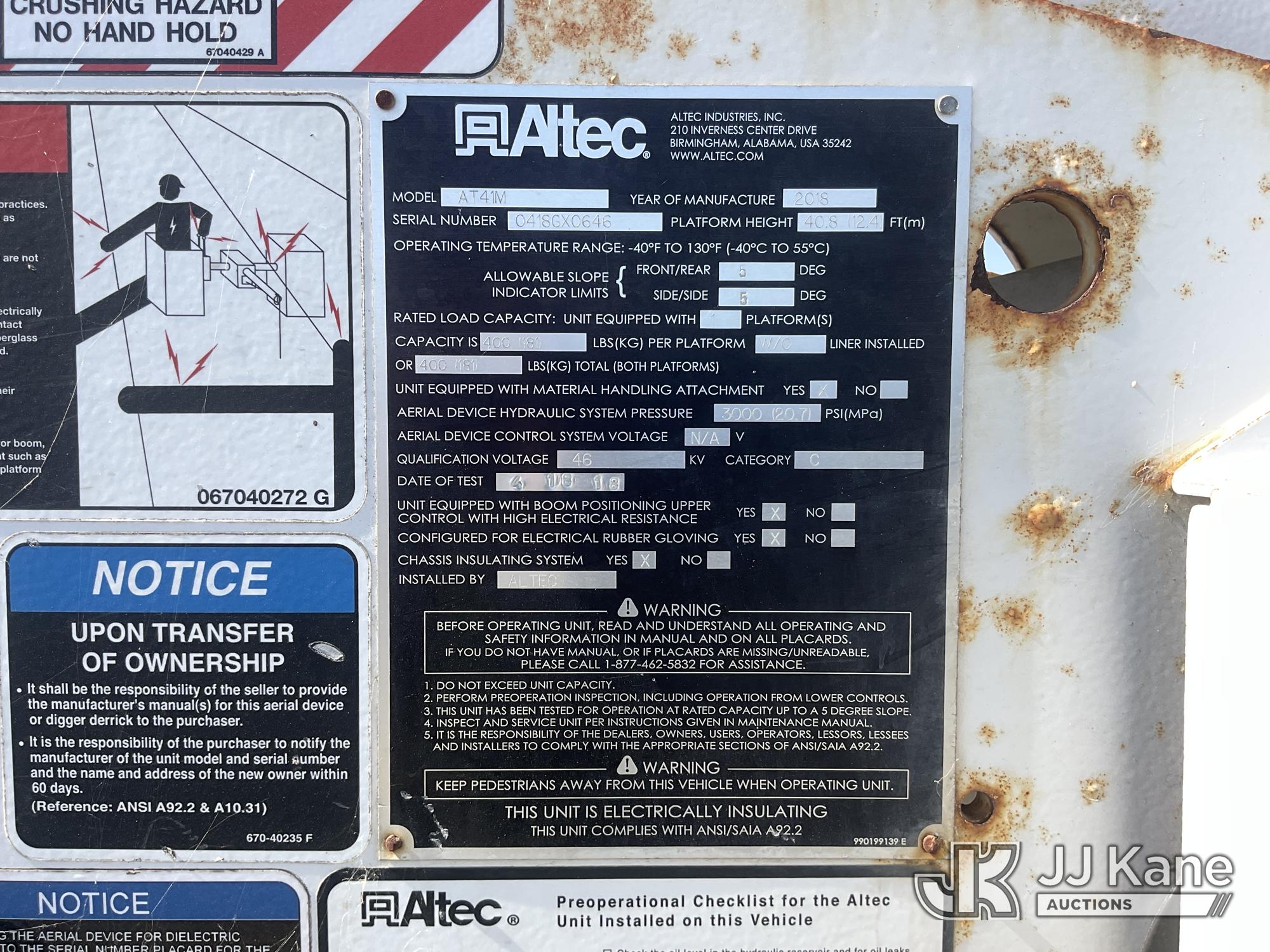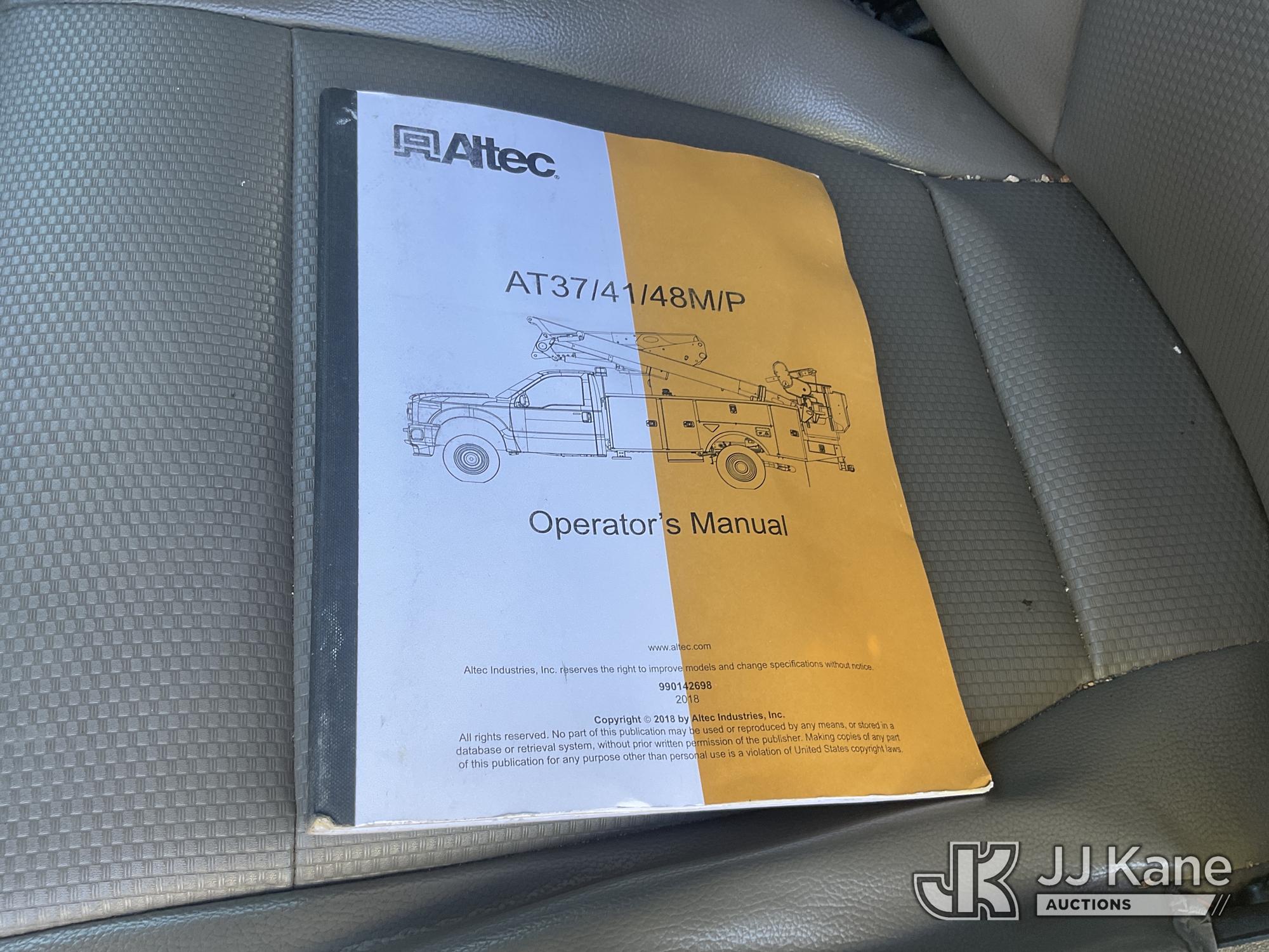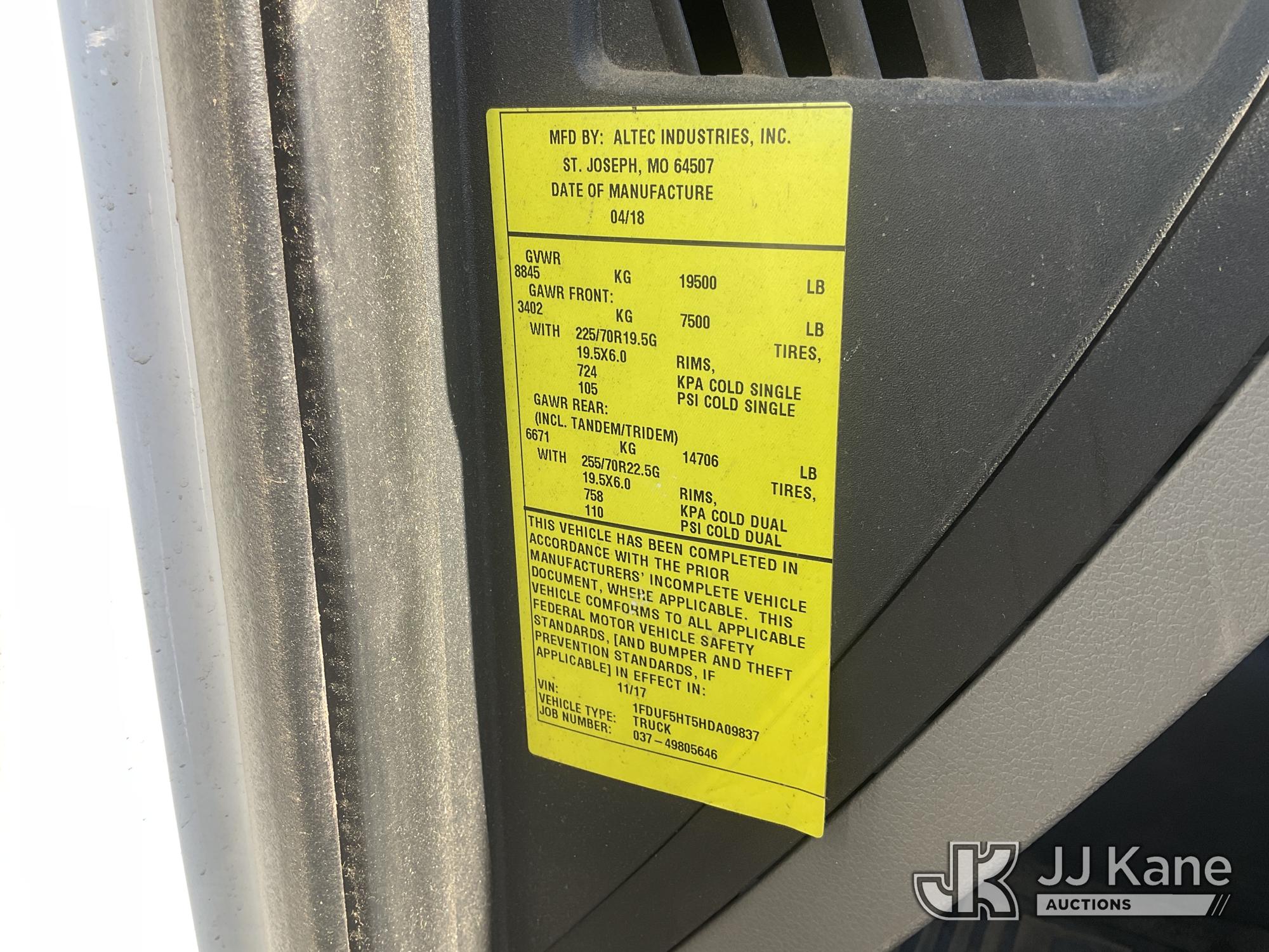 Altec AT41M, 45 ft, Articulating & Telescopic Material Handling Bucket Truck s/n 0418GX0646, with single-man bucket, mounted behind cab on 2017 Ford F-550 Regular Cab DRW 4WD Service Truck, s/n 1FDUF5HT5HDA09837, 6.7L V8 OHV 16V DIESEL, Auto, A/C, with Tow Package, (89,456 miles) (Runs, Moves & Upper Operates, Passenger Side Outrigger Does Not Operate, Rust Damage On Upper Unit) May be subject to ARB Regulations This is a Titled Item*