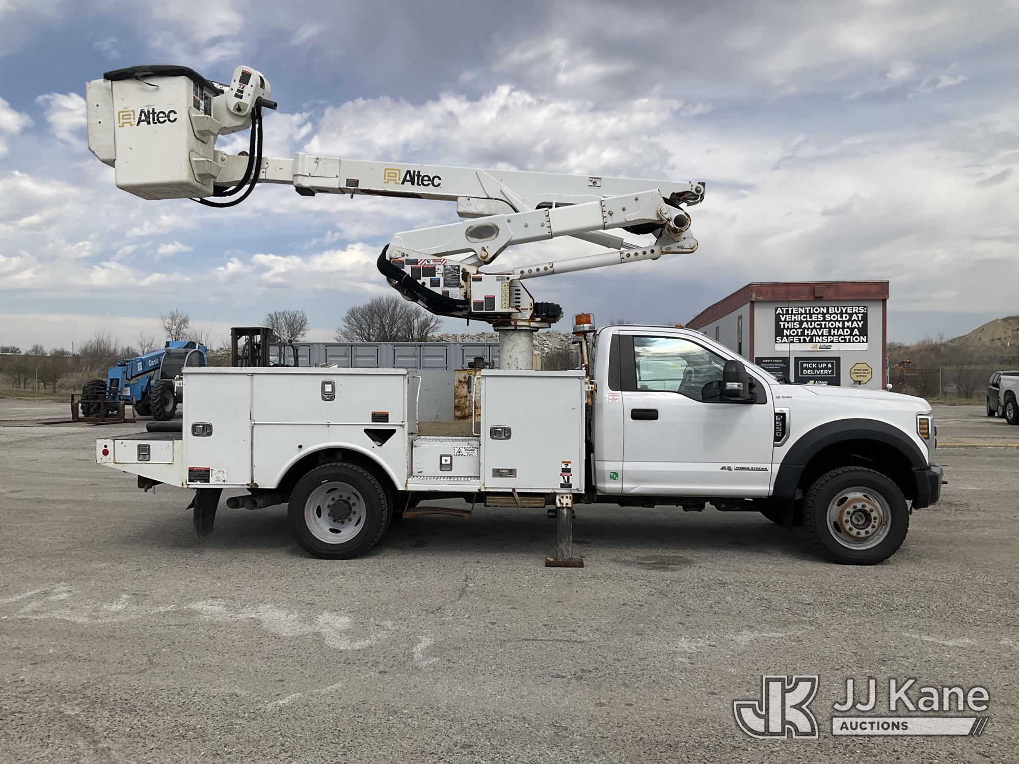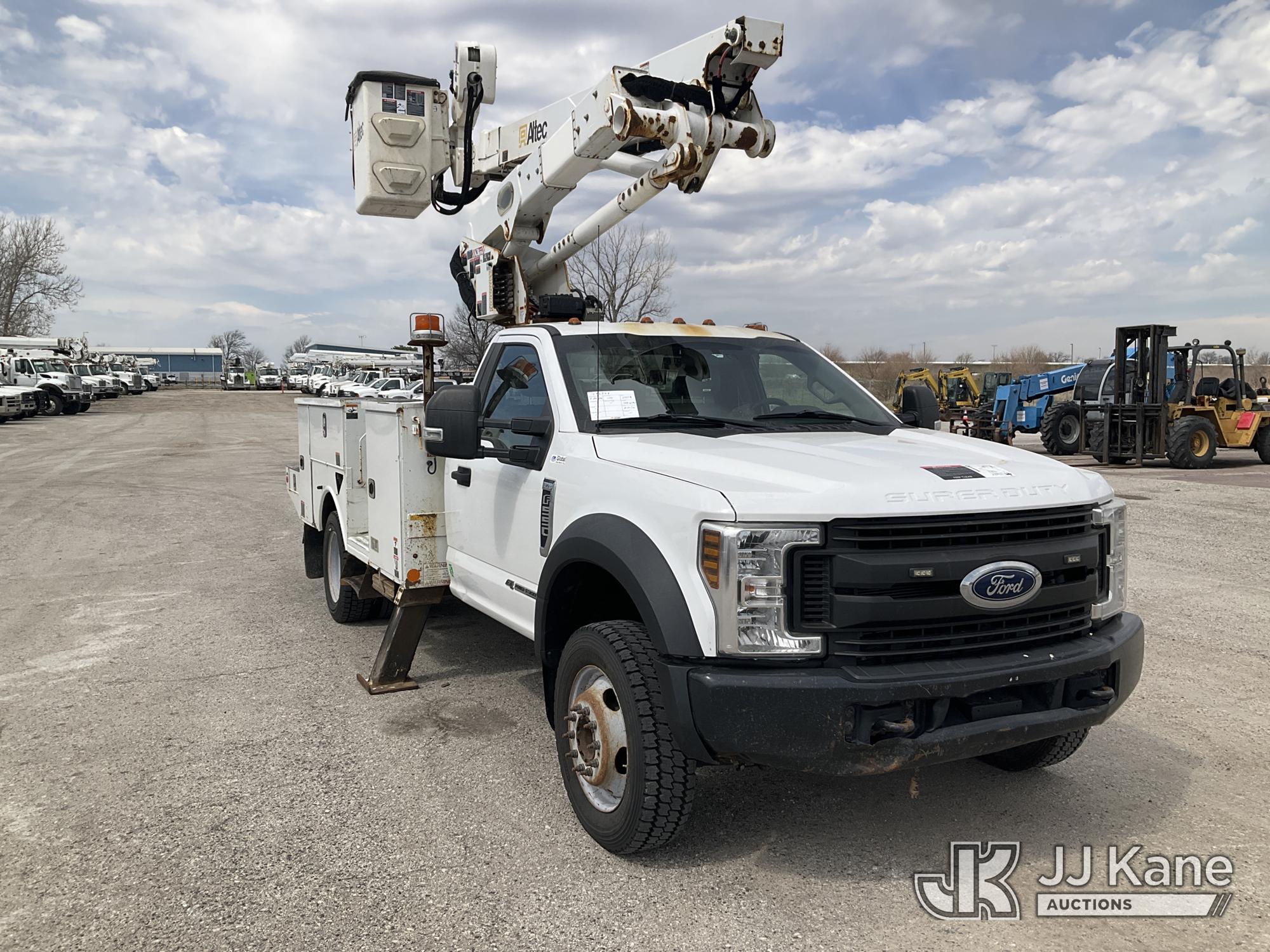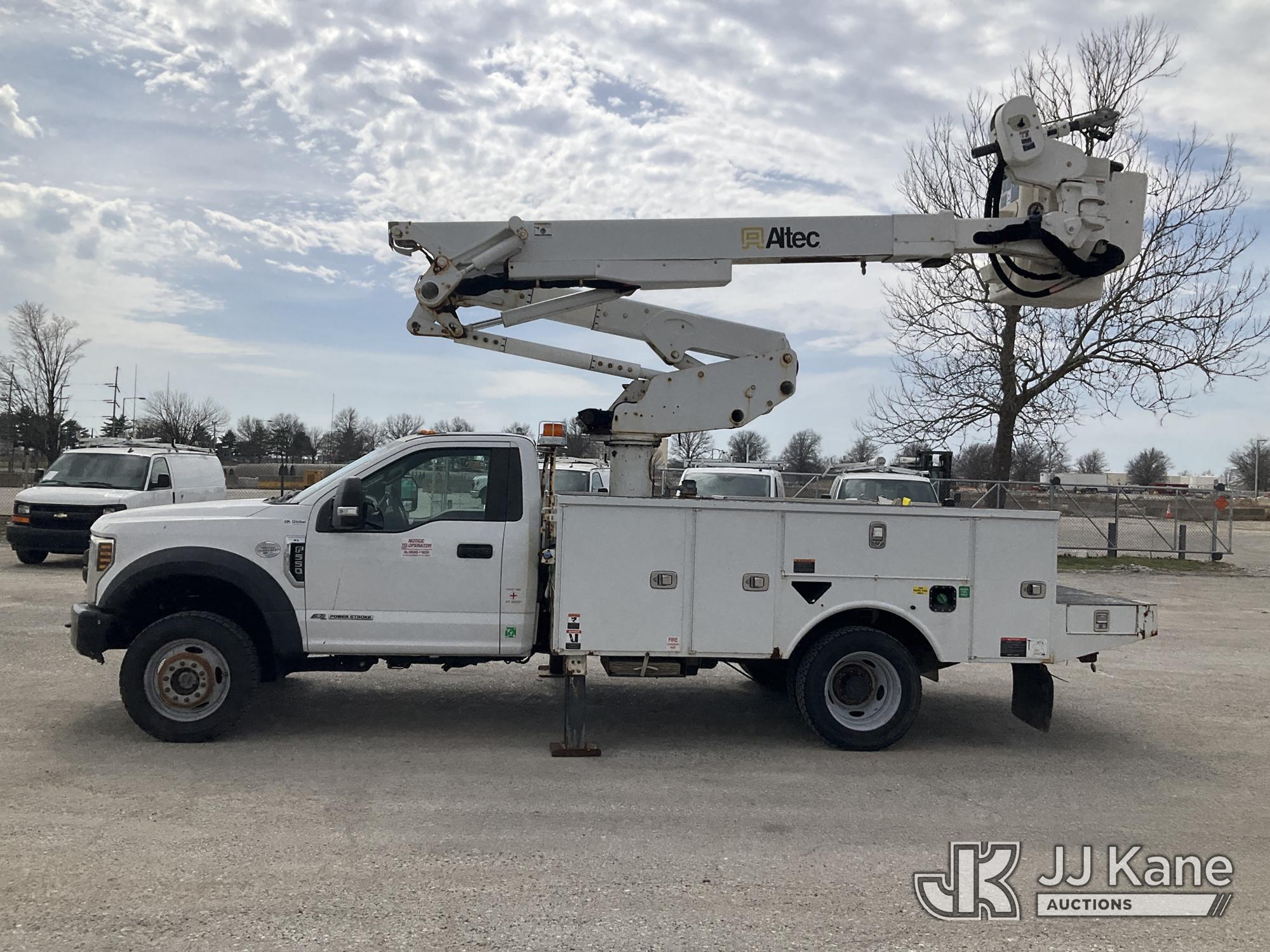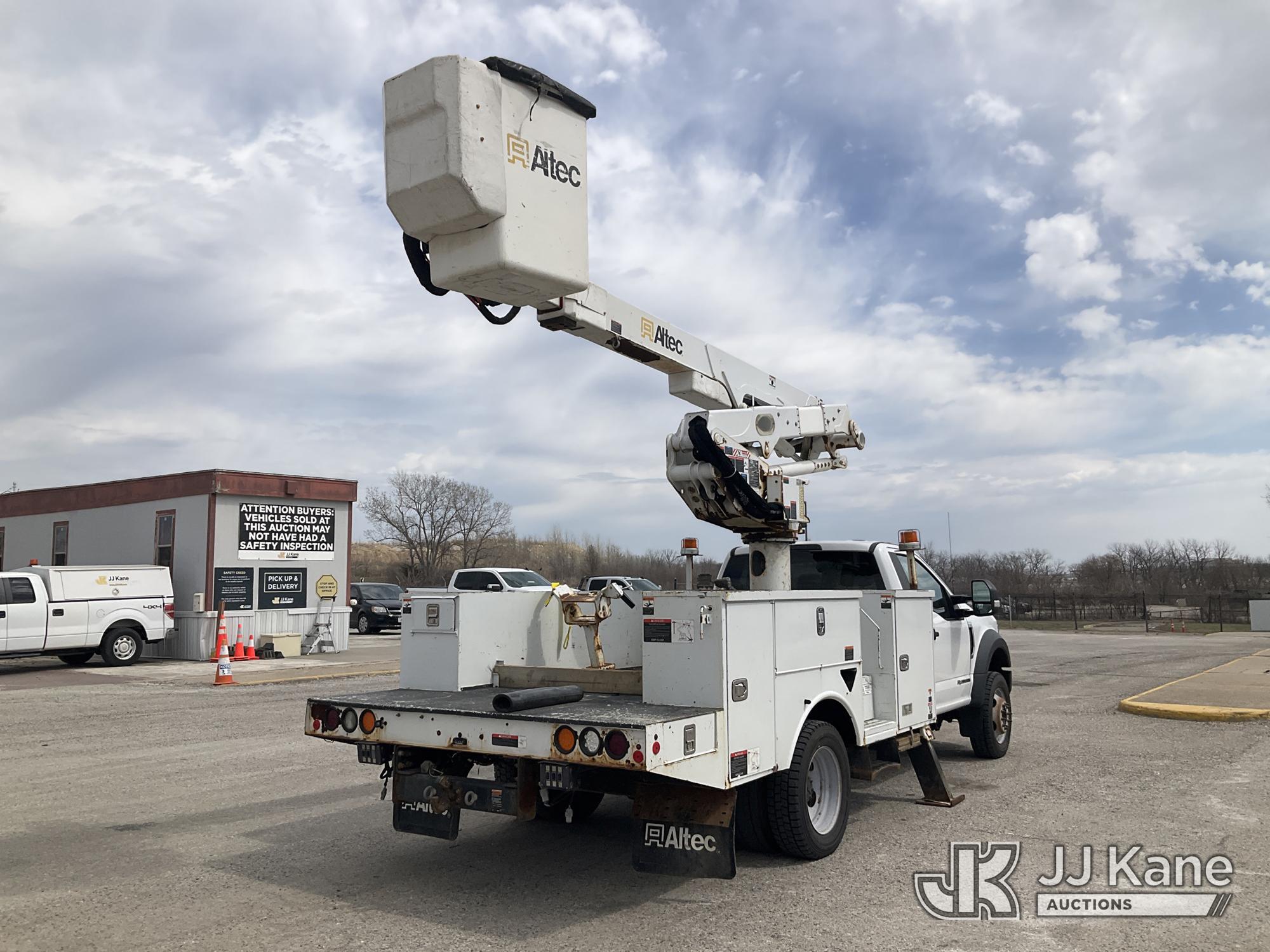 Altec AT41M, 45 ft, Articulating & Telescopic Material Handling Bucket Truck s/n 0219GH1621, with single man bucket, mounted behind cab on 2019 Ford F550 4x4 Service Truck, 6.7L diesel, Auto, A/C, (122,664 miles) (Runs, Moves, & Upper Operates) (Has Damage On Inside & Bottom Side Of Compartment Boxes, Dent On Driver Side Fender, Hood, & Passenger Door, Low On Fuel) (Reads 8,451 hours) This is a Titled Item*
