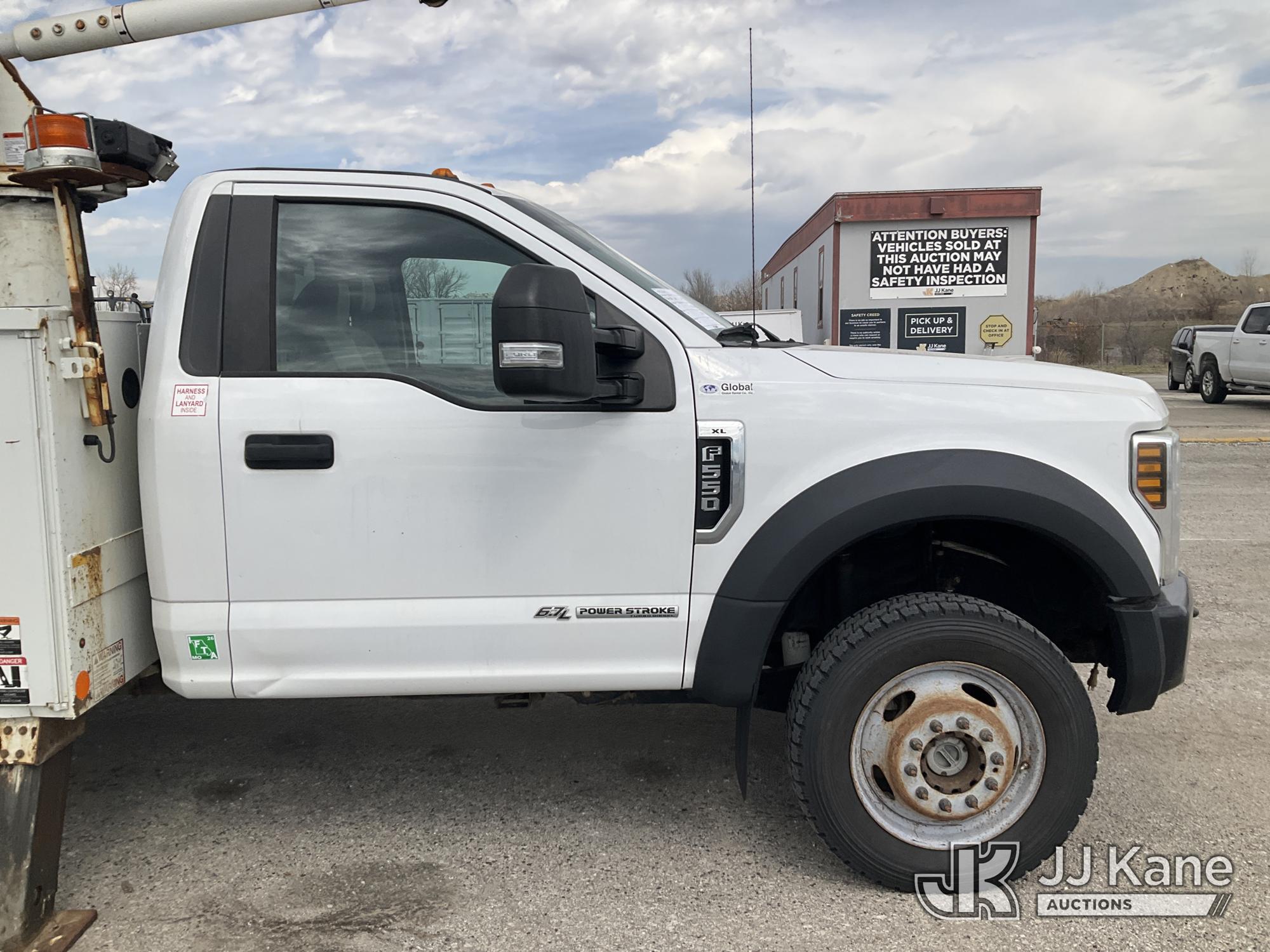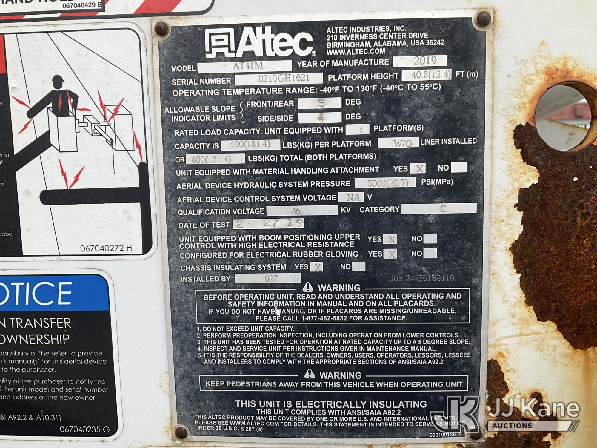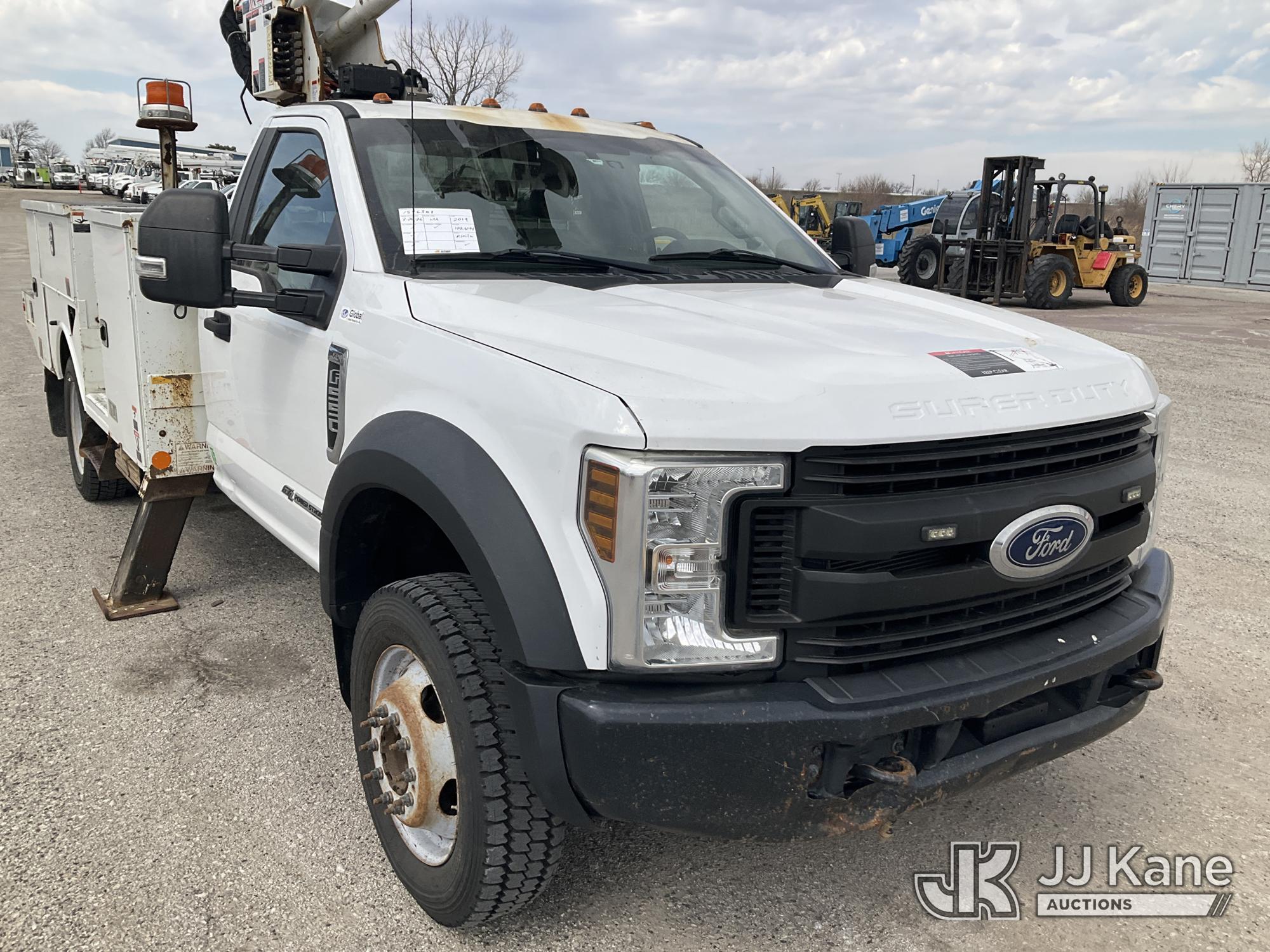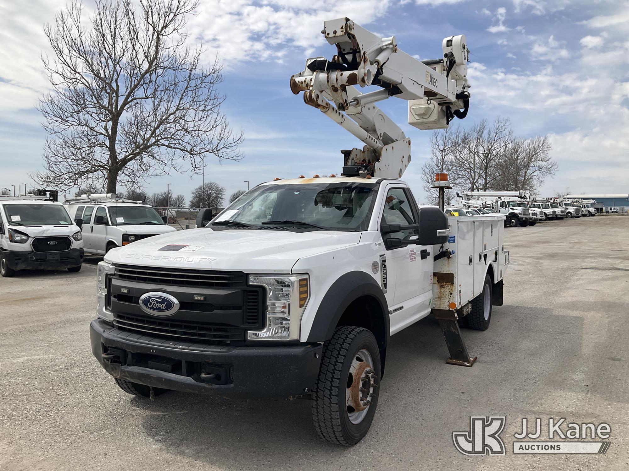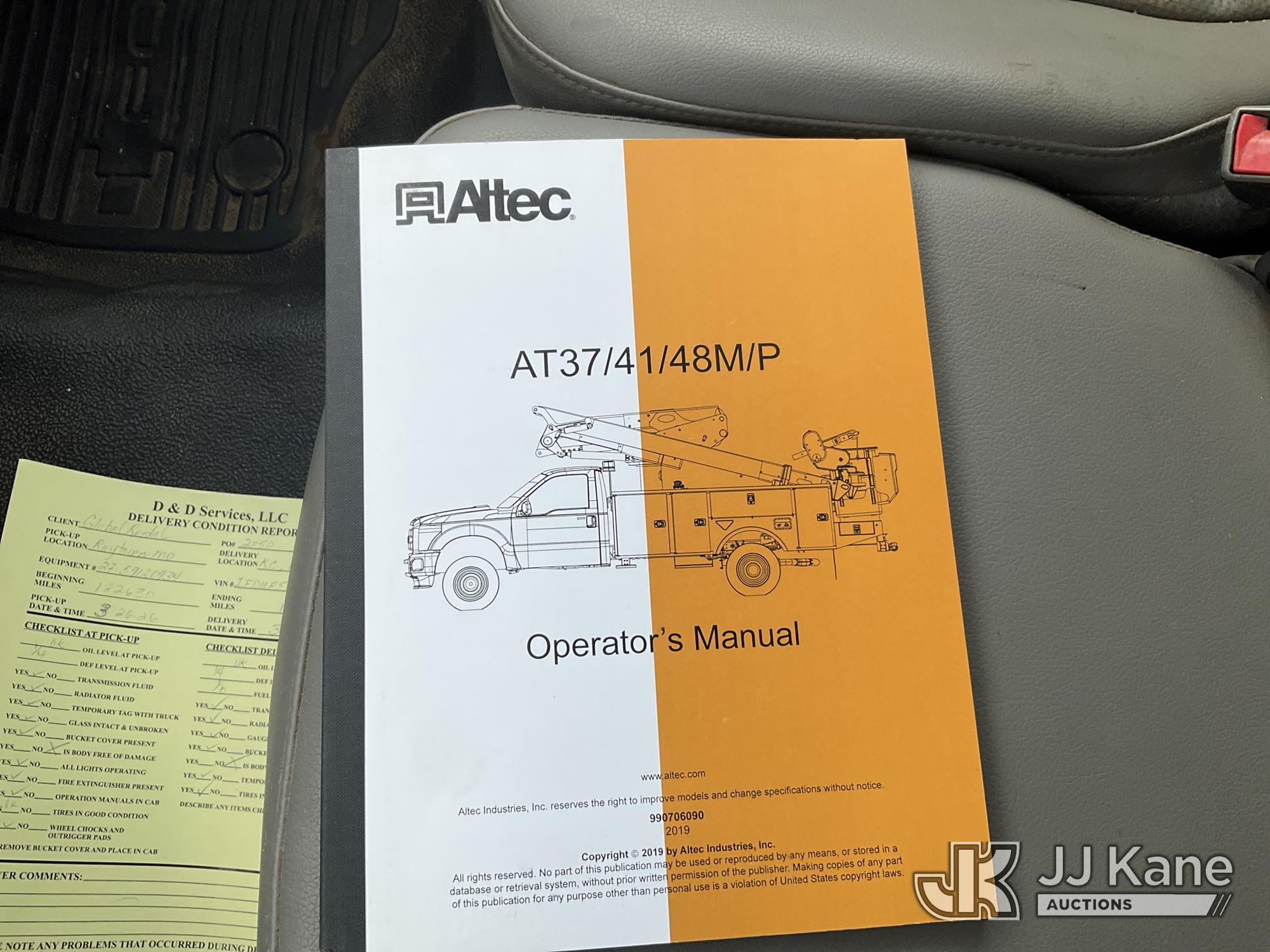 Altec AT41M, 45 ft, Articulating & Telescopic Material Handling Bucket Truck s/n 0219GH1621, with single man bucket, mounted behind cab on 2019 Ford F550 4x4 Service Truck, 6.7L diesel, Auto, A/C, (122,664 miles) (Runs, Moves, & Upper Operates) (Has Damage On Inside & Bottom Side Of Compartment Boxes, Dent On Driver Side Fender, Hood, & Passenger Door, Low On Fuel) (Reads 8,451 hours) This is a Titled Item*
