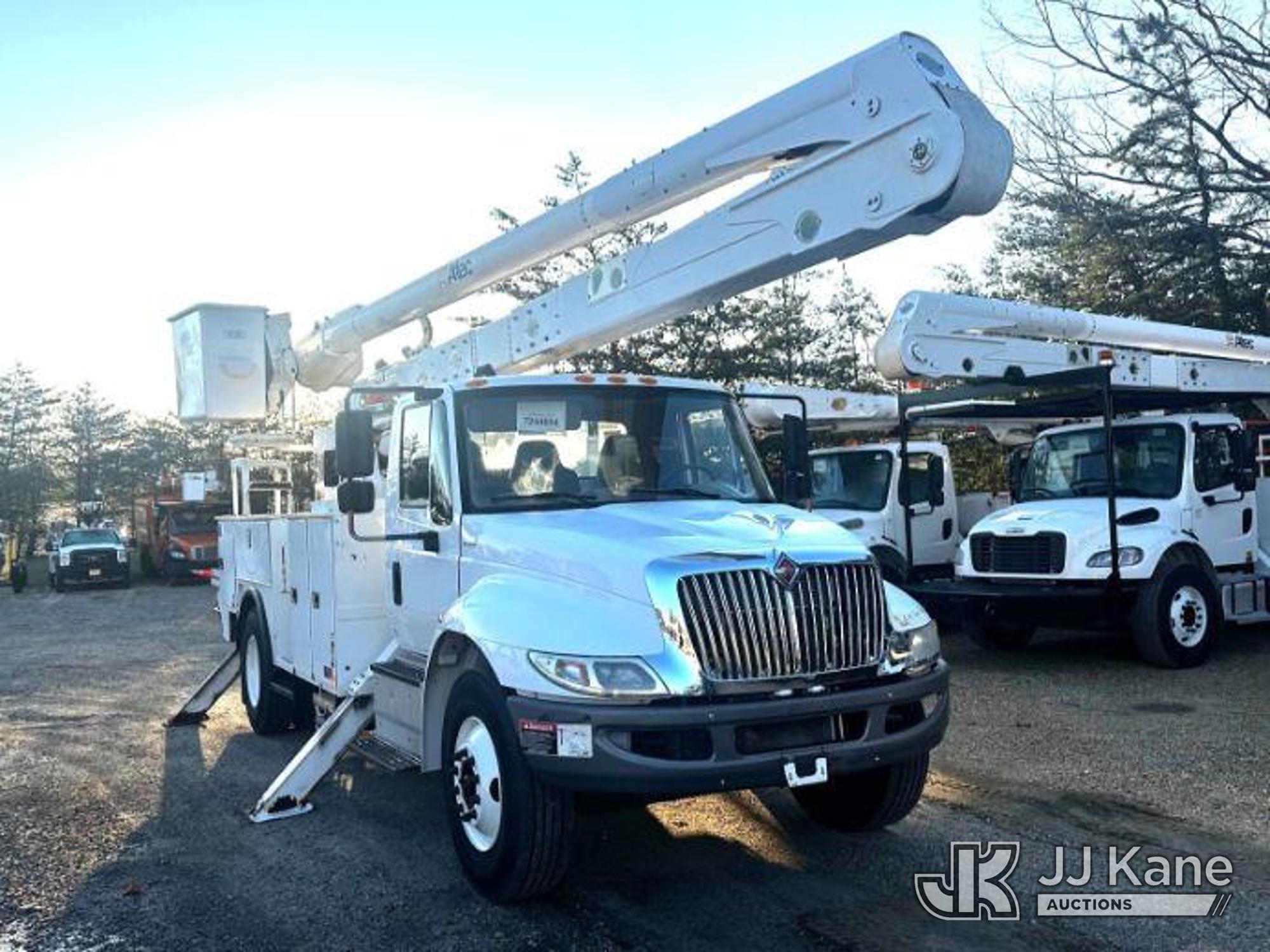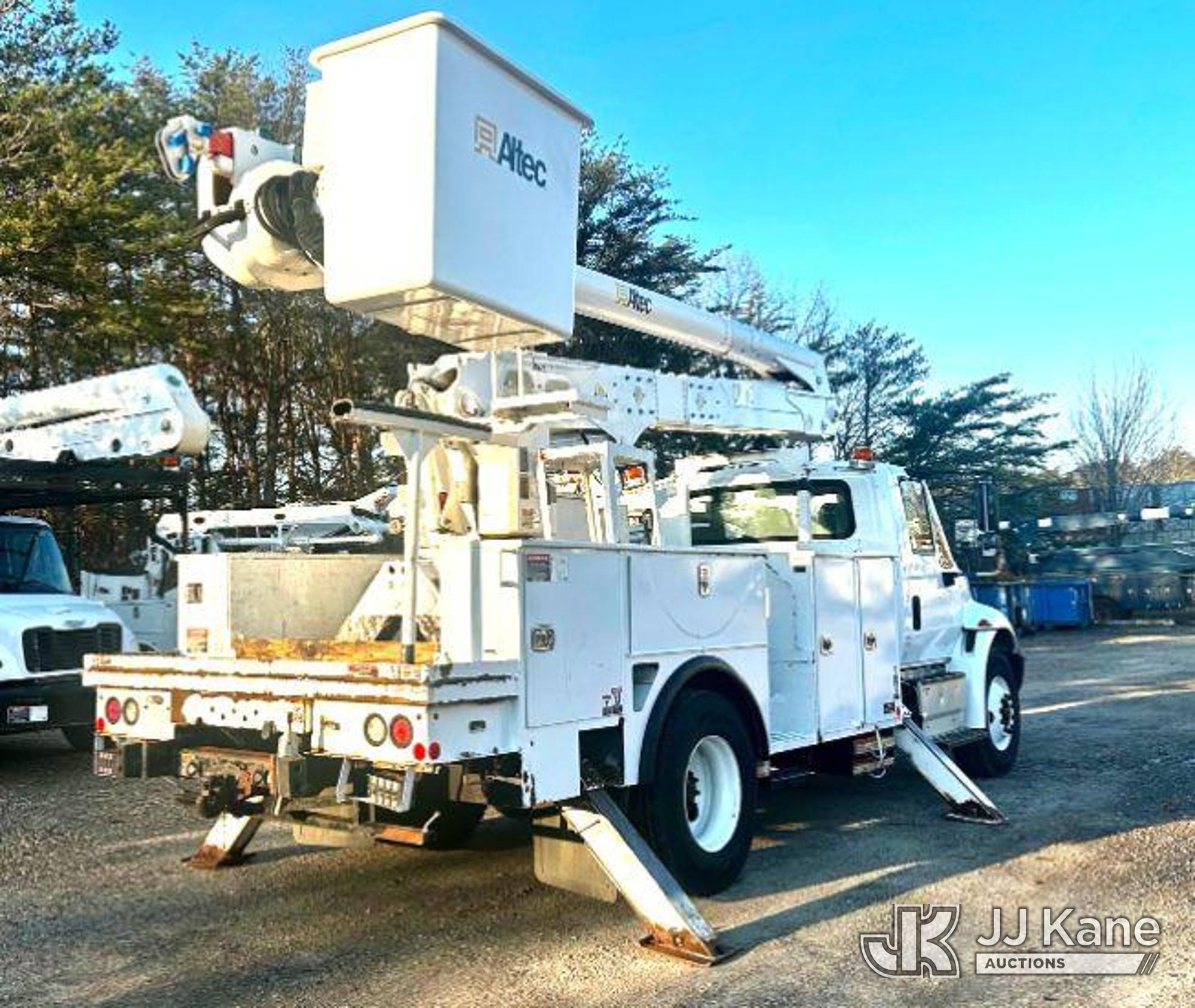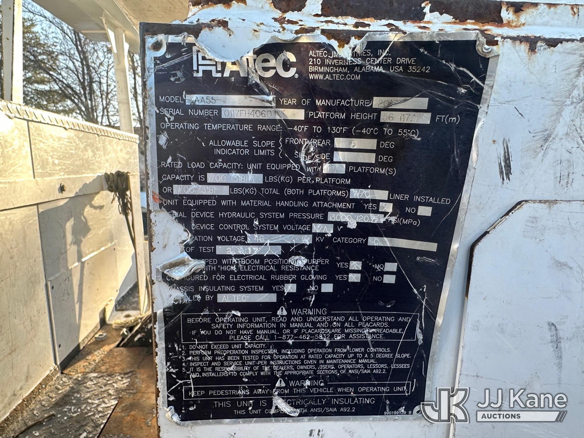 Altec AA55, 60 ft, Material Handling Bucket Truck s/n 0117FH4060, with two-man bucket & 4 hyd outriggers, rear mounted on 2017 International 4300 Utility Truck, Cummins 6.7L Diesel, Auto, A/C, (62,109 miles) (Runs, Moves & Upper Operates) (Body/Rust Damage) This is a Titled Item*