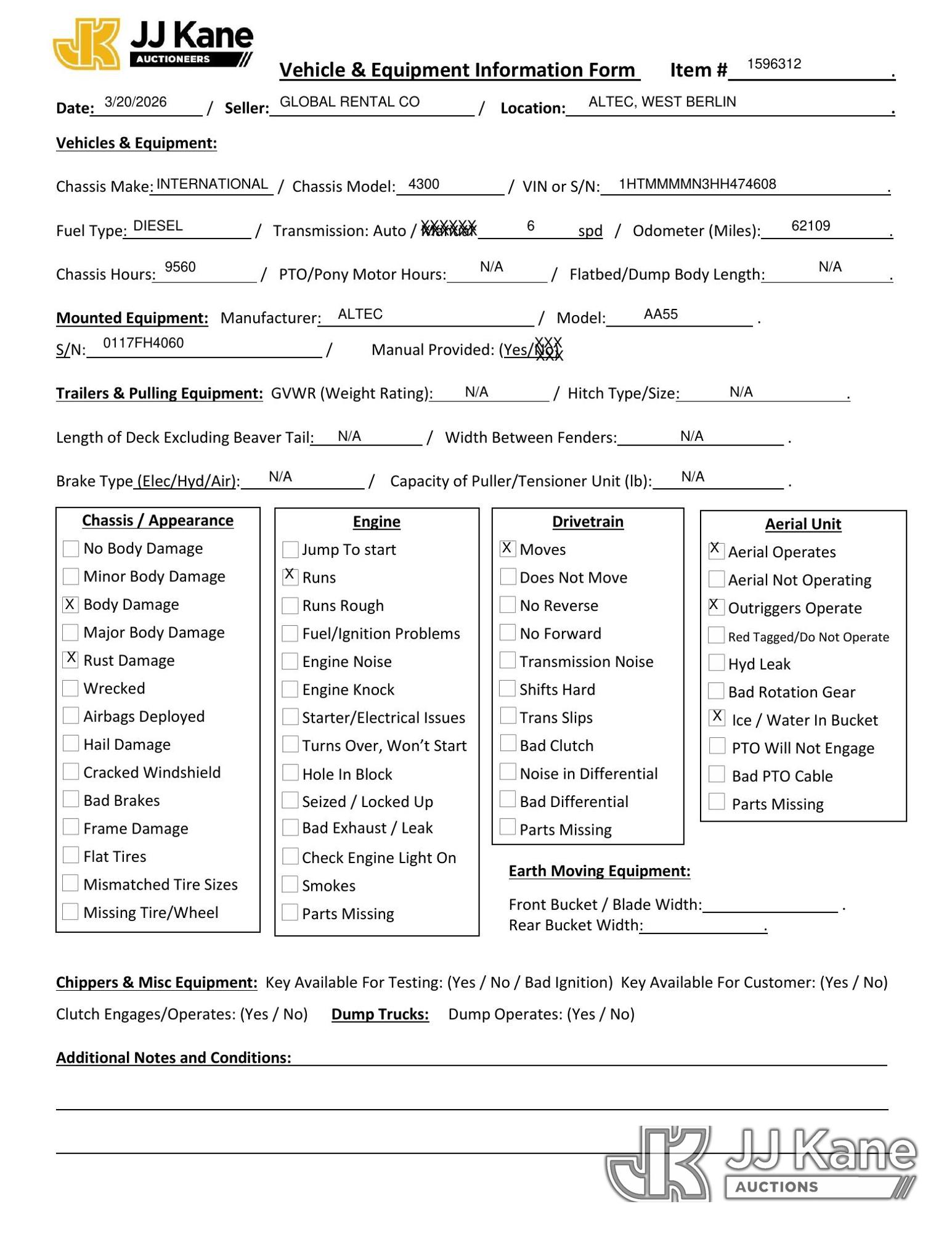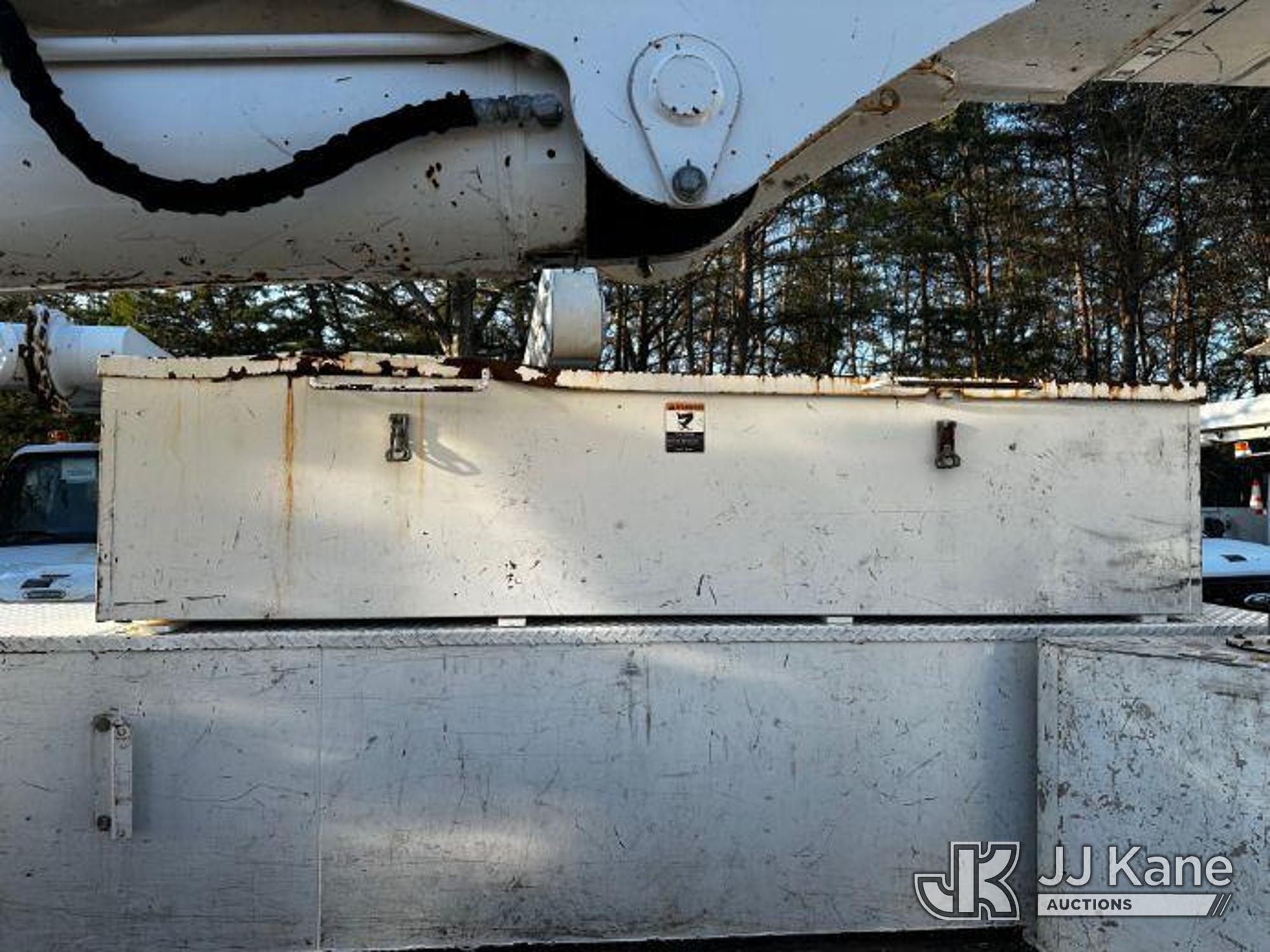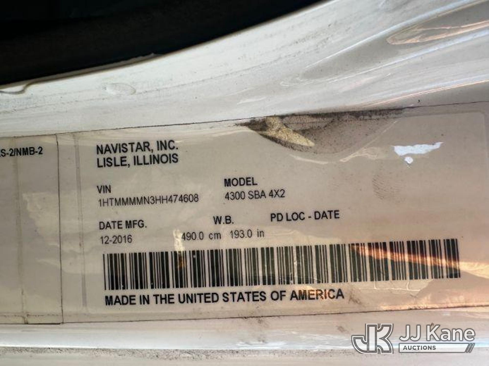 Altec AA55, 60 ft, Material Handling Bucket Truck s/n 0117FH4060, with two-man bucket & 4 hyd outriggers, rear mounted on 2017 International 4300 Utility Truck, Cummins 6.7L Diesel, Auto, A/C, (62,109 miles) (Runs, Moves & Upper Operates) (Body/Rust Damage) This is a Titled Item*
