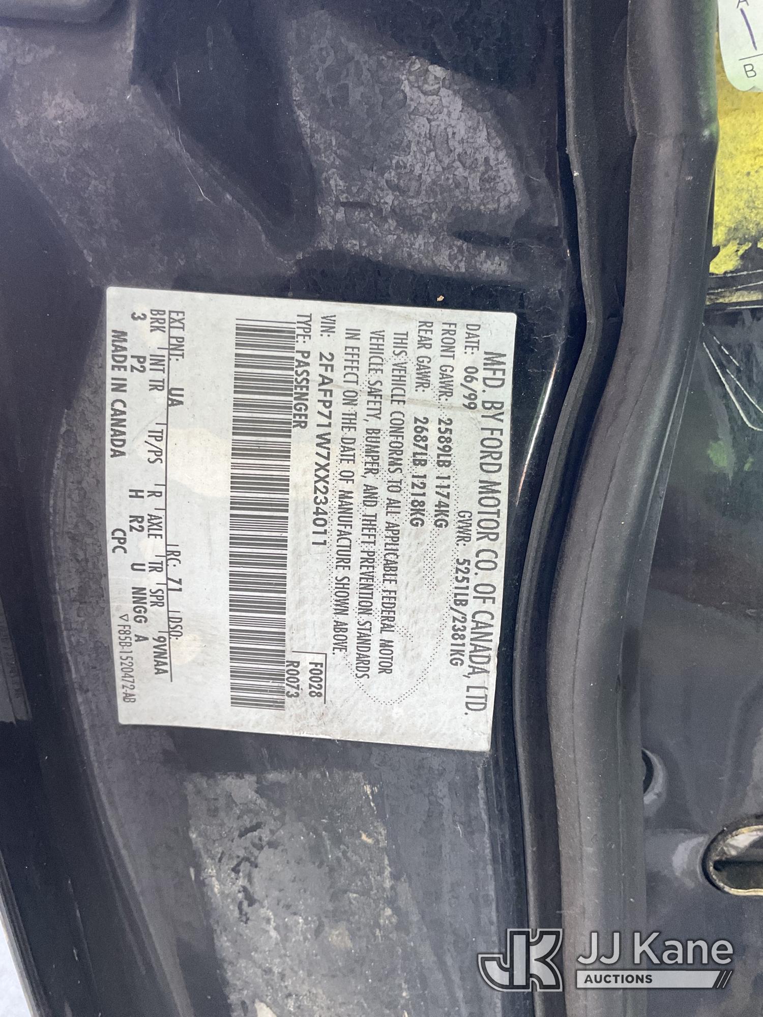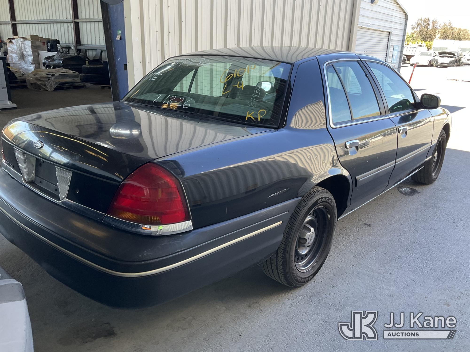 1999 Ford Crown Victoria Police Interceptor 4-Door Sedan, 8-cyl gas, 4-Speed Automatic, A/C, (Exempt from Odometer Disclosure - Reads 146,916 miles) (Runs & Moves) (Missing Catalytic Converter, Engine Light On (Vehicle previously used with a 'cold plate' or protected record registration. Due to the prior status, VIN may not appear in NMVTIS, which could affect DMV title/registration processing. Buyer acknowledges and accepts this) (Bidding Restricted to Licensed Vehicle Dealers Only), This is a Titled Item*