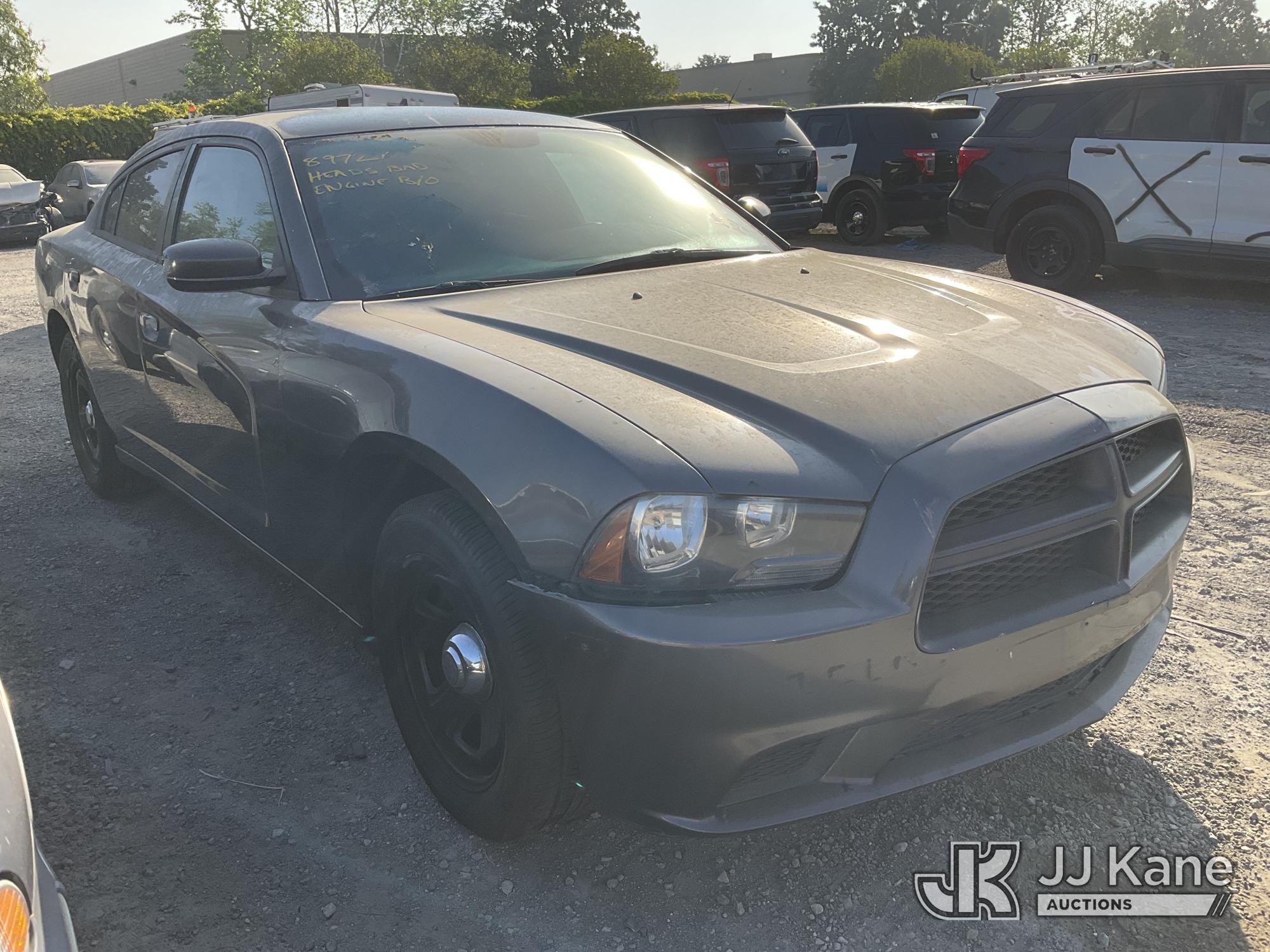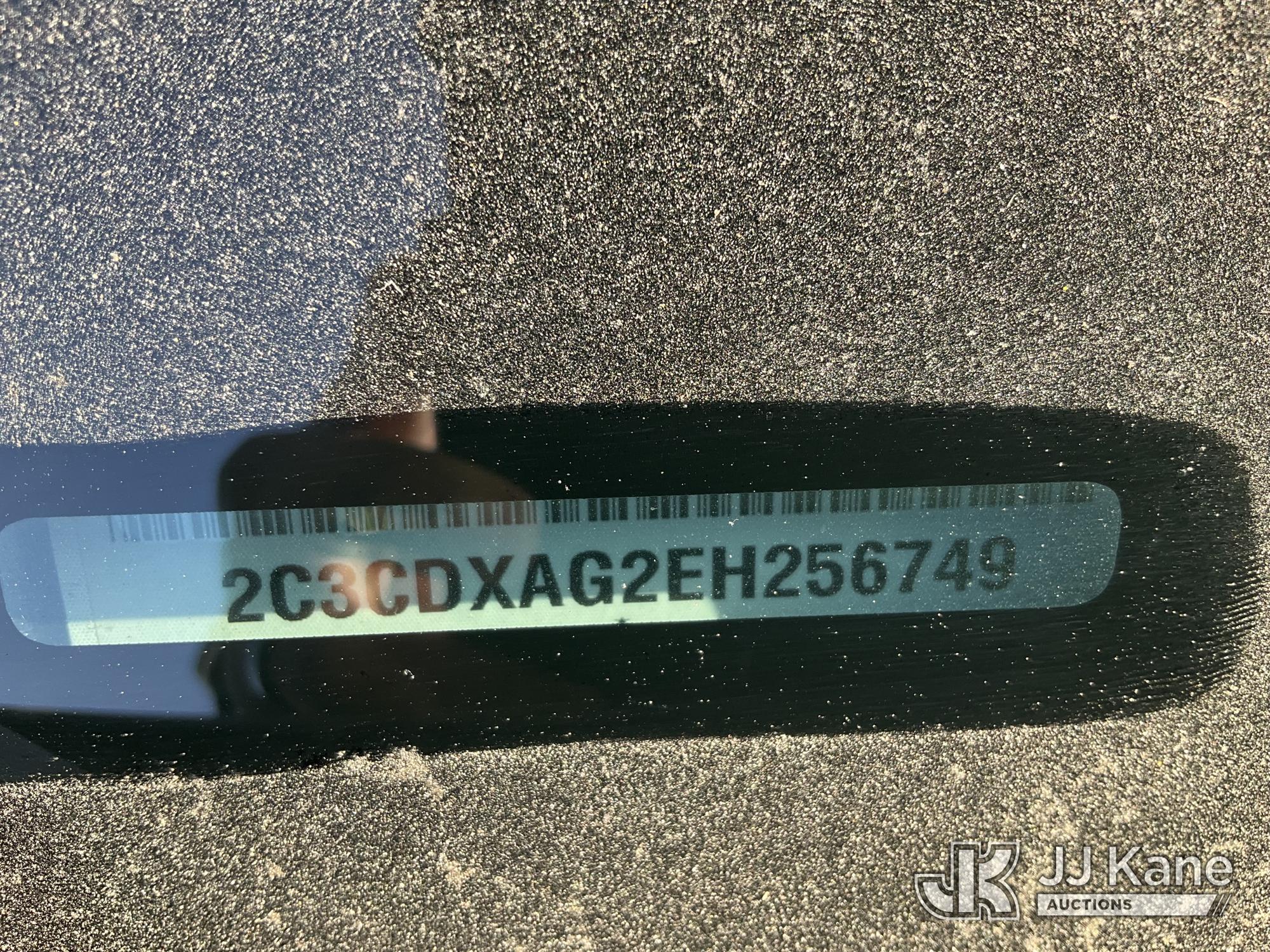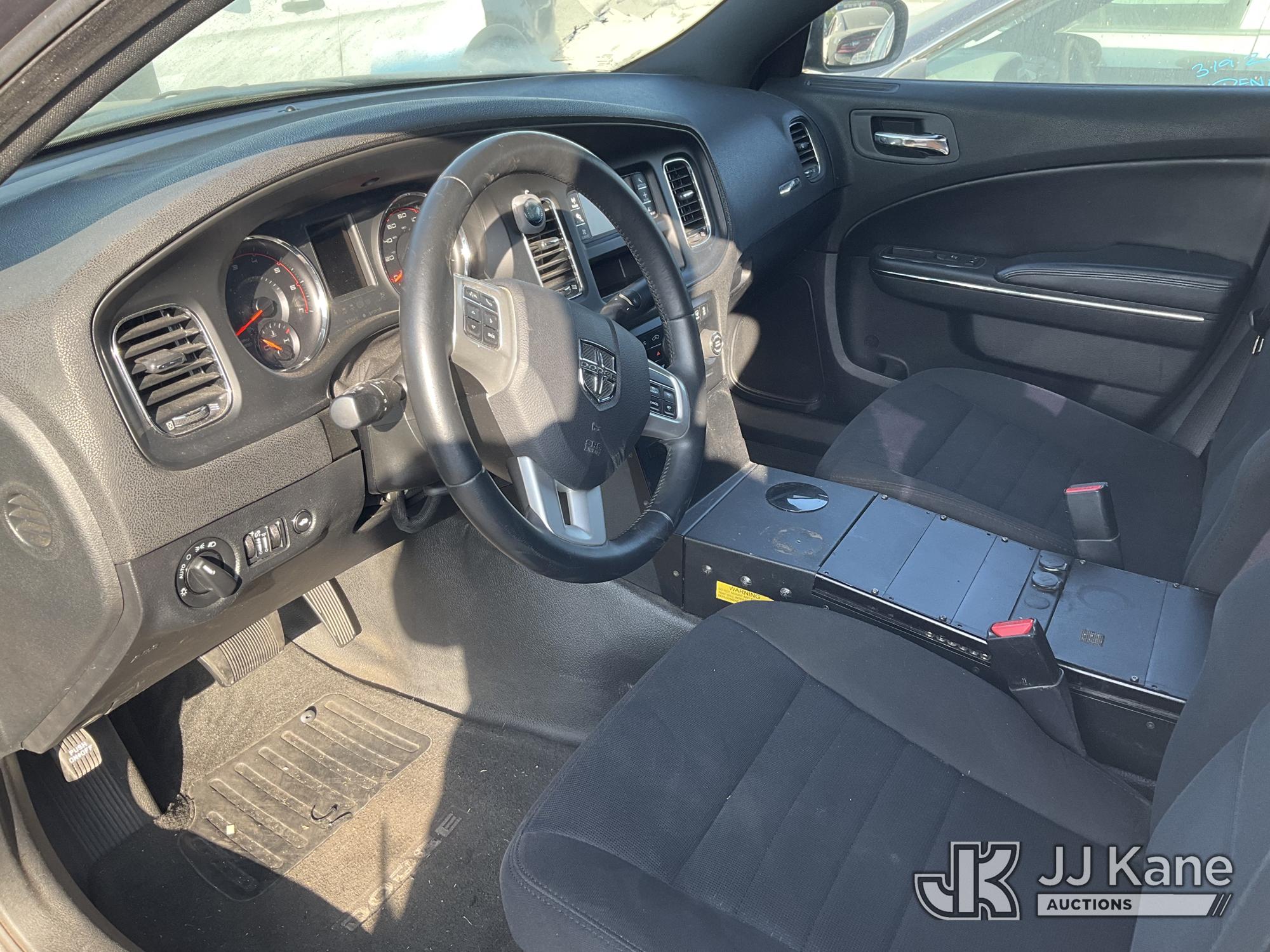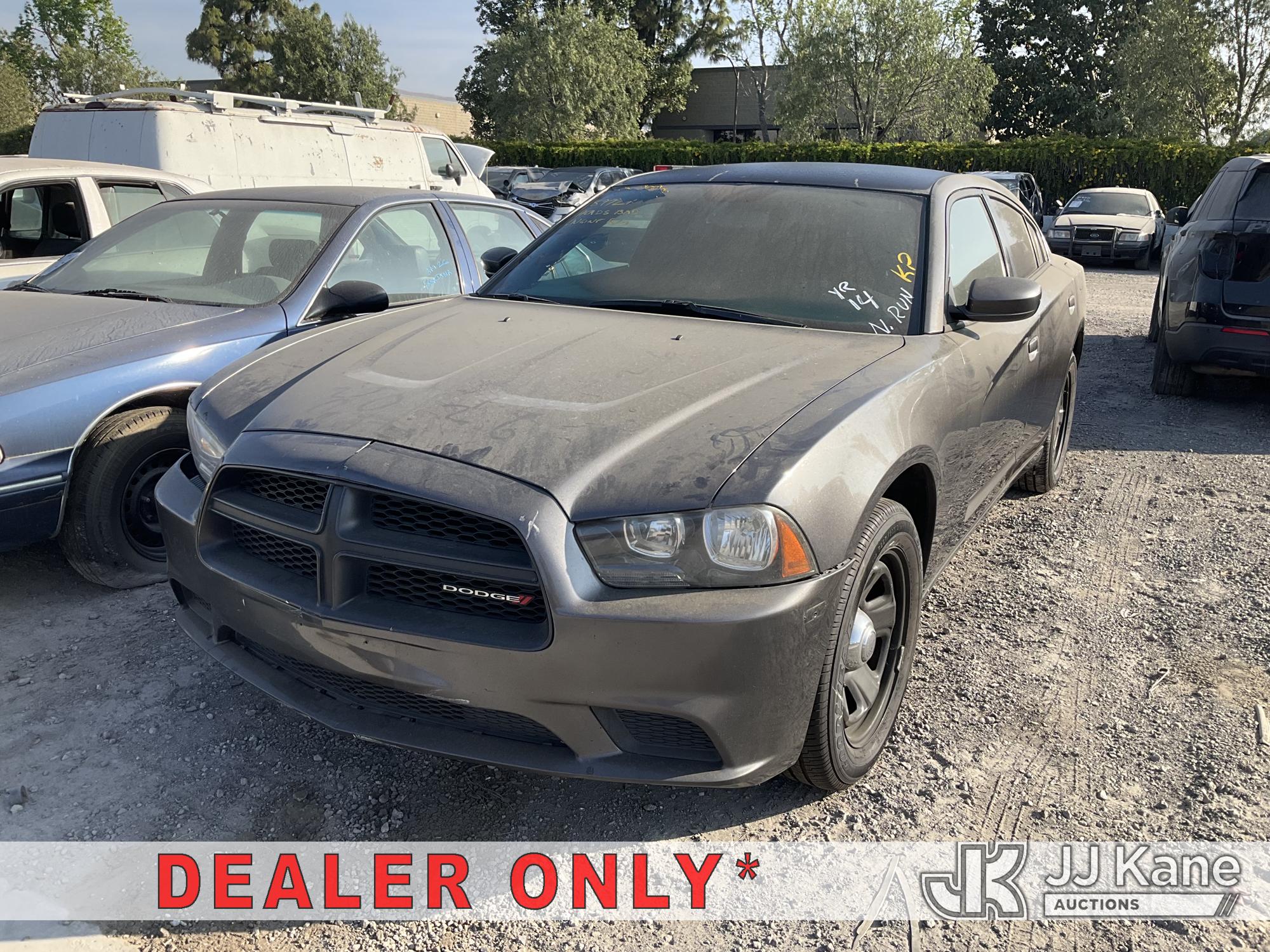 2014 Dodge Charger Police Package 4-Door Sedan, s/n 2C3CDXAG2EH256749, 6-cyl gas, 5-Speed Automatic, A/C, True Mileage Unknown (Not Running, Conditions Unknown) (No Key, Per Seller: Engine Blown Out, Bad Headers, Engine Stripped Of Parts, Must Be Towed) (Bidding Restricted to Licensed Vehicle Dealers Only), This is a Titled Item*