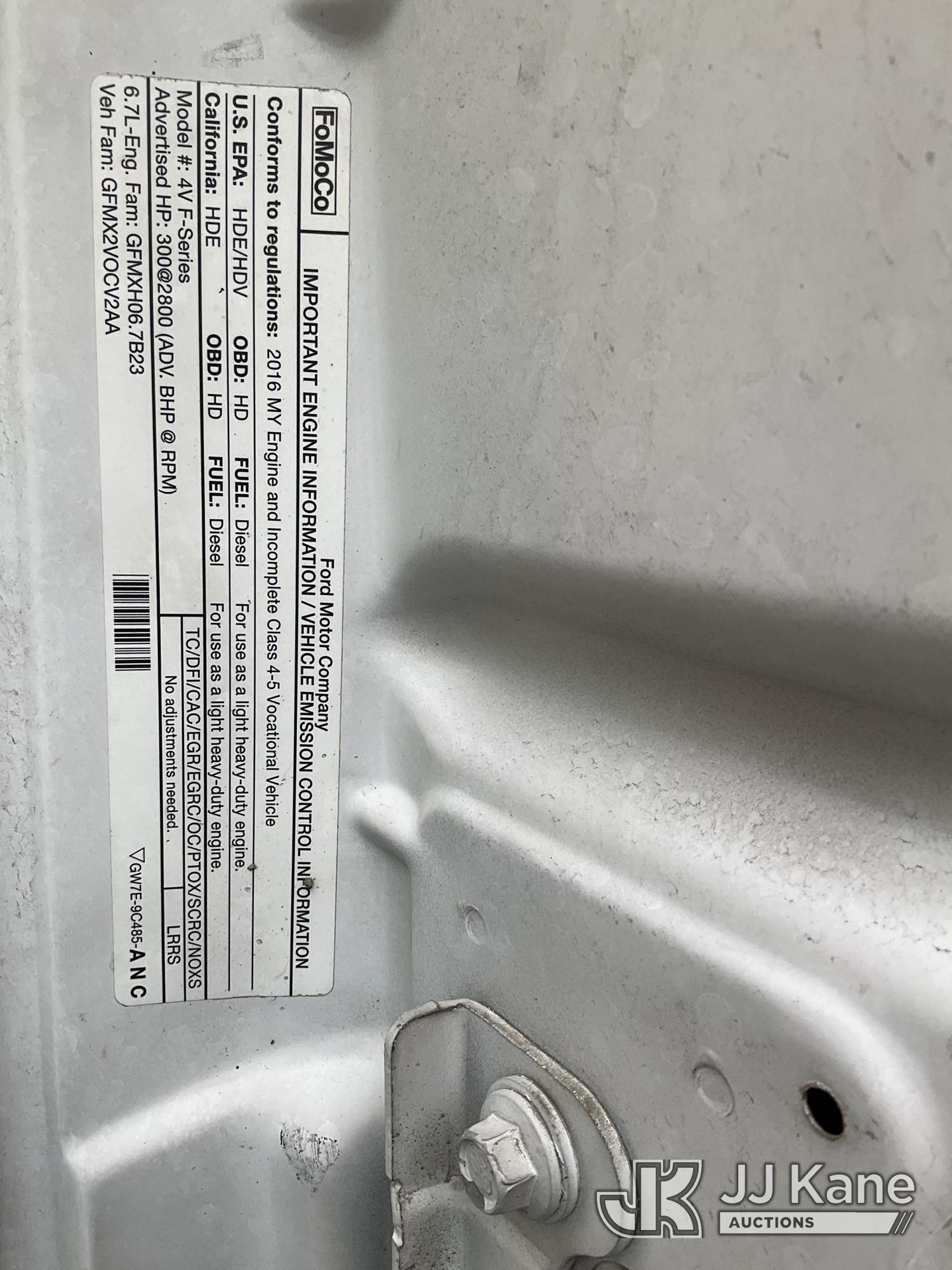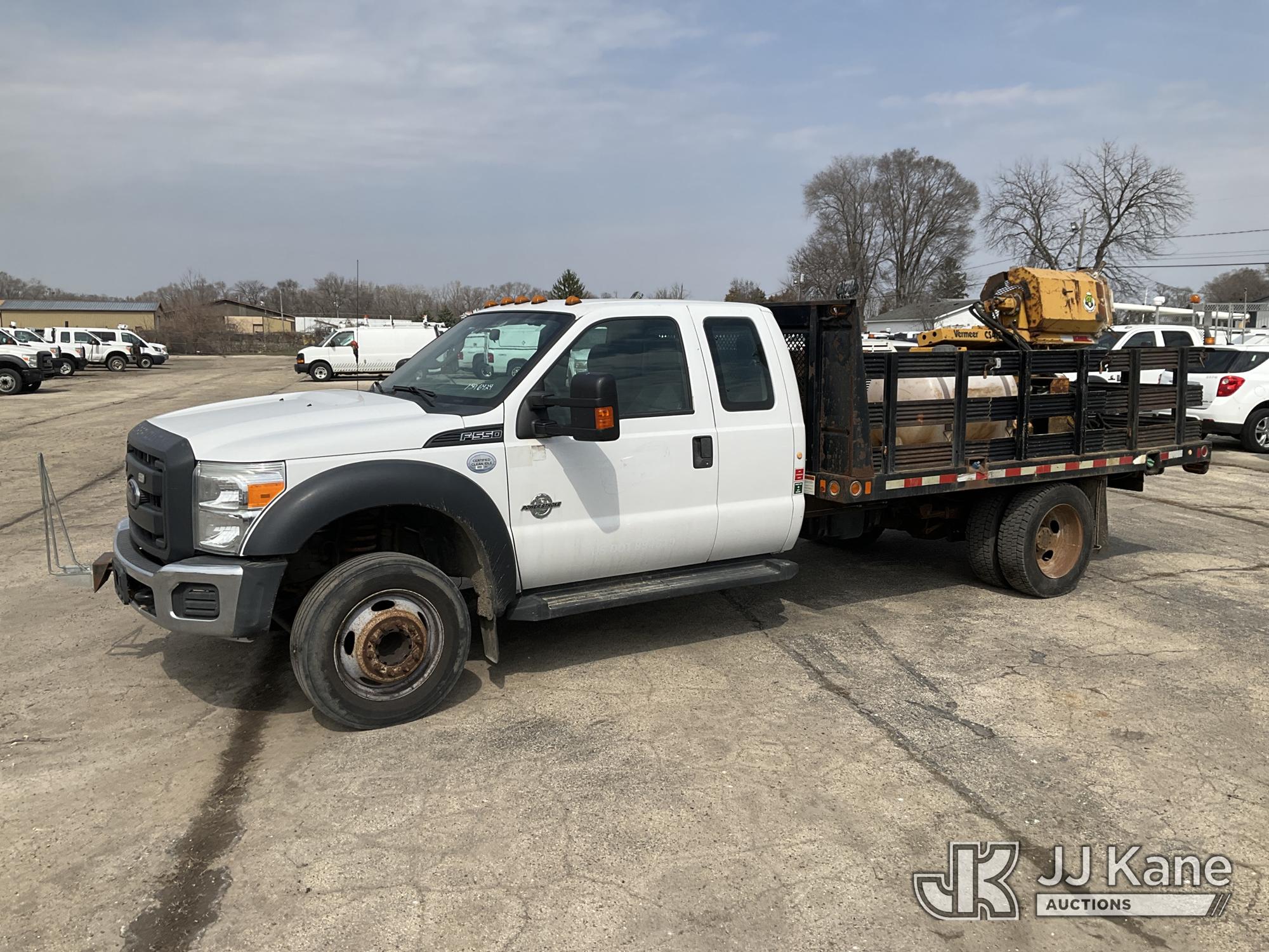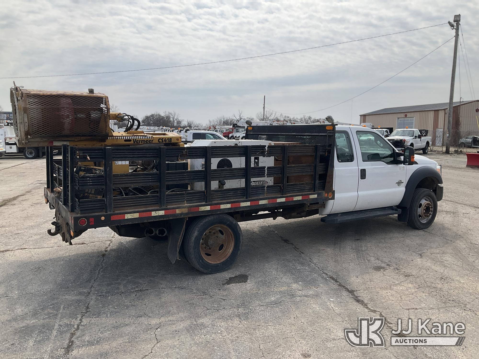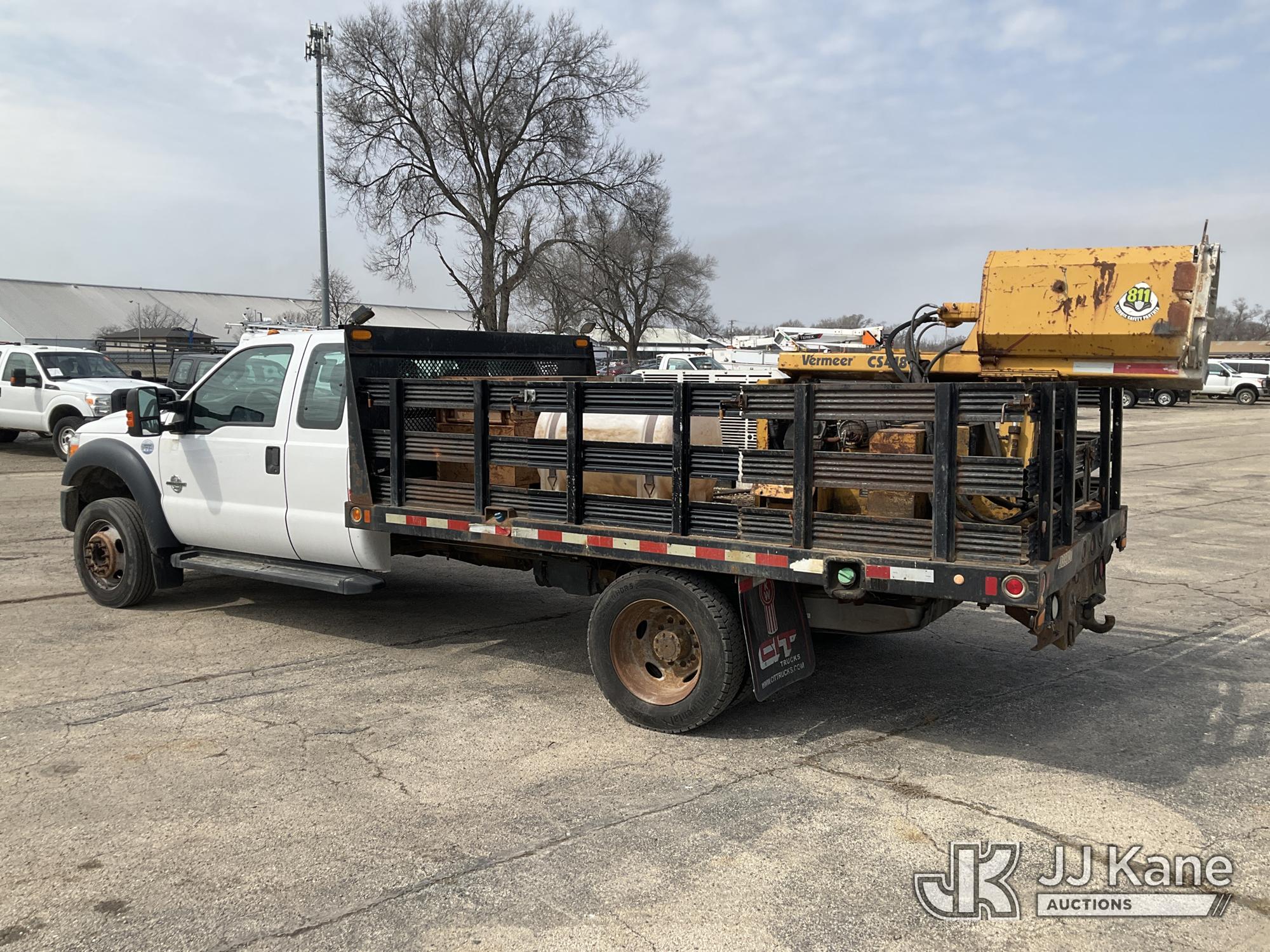 2016 Ford F-550 Extended-Cab Flatbed/Service Truck, 6.7L diesel, RWD, Auto, A/C, with Vermeer core drill, Boss air compressor, stake sides, (117,296 miles) (Runs & Moves)(Boss Air Compressor-Runs, Vermeer Core Drill-Has Power-Does Not Crank-Condition Unknown) (Reads 8,187 hours) This is a Titled Item*