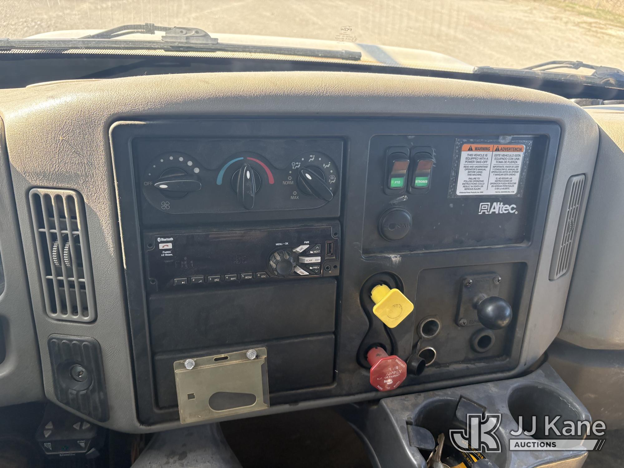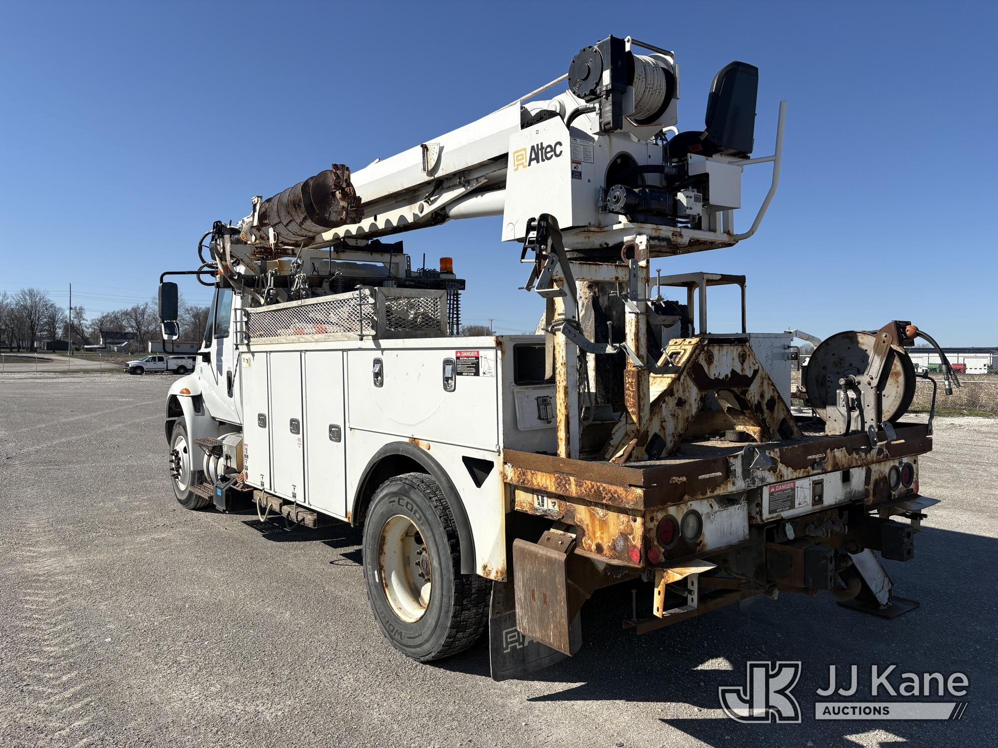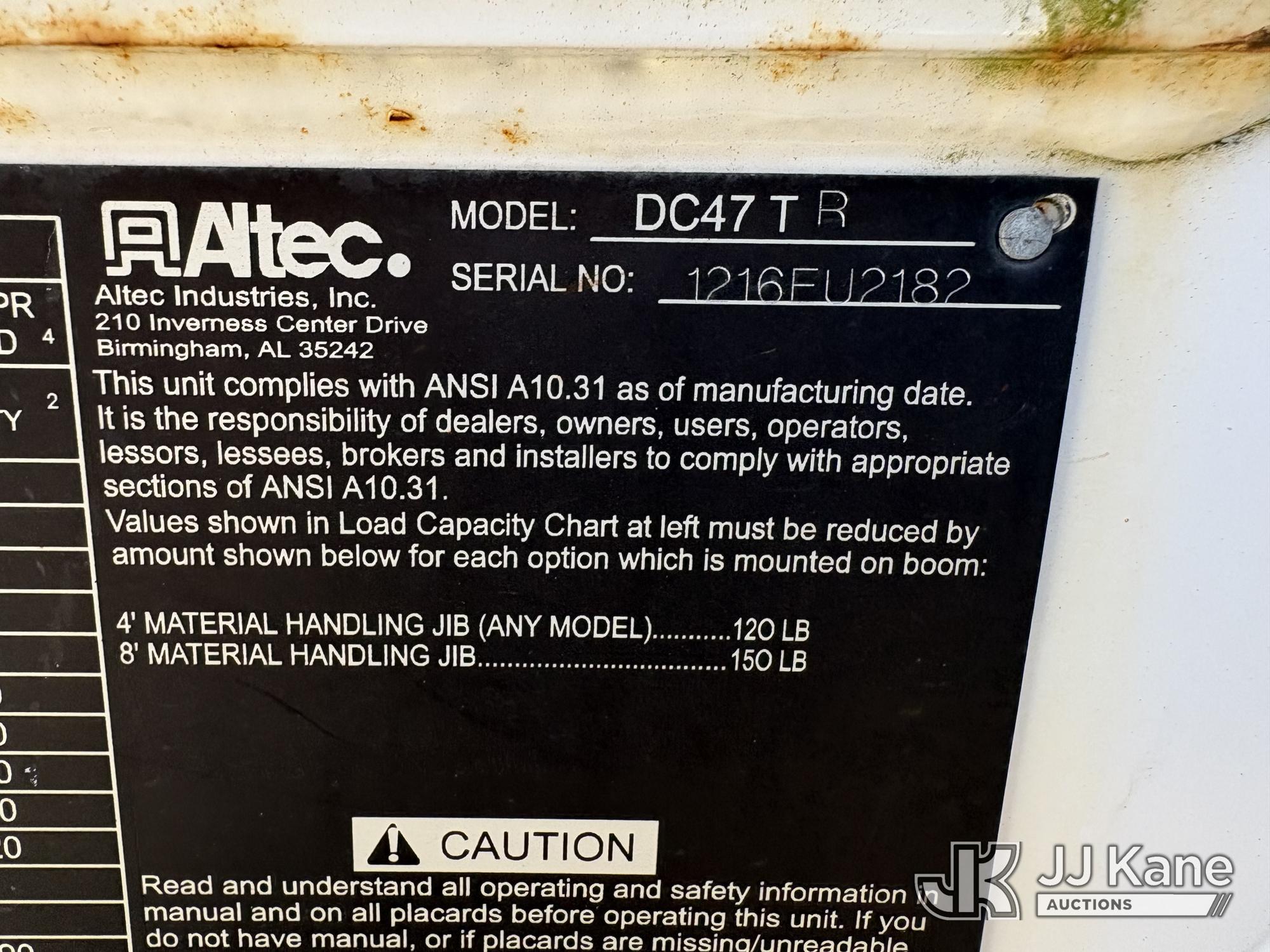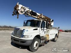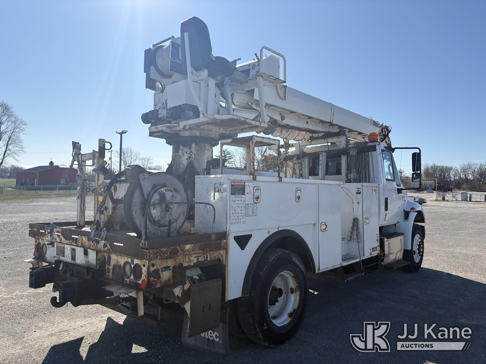 Altec DC47-TR, 23,790 Lb Digger Derrick s/n 1216FU2182, with 47 ft sheave height, 2 spd digger, heel winch, pole grabs, upper controls & riding console, rear mounted on 2018 International DuraStar 4300 Utility Truck, Cummins 4X2, DIESEL, Auto, A/C, (104,527 miles) (Runs, Moves, PTO engages, Outriggers Operate, Upper Unit Not Operating) (Unknown Upper Unit Operating Condition, Will Not Function At Controls, Key Broken Off In Ignition, Rust Damage, Paint Damage) (Reads 13,307 hours) This is a Titled Item*