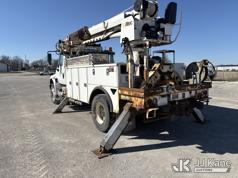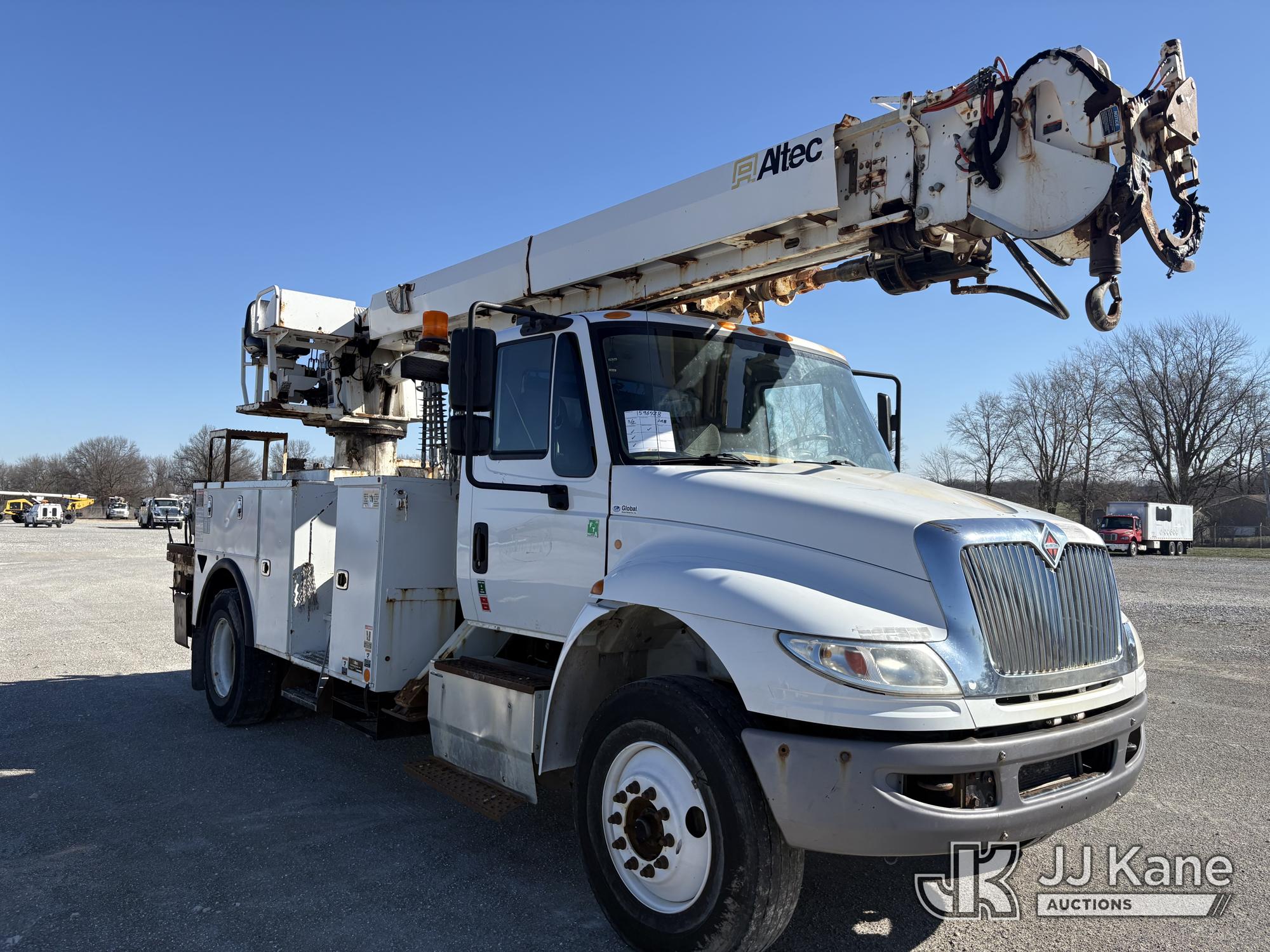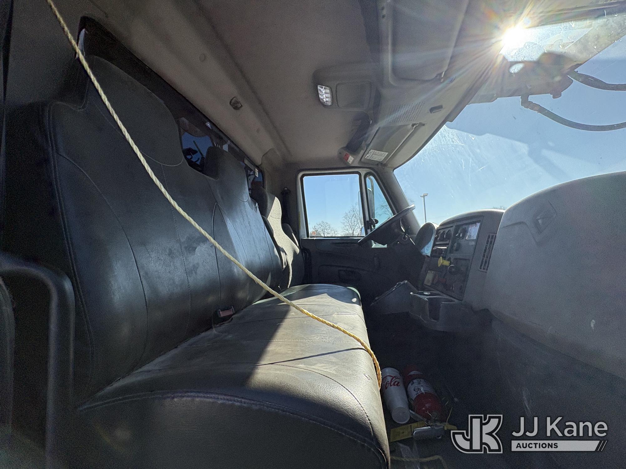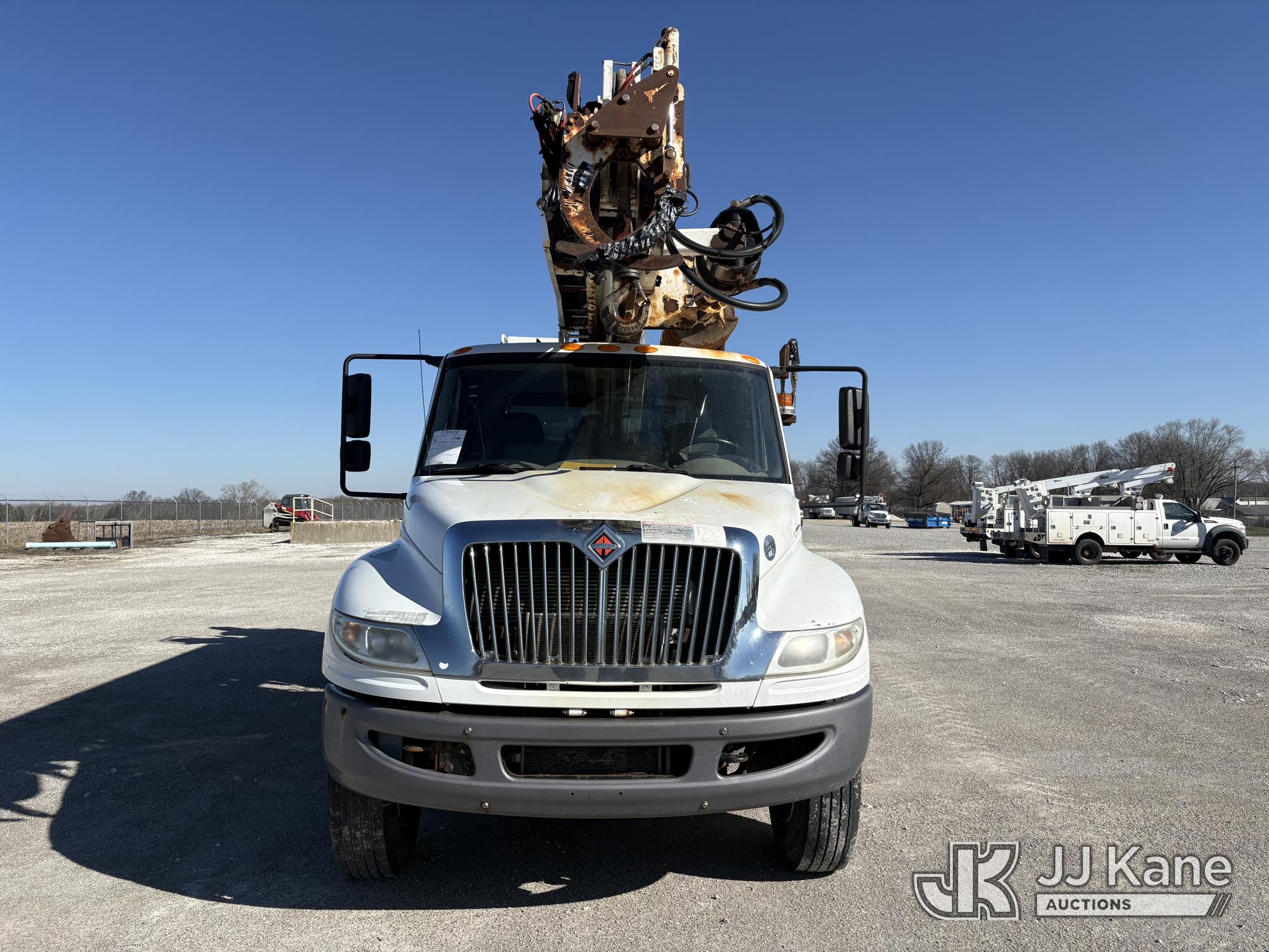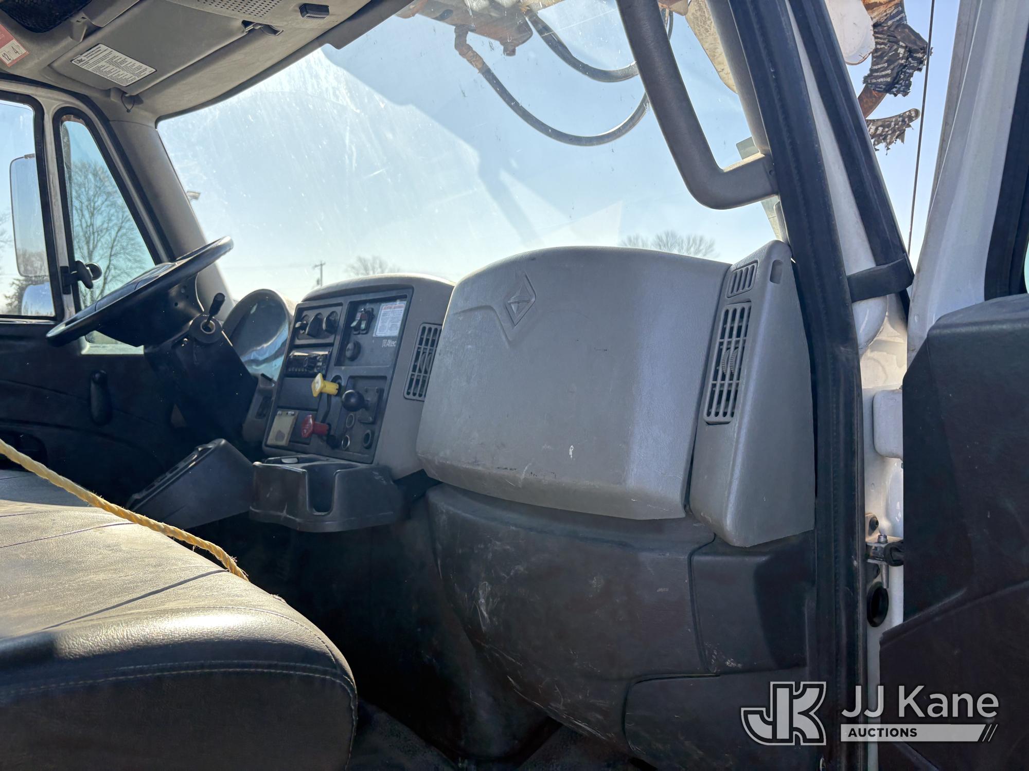 Altec DC47-TR, 23,790 Lb Digger Derrick s/n 1216FU2182, with 47 ft sheave height, 2 spd digger, heel winch, pole grabs, upper controls & riding console, rear mounted on 2018 International DuraStar 4300 Utility Truck, Cummins 4X2, DIESEL, Auto, A/C, (104,527 miles) (Runs, Moves, PTO engages, Outriggers Operate, Upper Unit Not Operating) (Unknown Upper Unit Operating Condition, Will Not Function At Controls, Key Broken Off In Ignition, Rust Damage, Paint Damage) (Reads 13,307 hours) This is a Titled Item*