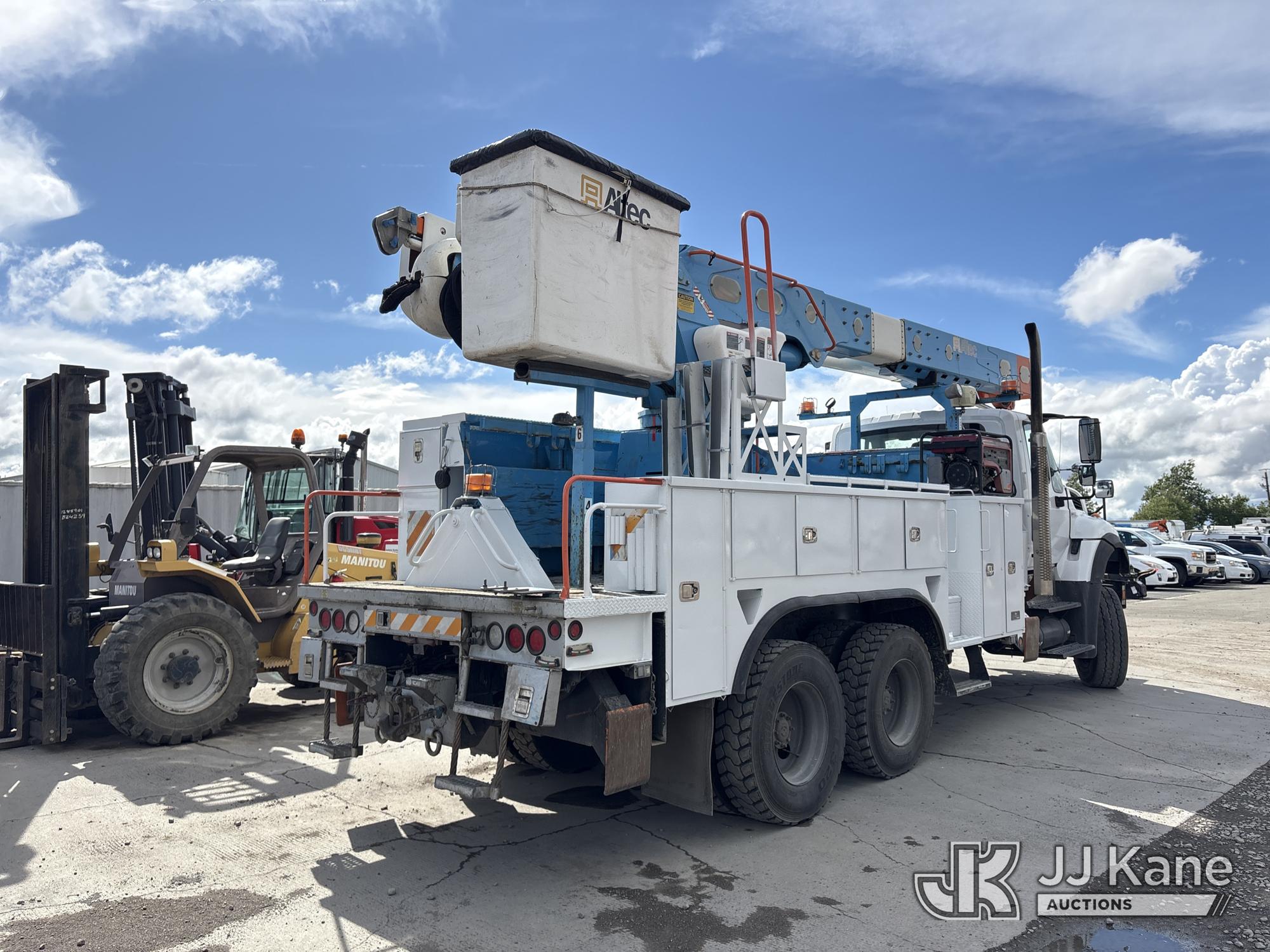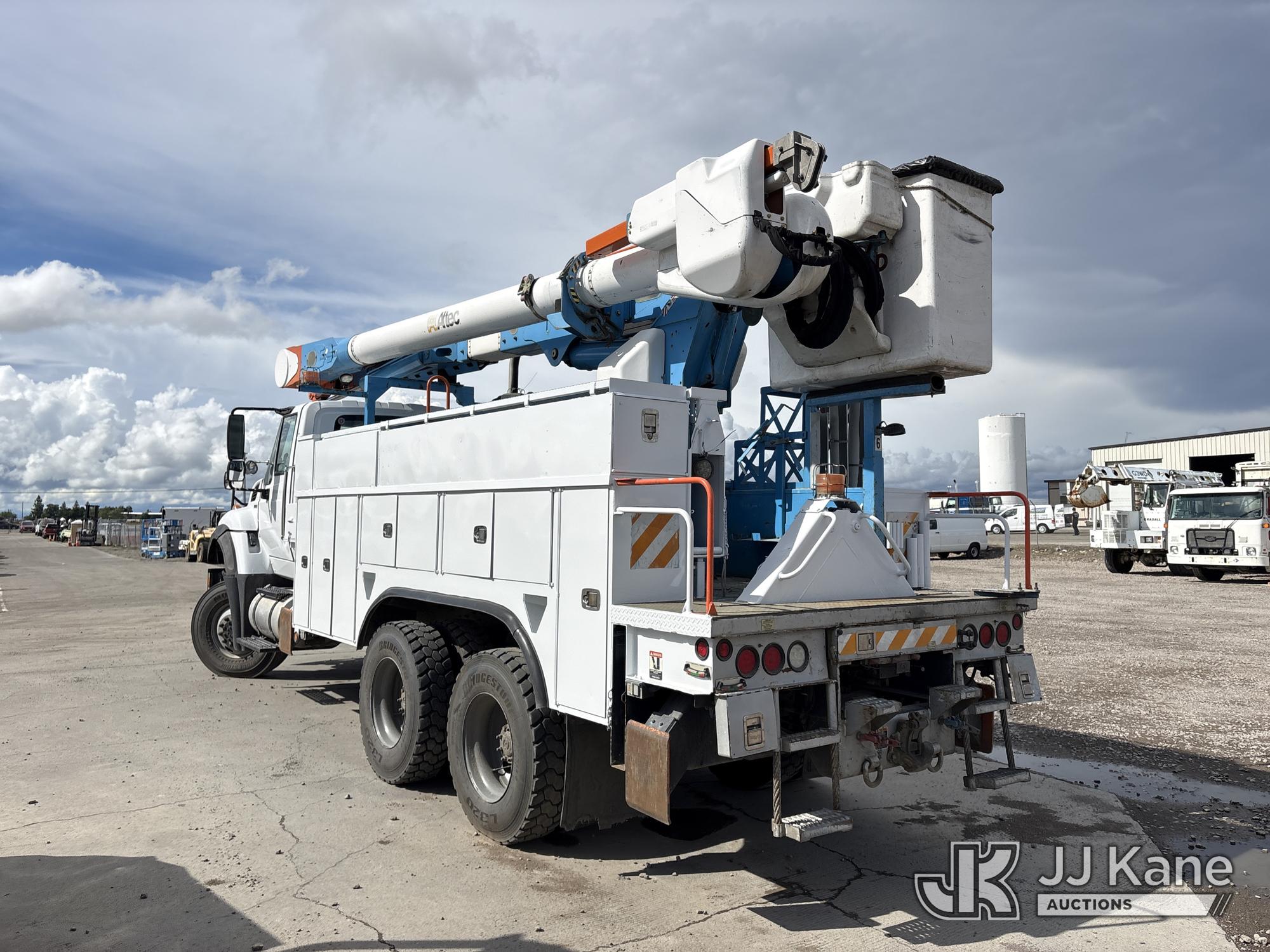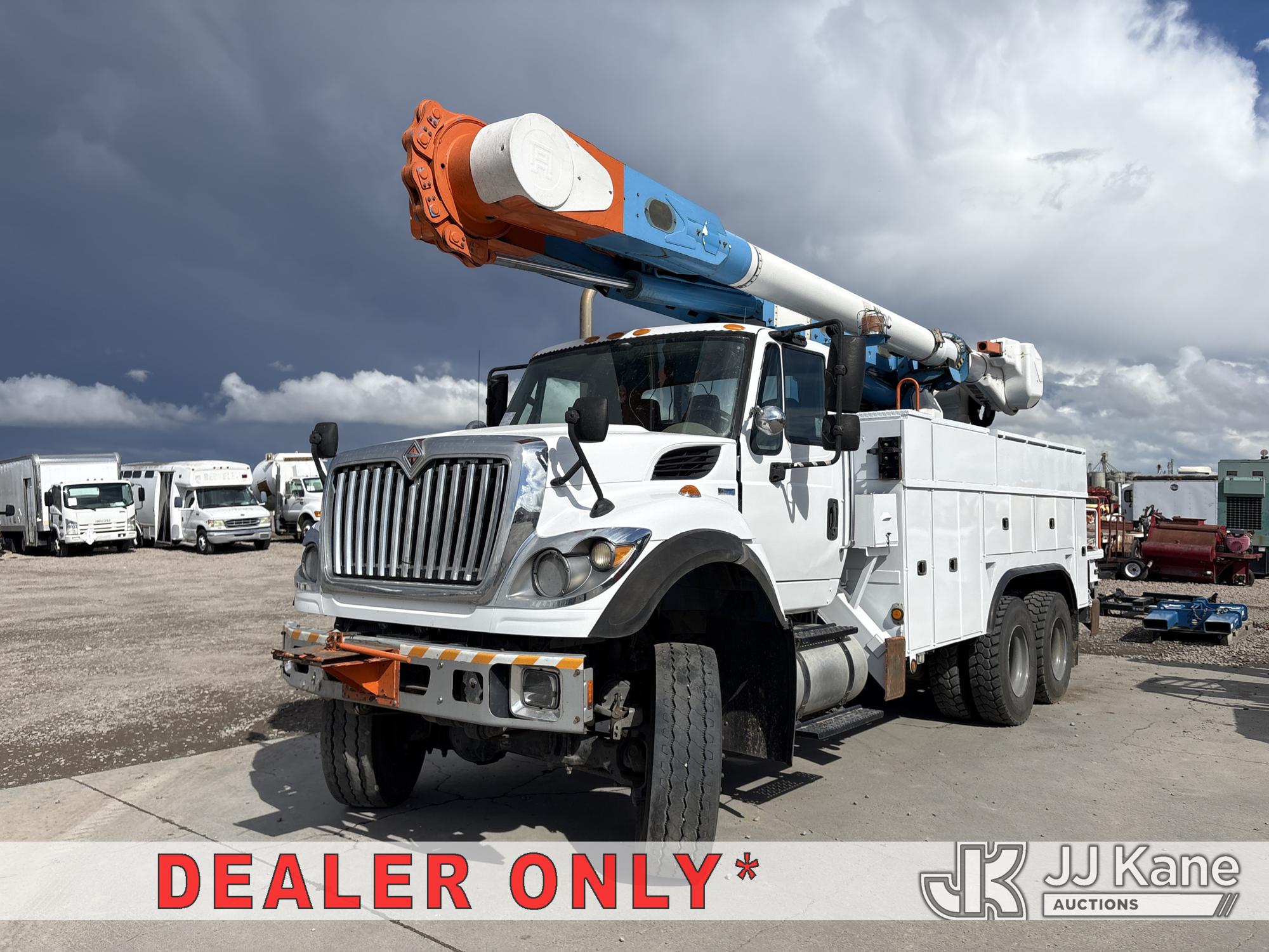 Altec AM55, 60 ft, Over-Center Material Handling Bucket Truck s/n 0412DM3897, with two-man bucket & 4 hyd outriggers, mounted behind cab on 2013 International 7500 T/A Utility Truck, 9.3L L6 6X6, DIESEL, Auto, A/C, (116,362 miles) (Not Running, Cranks Does Not Start, Operating Conditions Unknown) (Reads 7,827 hours) (Bidding Restricted to Licensed Vehicle Dealers Only), May be subject to ARB Regulations This is a Titled Item*