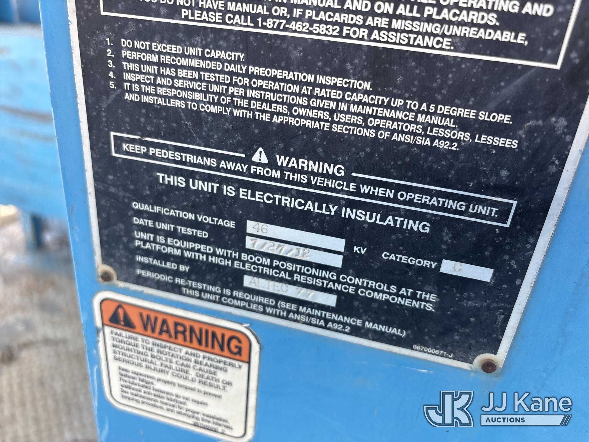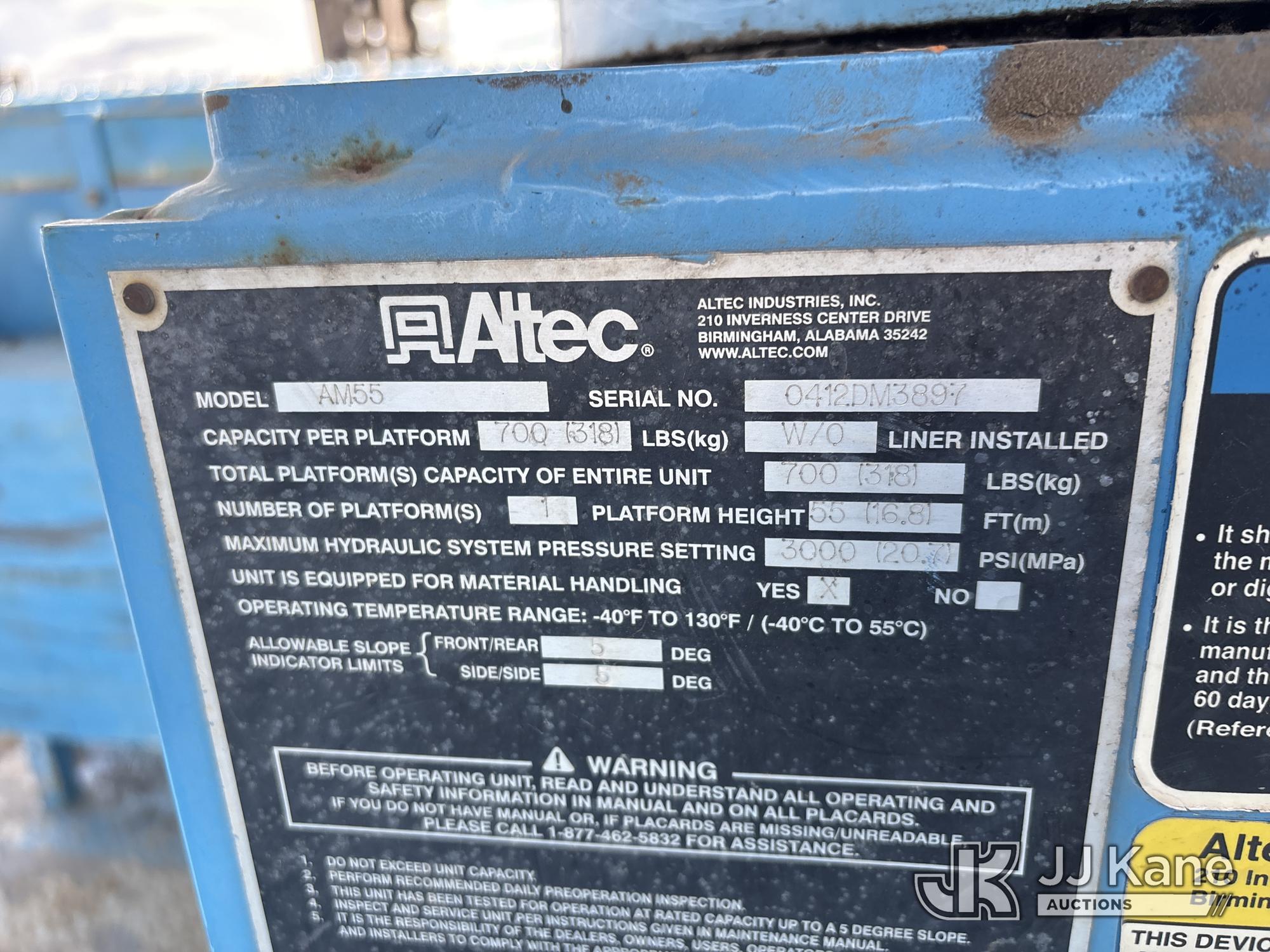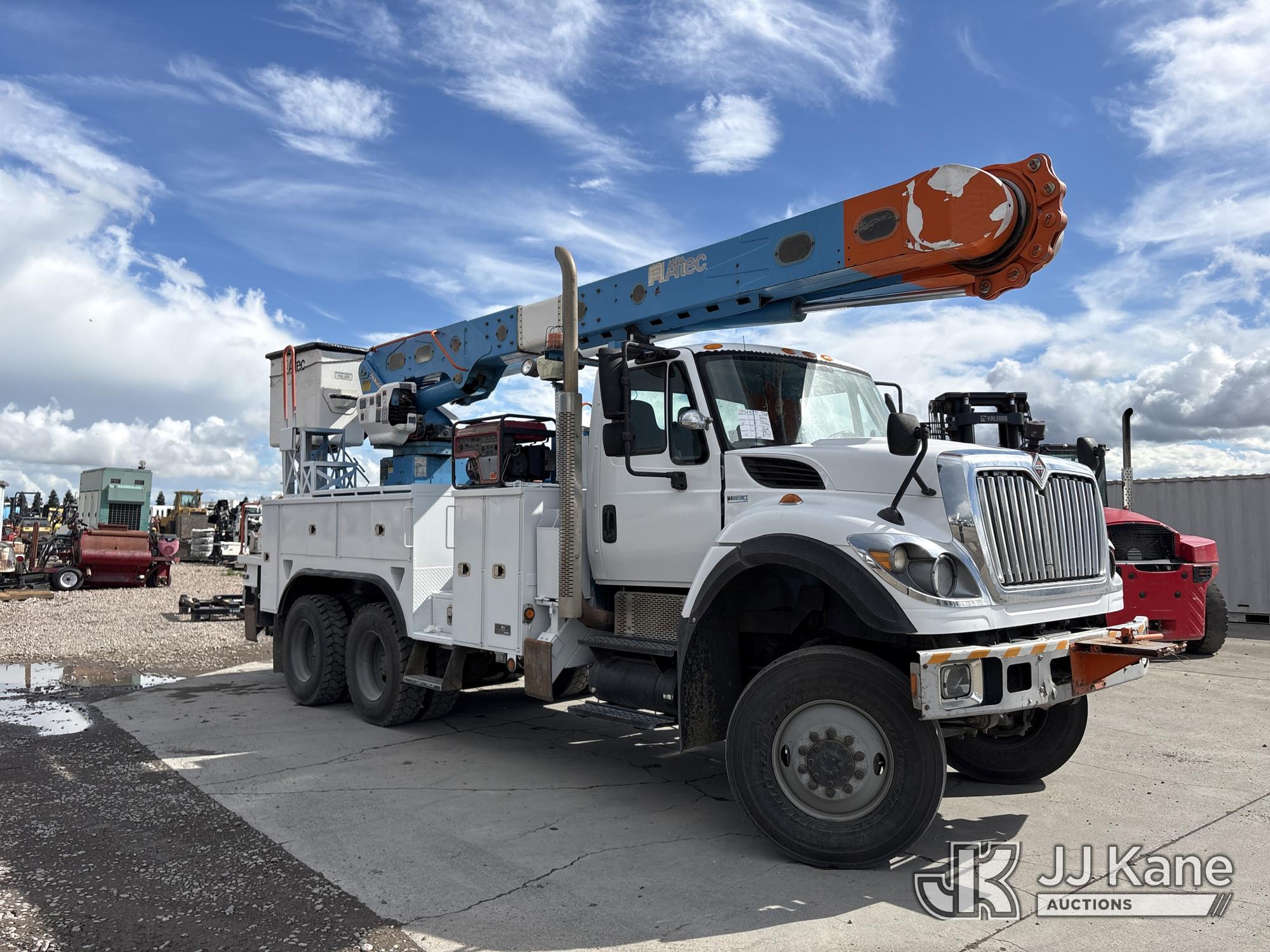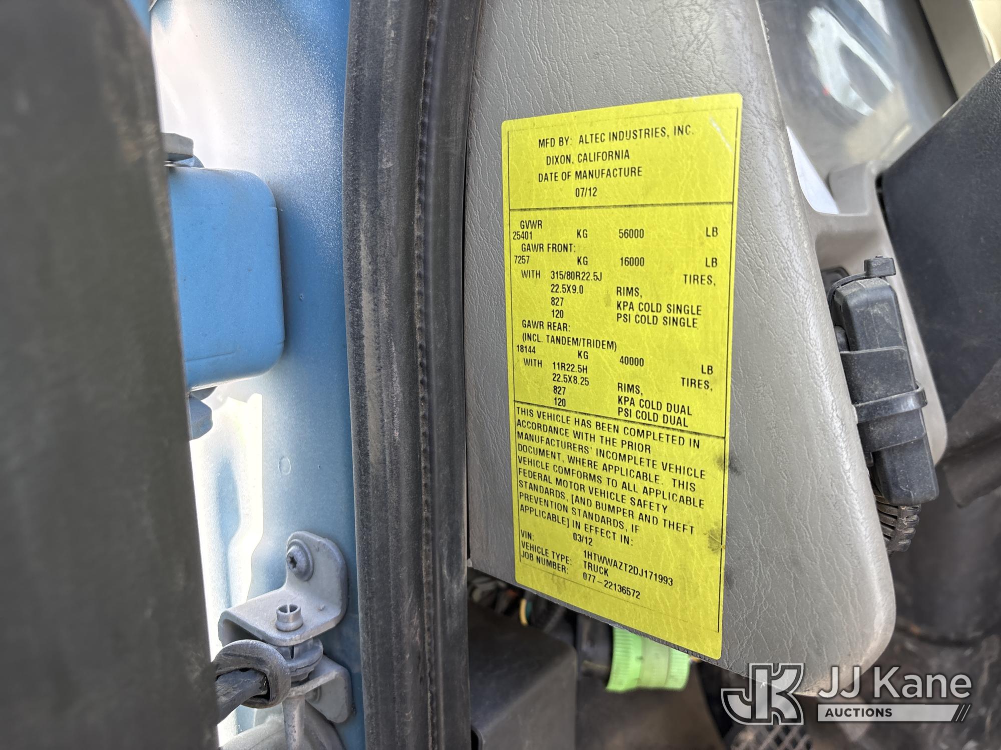 Altec AM55, 60 ft, Over-Center Material Handling Bucket Truck s/n 0412DM3897, with two-man bucket & 4 hyd outriggers, mounted behind cab on 2013 International 7500 T/A Utility Truck, 9.3L L6 6X6, DIESEL, Auto, A/C, (116,362 miles) (Not Running, Cranks Does Not Start, Operating Conditions Unknown) (Reads 7,827 hours) (Bidding Restricted to Licensed Vehicle Dealers Only), May be subject to ARB Regulations This is a Titled Item*