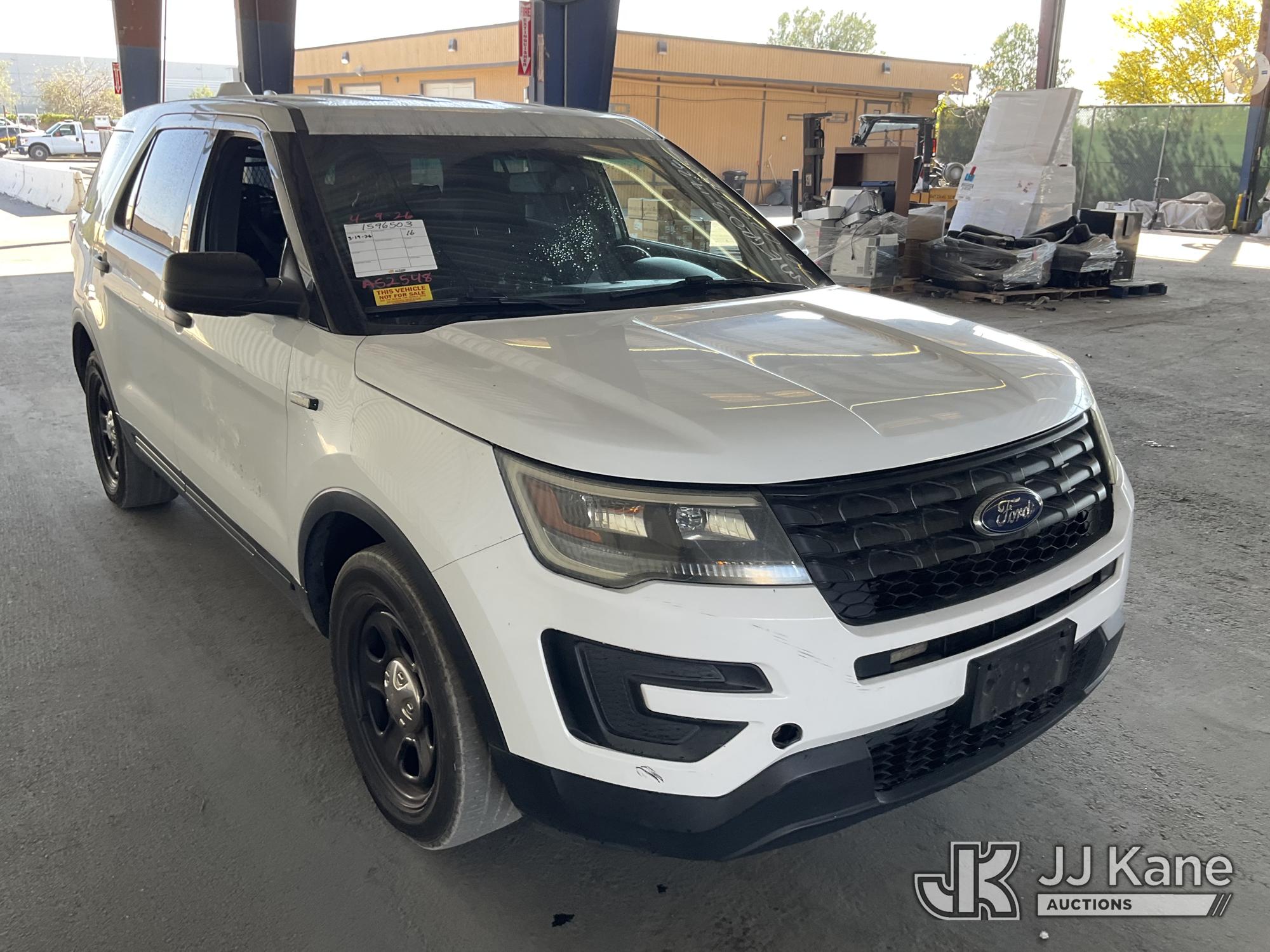 2016 Ford Explorer Police 4WD 4-Door Sport Utility Vehicle, s/n 1FM5K8AT3GGA52548, 3.5L V6 DOHC 24V GAS, 6-Speed Automatic, A/C, (229,525 miles) (Runs & Moves, Interior Stripped Of Parts, Open Recall, Remedy Not Yet Available, Vehicle is subject to an open NHTSA safety recall related to AN EXTERIOR A-PILLAR TRIM PART THAT DETACHES WHILE DRIVING CAN CREATE A ROAD HAZARD FOR OTHER ROAD USERS, INCREASING THE RISK OF A CRASH and THE DRIVER AND FRONT PASSENGER DOOR B-PILLAR TRIM APPLIQUES MAY BECOME PARTIALLY OR FULLY DETACHED. YOU MAY VISUALLY NOTICE THE B-PILLAR TRIM APPLIQUES SEPARATING FROM THE TOP OF THE FRONT DOORS WHEN ENTERING EXITING THE VEHICLE AND OR HEAR WIND NOISE AND RATTLING NOISE AS YOU DRIVE. THIS MAY RESULT IN THE B-PILLAR TRIM APPLIQUES DETACHING WHILE DRIVING. A B-PILLAR TRIM APPLIQUE THAT DETACHES WHILE DRIVING CAN CREATE A ROAD HAZARD FOR OTHER VEHICLES, INCREASING THE RISK OF A CRASH, but a remedy for this recall does not appear to be available. Dealer is not authorized to perform the recall repair. Periodically contact the manufacturer or check the VIN on the NHTSA website at www.safercar.gov to determine whether a remedy for the recall is available. As soon as a remedy is available, arrange to have the recall remedied with a dealer from that make of car to make such repair.) (Bidding Restricted to Licensed Vehicle Dealers Only), This is a Titled Item*