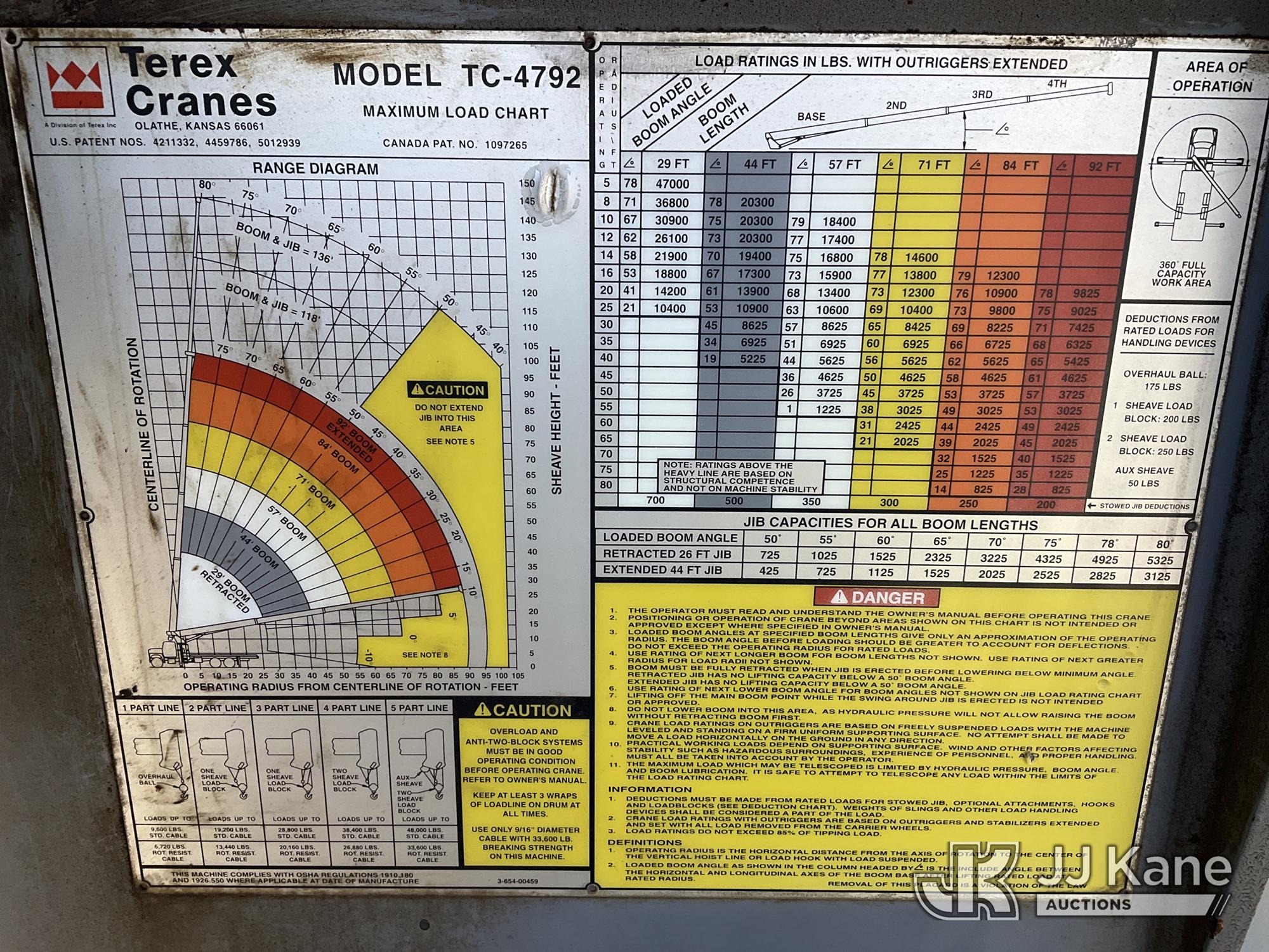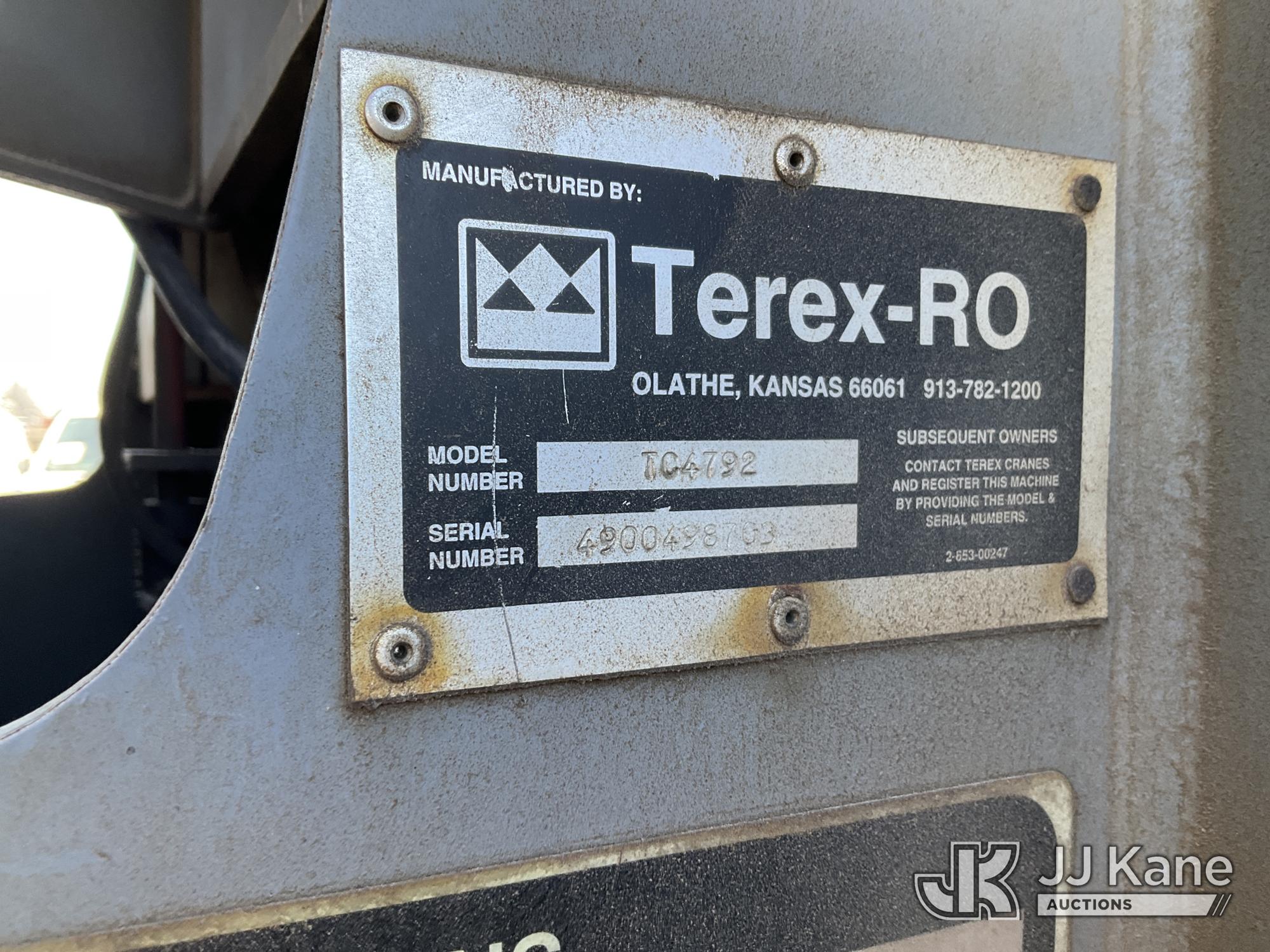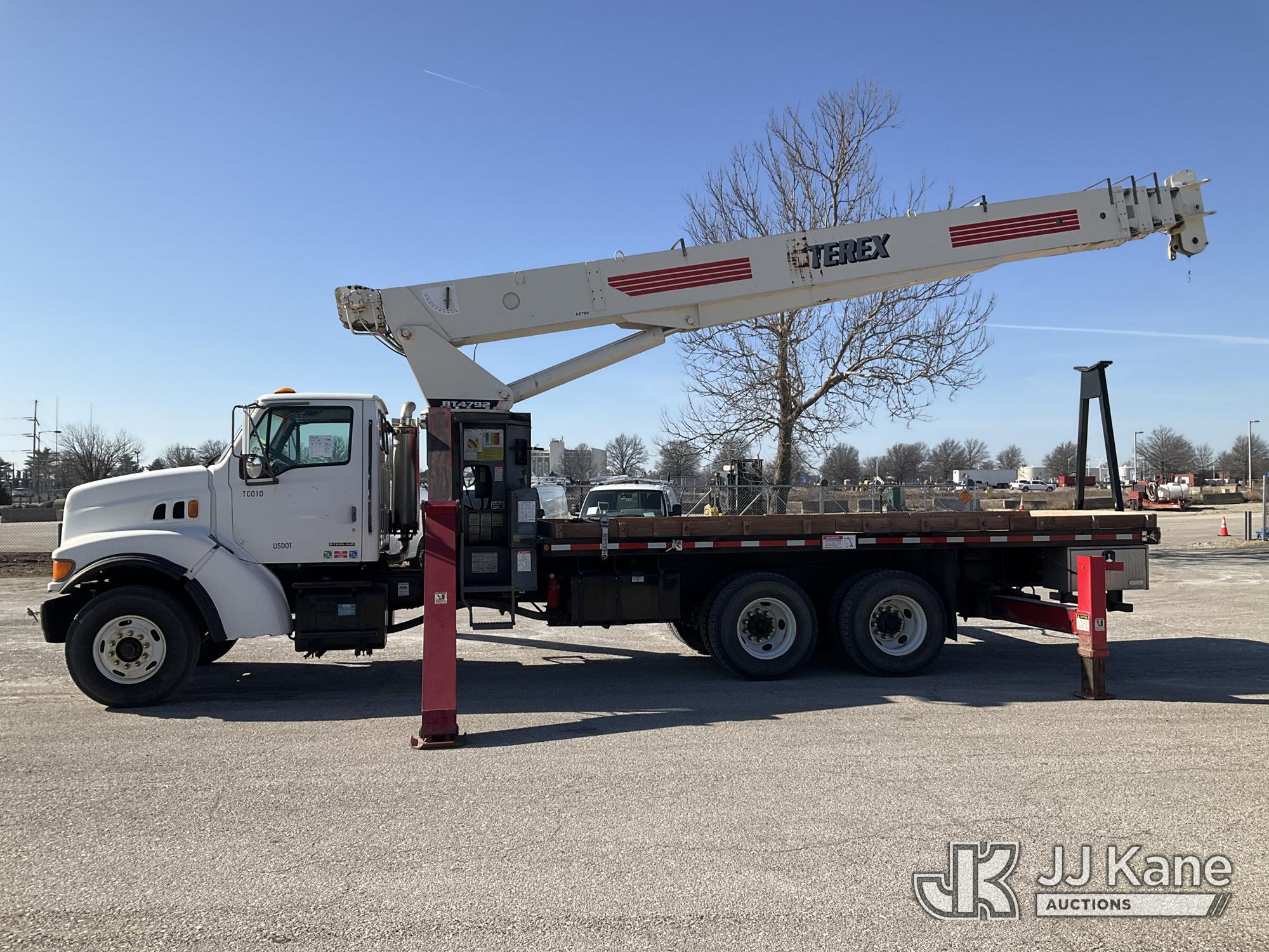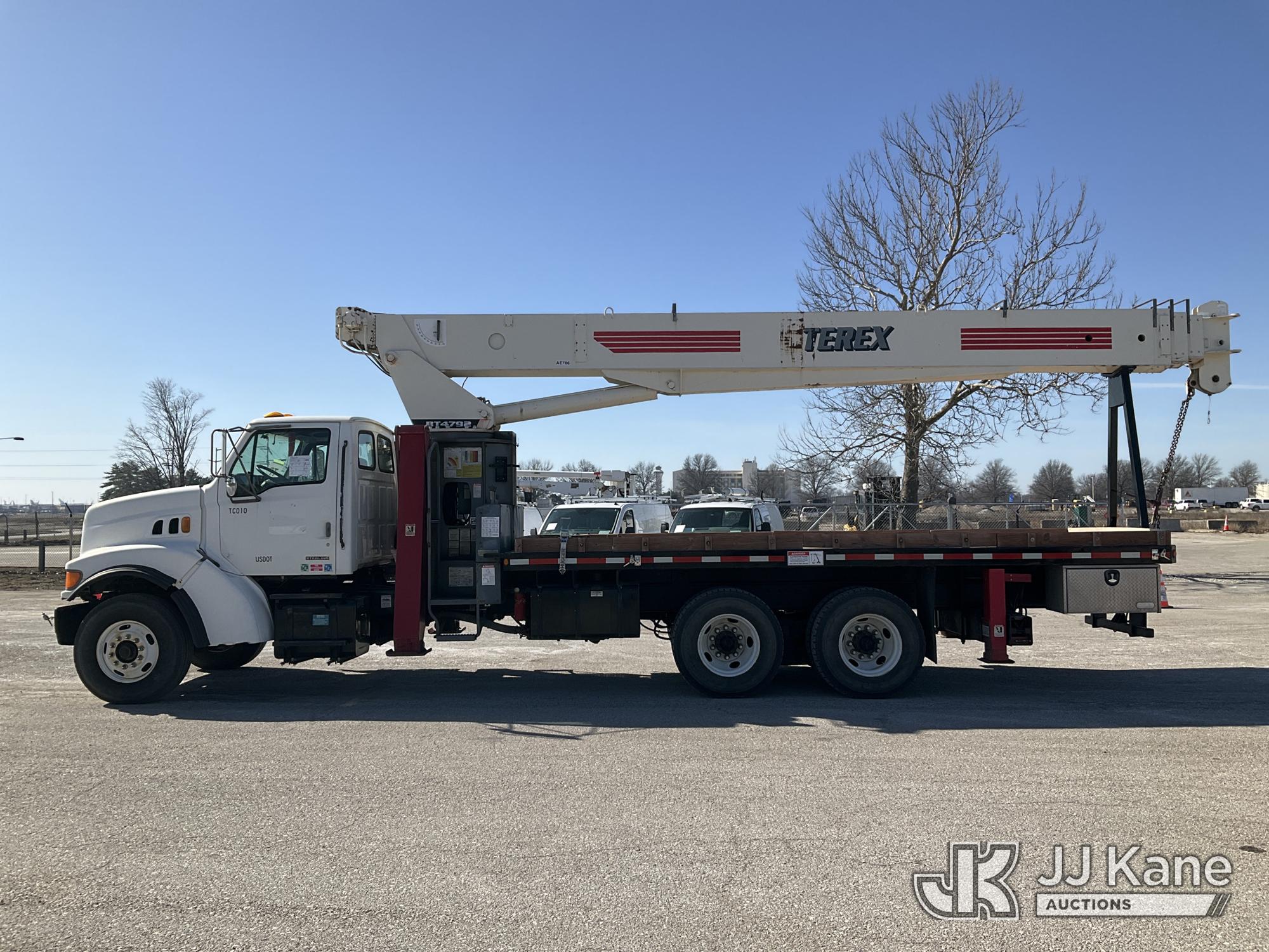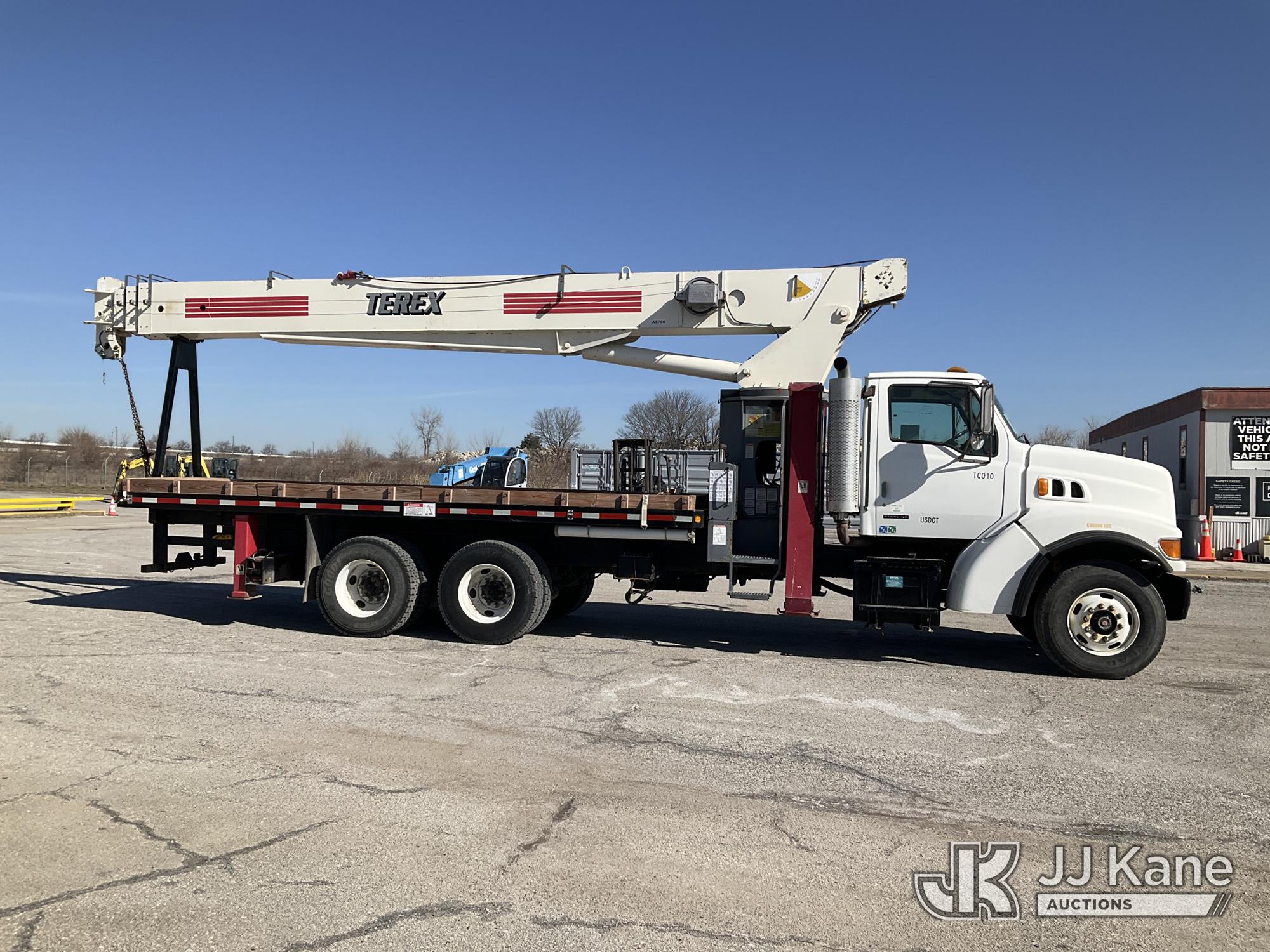 Terex TC4792, 23.5-Ton Hydraulic Truck Crane s/n 4900498703, with 146 ft. sheave height, 29 ft to 92 ft of 4 section hyd boom, 26 ft to 44 ft swing away extendable jib, heel winch, hook block, headache ball, anti-block system & dual controls, mounted behind cab on 1999 Sterling LT8511 T/A Flatbed Truck, 7.2L L6 DIESEL 6X4, 8-spd + Lo & Lo-Lo, (Exempt from Odometer Disclosure - Reads 129,765 miles) (Runs, Moves & Upper Operates) (Reads 9,440 hours) This is a Titled Item*