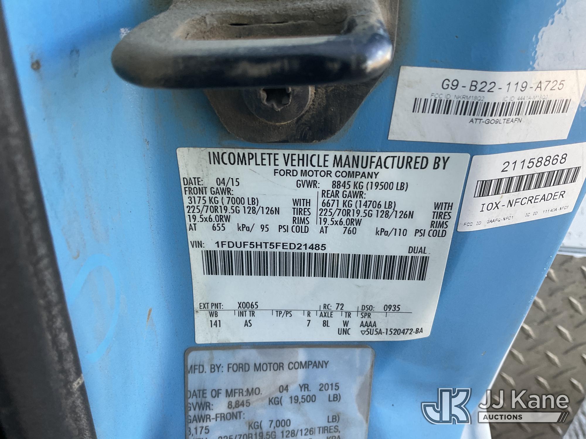 2015 Ford F-550 Regular Cab DRW 4WD Mechanics Service Truck, s/n 1FDUF5HT5FED21485, 6.7L V8 OHV 16V DIESEL, Auto, A/C, with Auto Crane, Tow Package, (242,716 miles) (Runs & Moves, Crane Operates, Has Crane Control) May be subject to ARB Regulations This is a Titled Item*