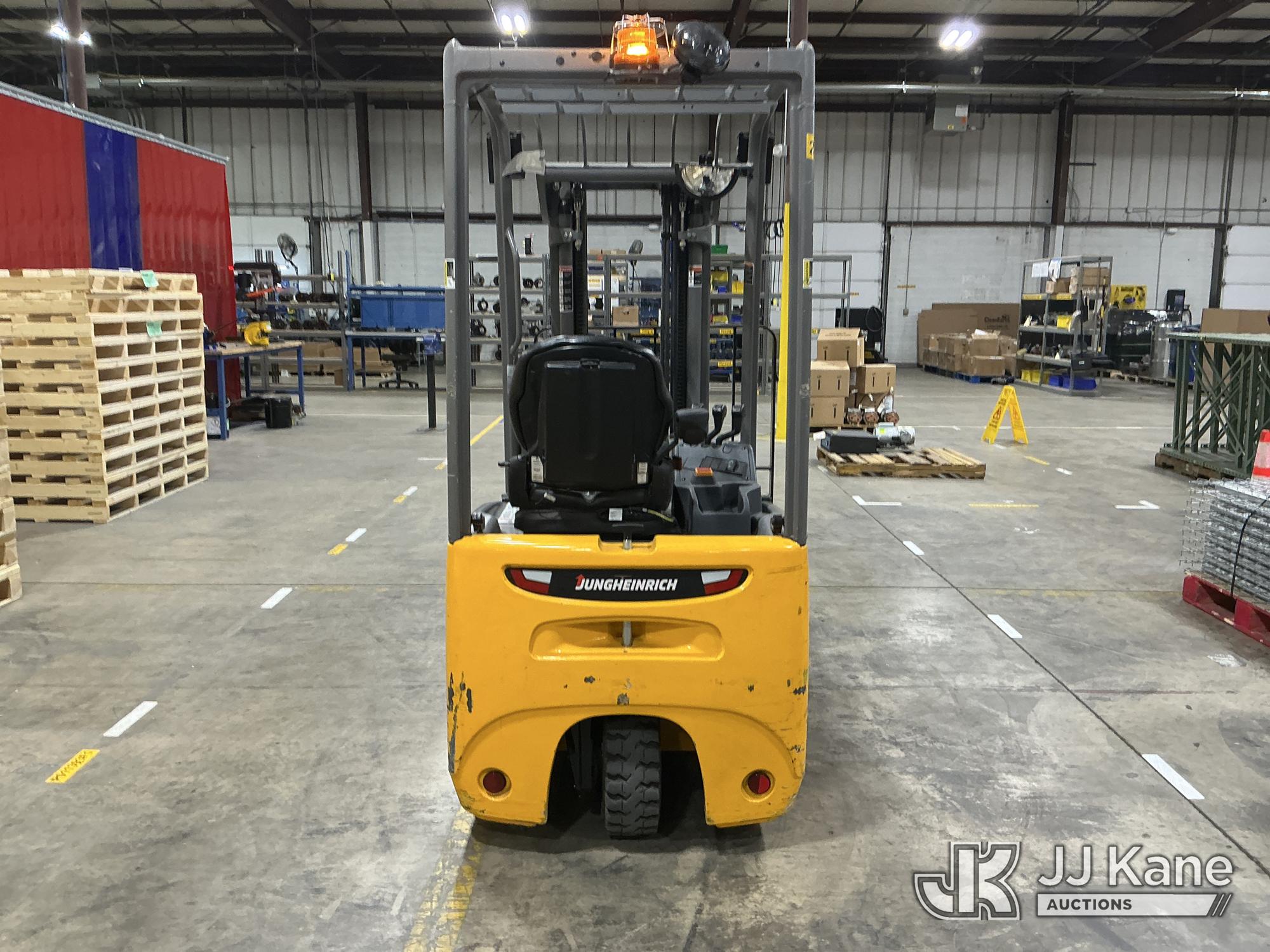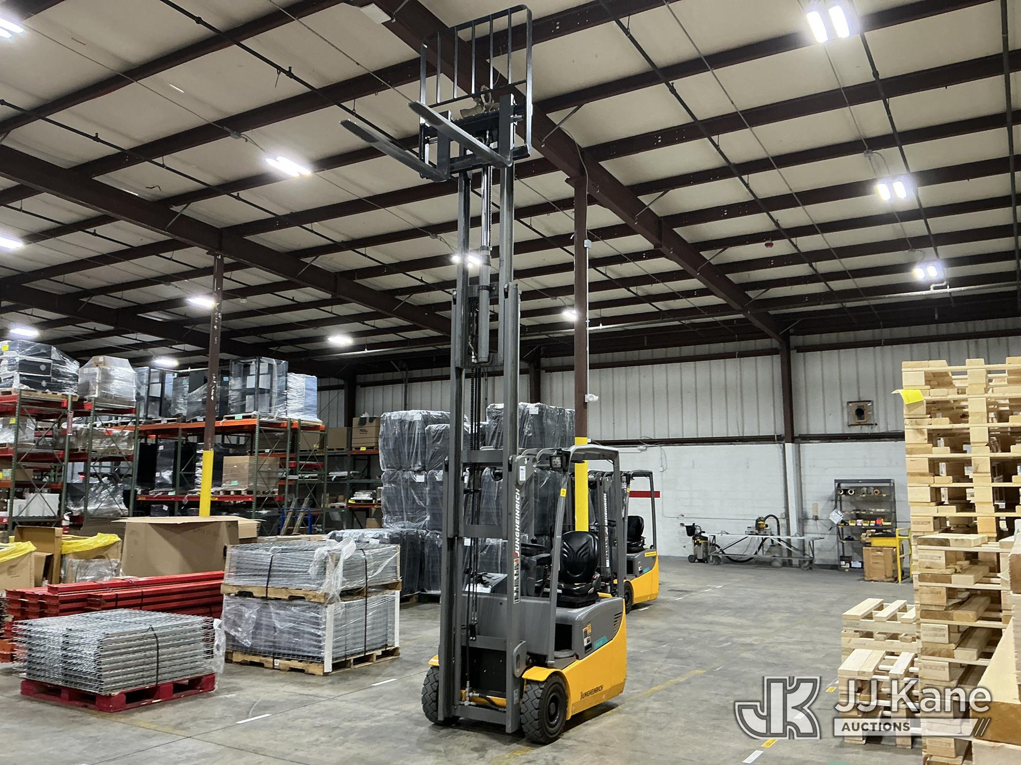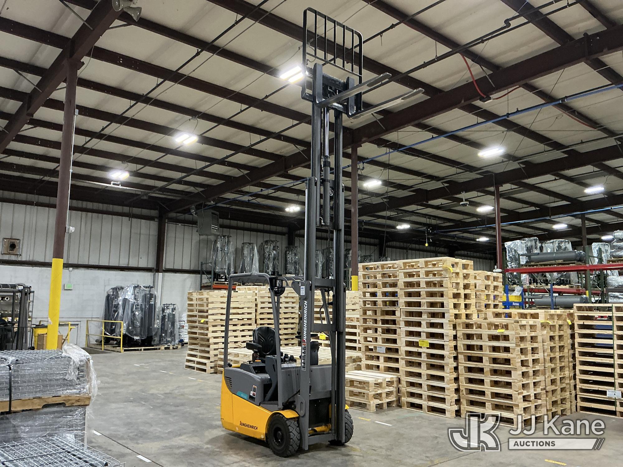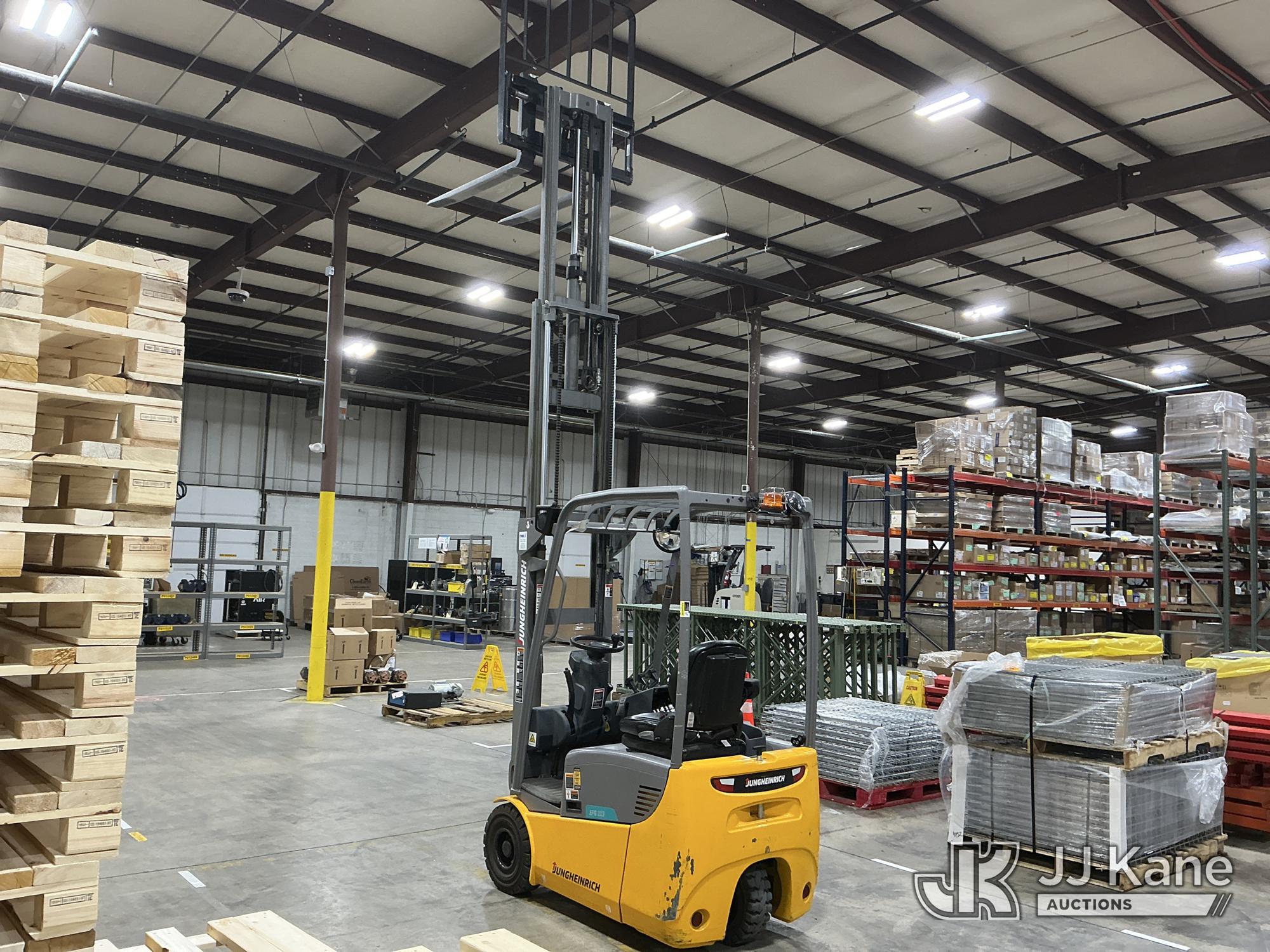 2020 Jungheinrich EFG113 Solid Tired Forklift, s/n FN621640, electric, with 2640lb Lift Capacity, Two Tier Mast, ROPS, charger included, (Runs, Moves & Operates) (Hyd Leak From Underneath) (Reads 1,185 hours)*
