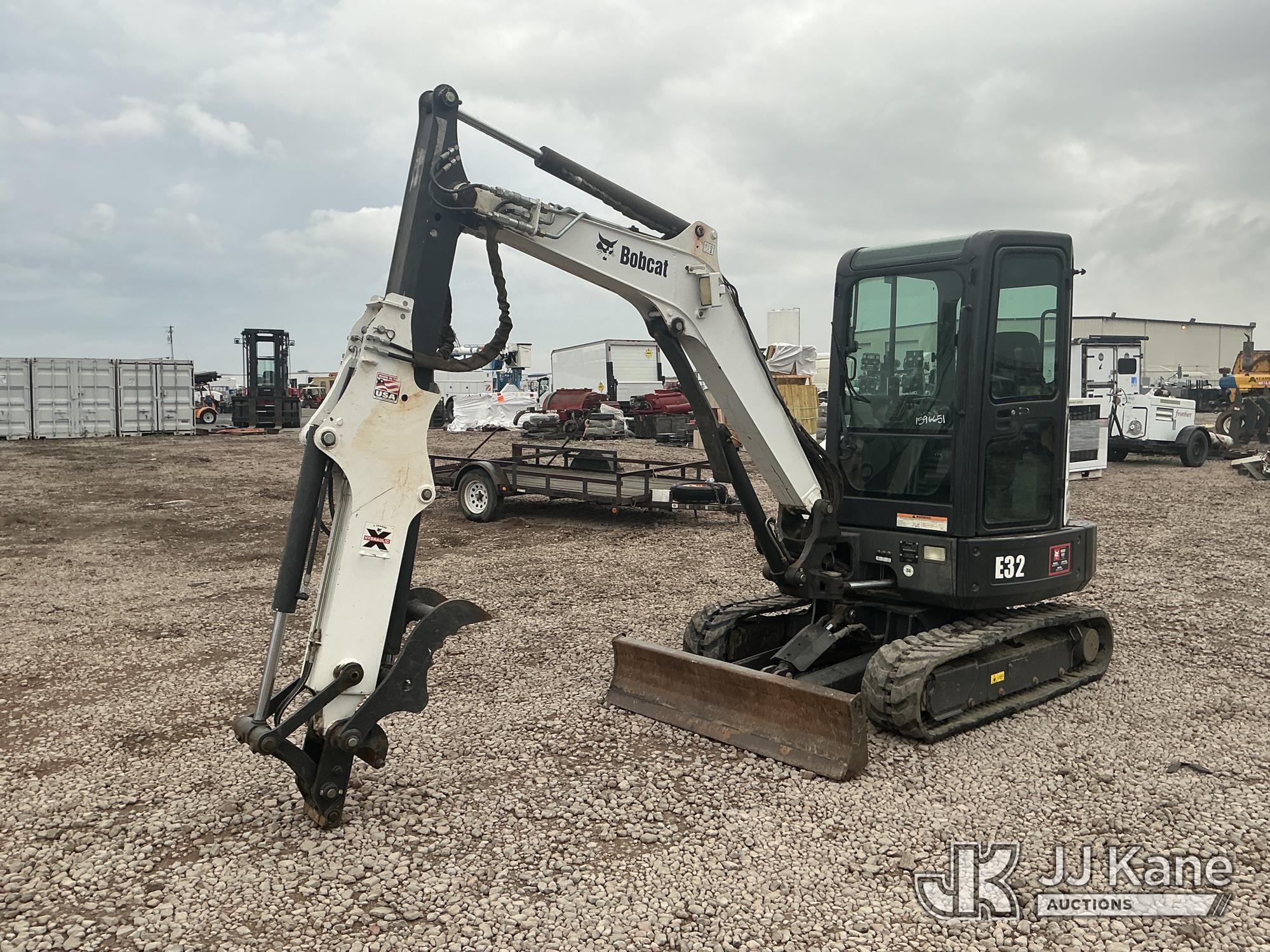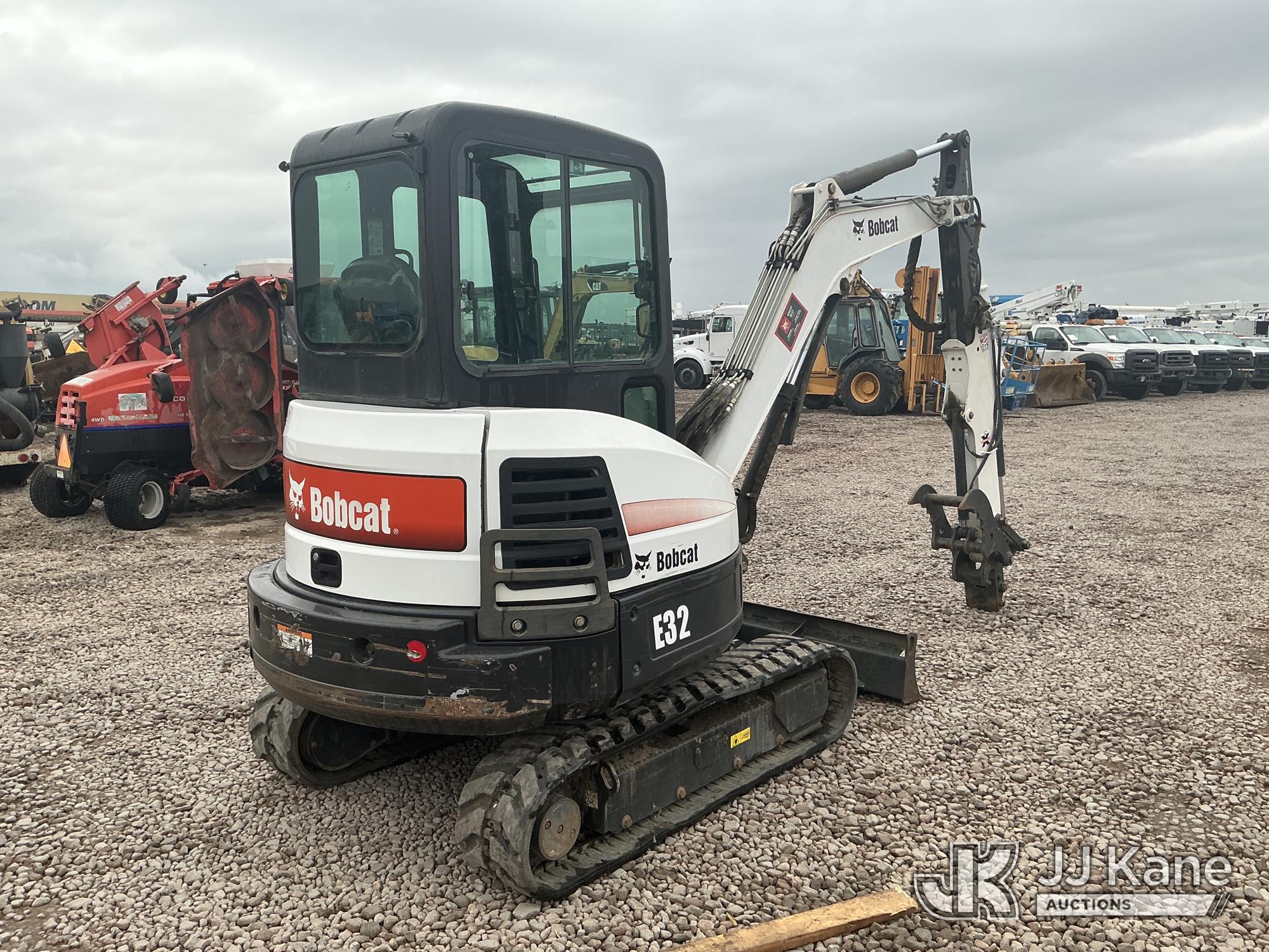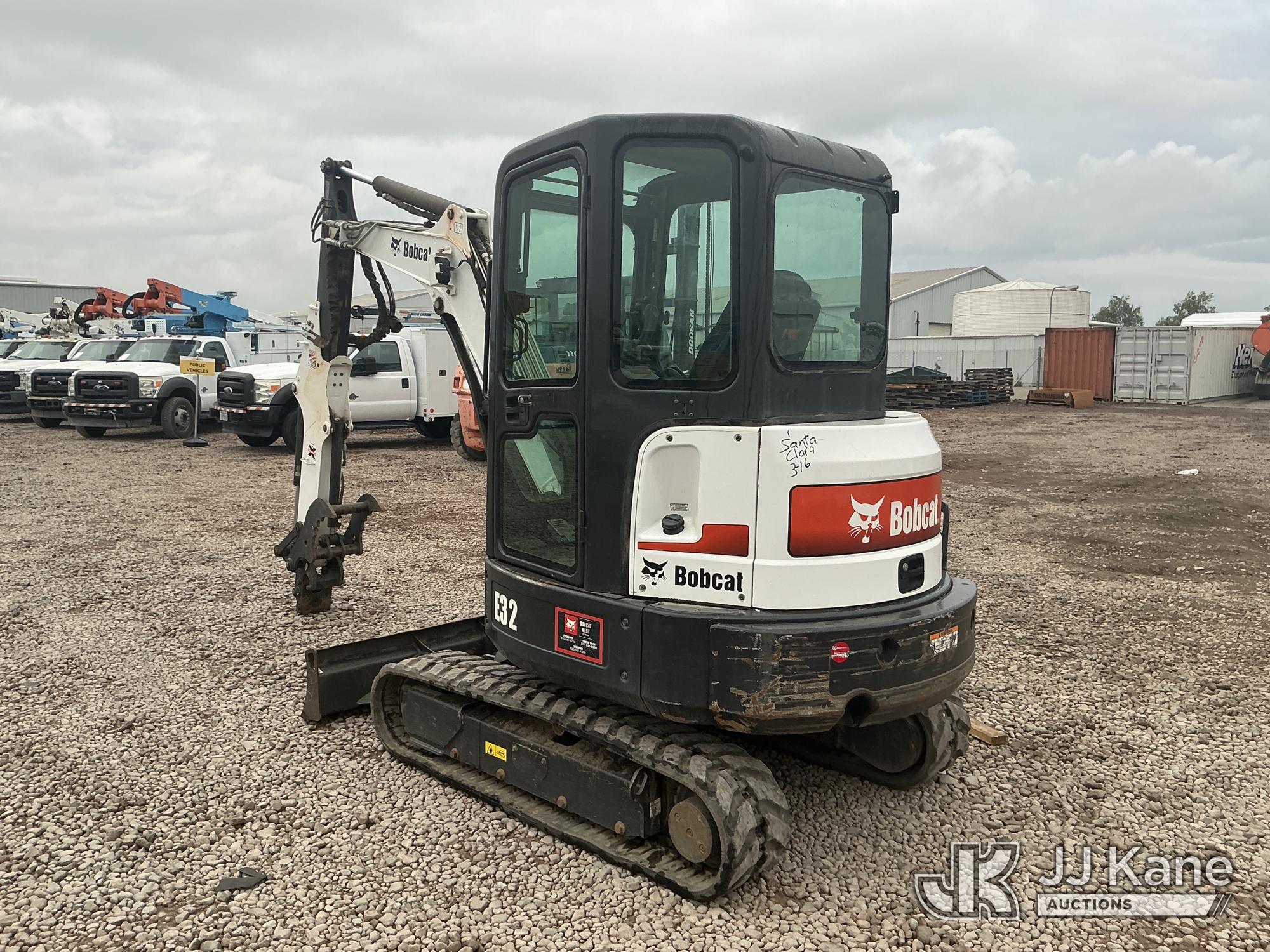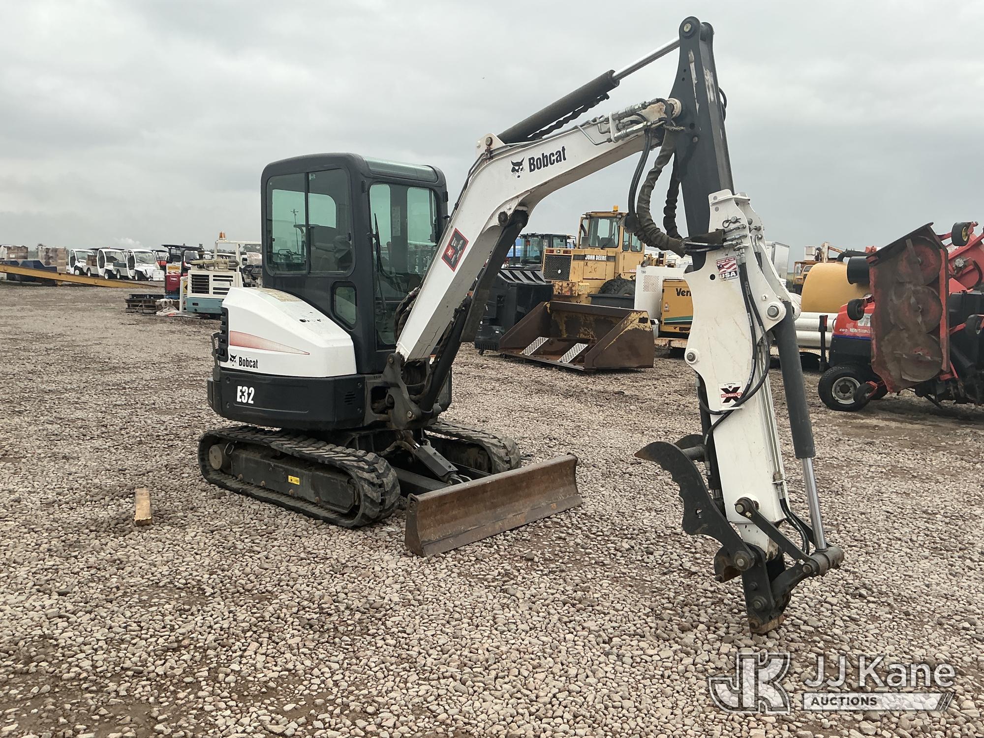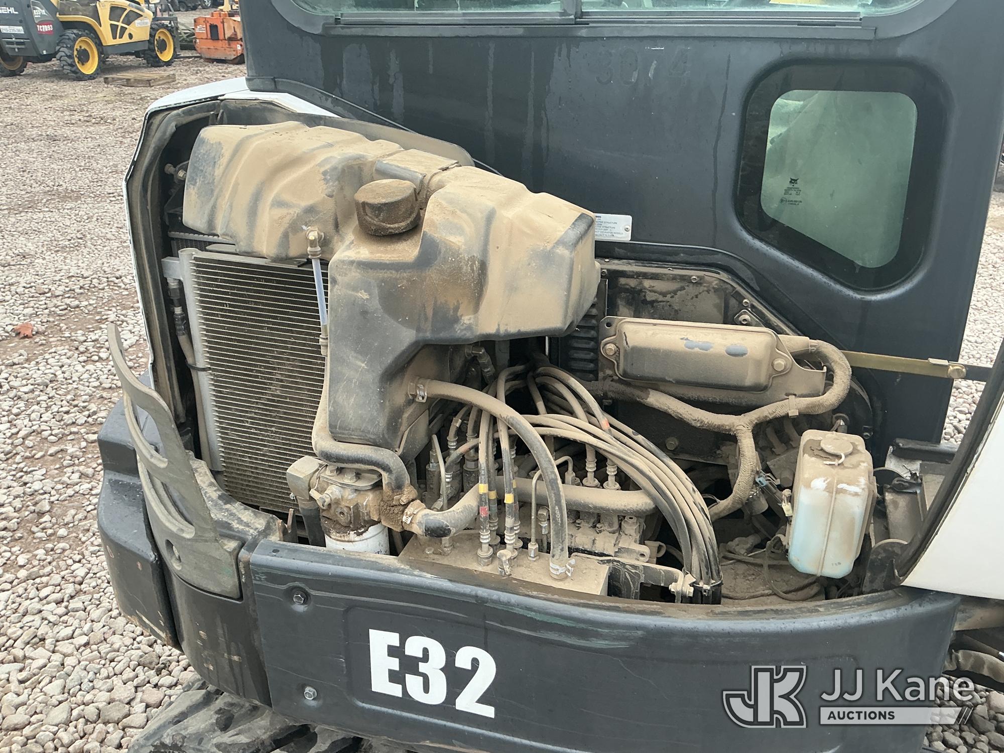 2012 Bobcat E32 Mini Hydraulic Excavator, s/n A94H15249, 3-cyl diesel, Hydrostatic, with rubber tracks, hyd thumb attachment & EROPS, (Runs & Operates ) (Reads 2,080 hours)*