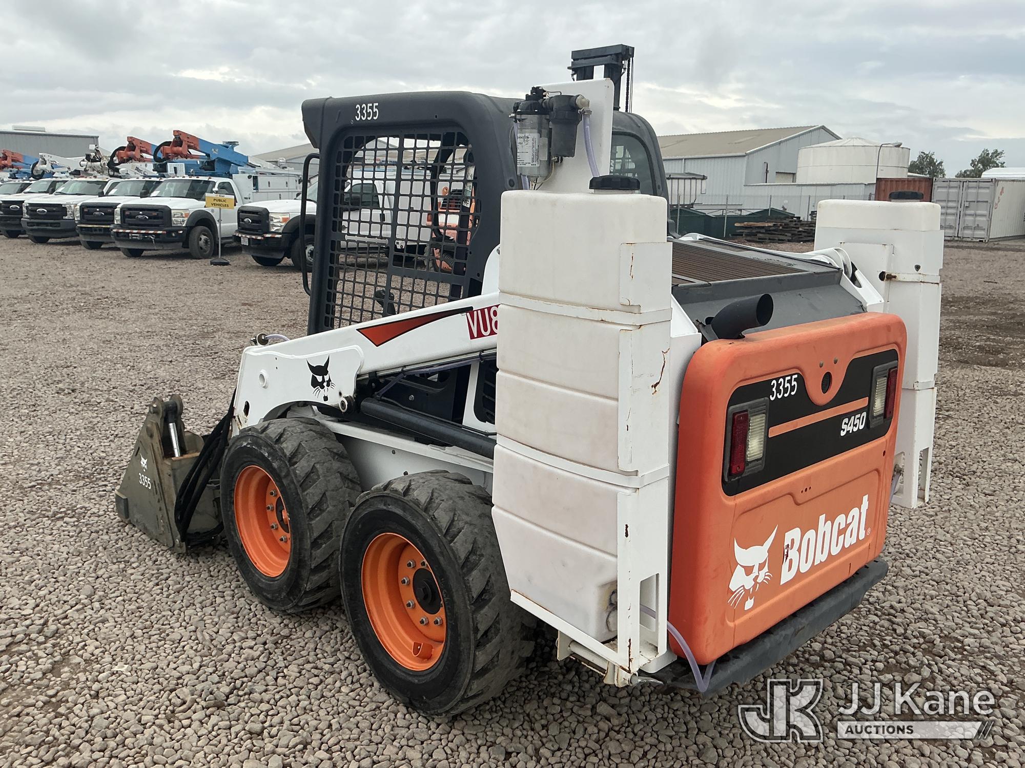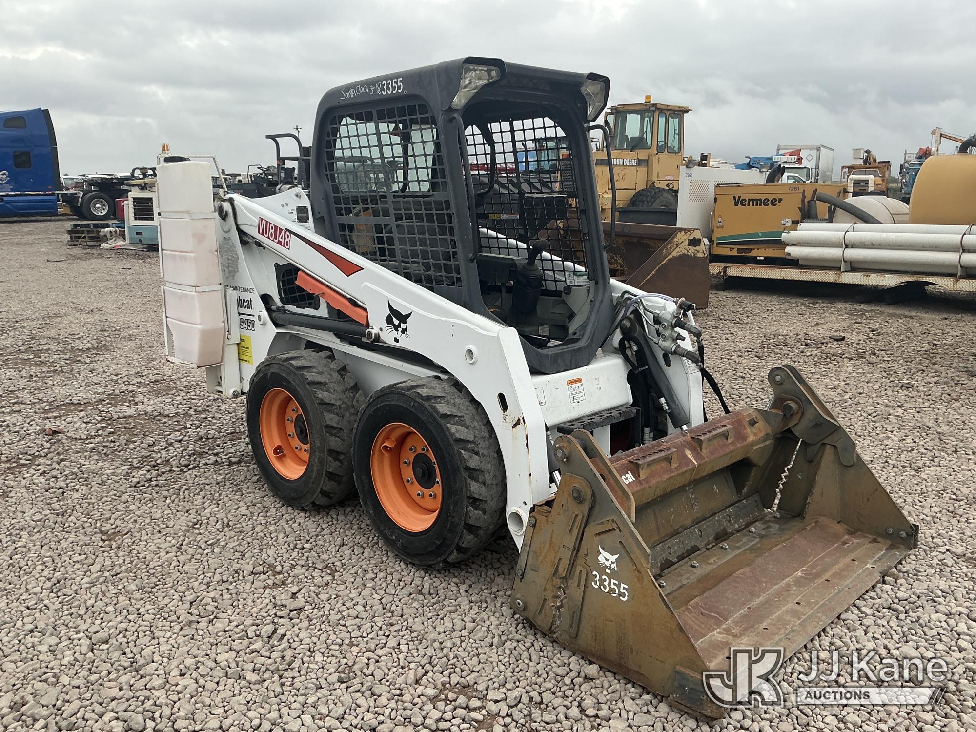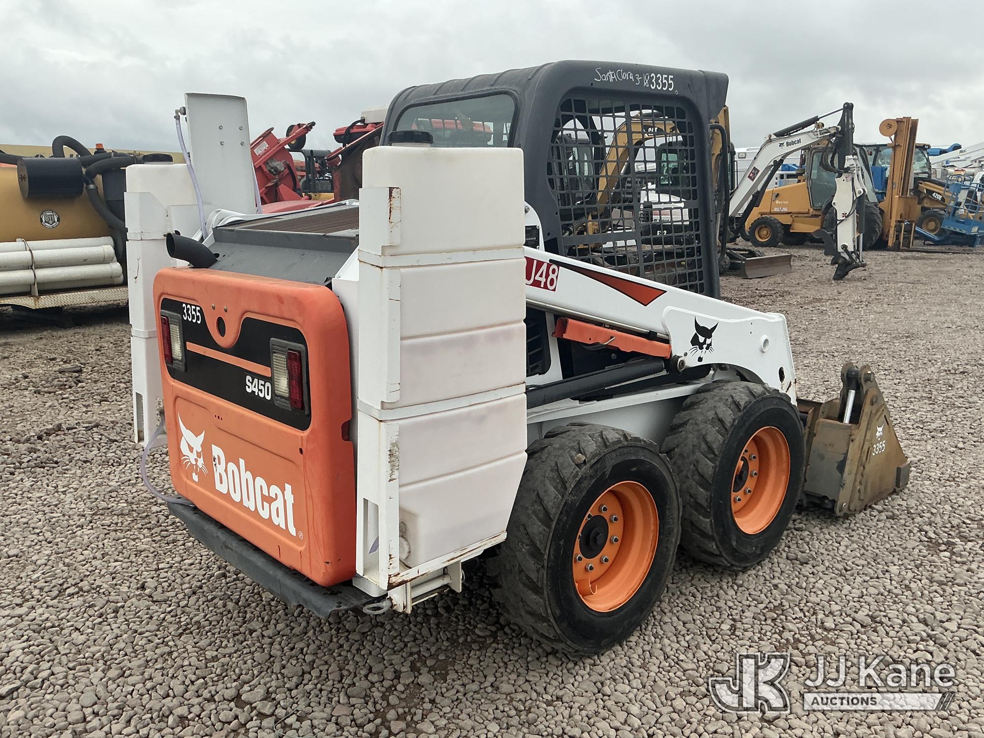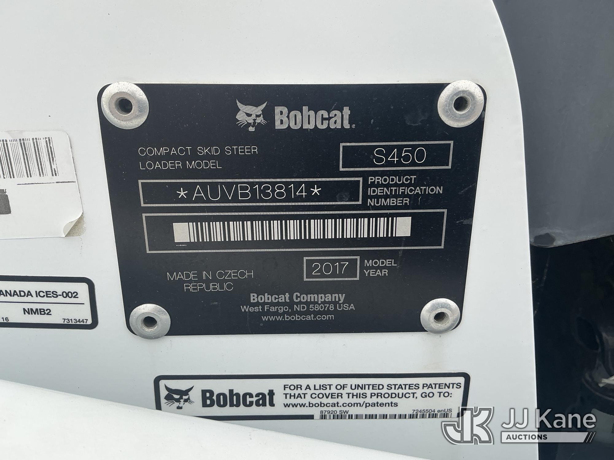 2017 Bobcat S450 Solid Tired Skid Steer Loader, s/n AUVB13814, 3-cyl diesel, Hydrostatic, with 4 in 1 bucket & ROPS, (Runs & Operates ) (Reads 182 hours)*