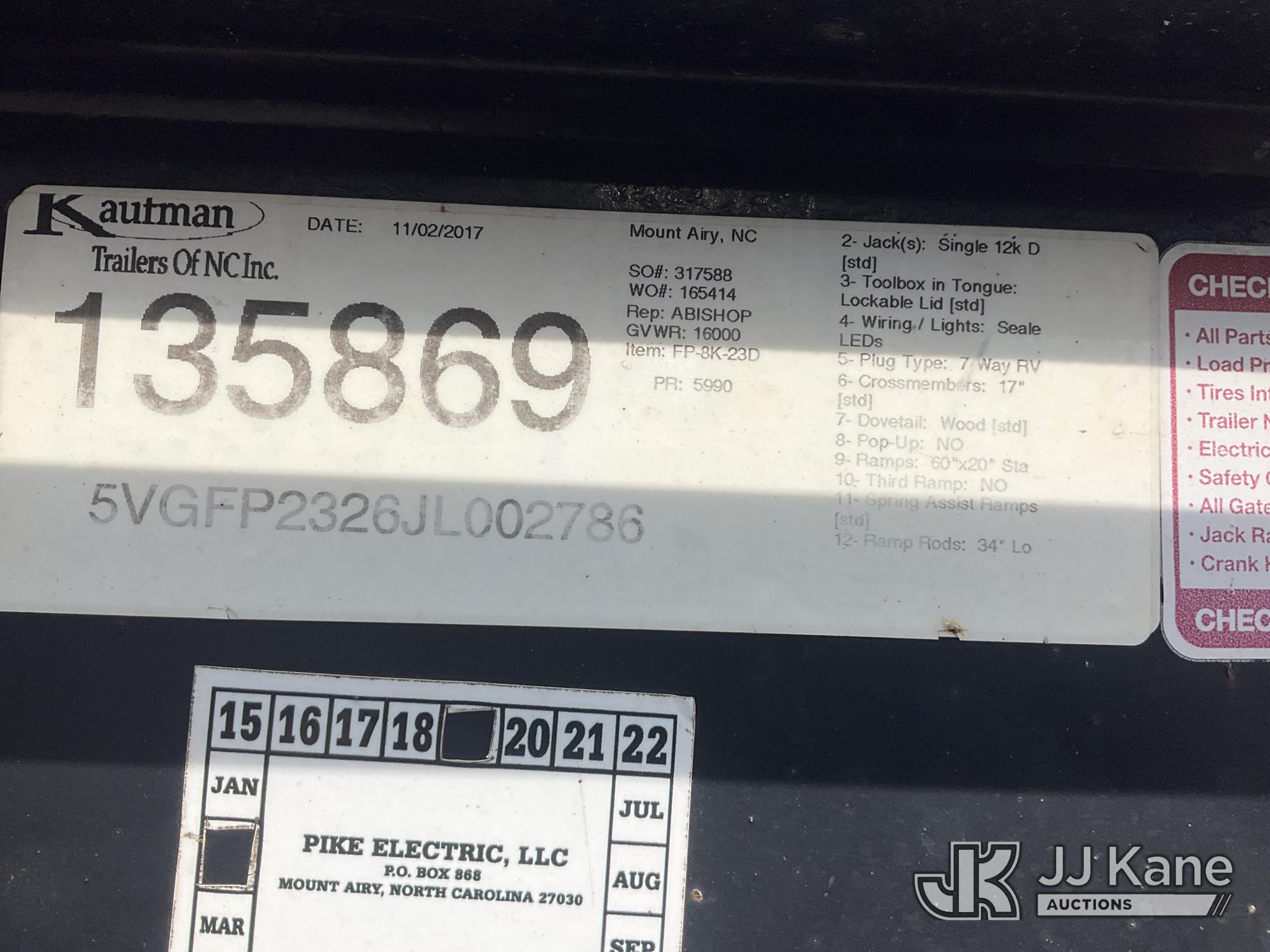 2018 Kaufman T/A Tagalong Equipment Trailer, with 18 ft level deck above wheels, beaver tail & ramps, This is a Titled Item*