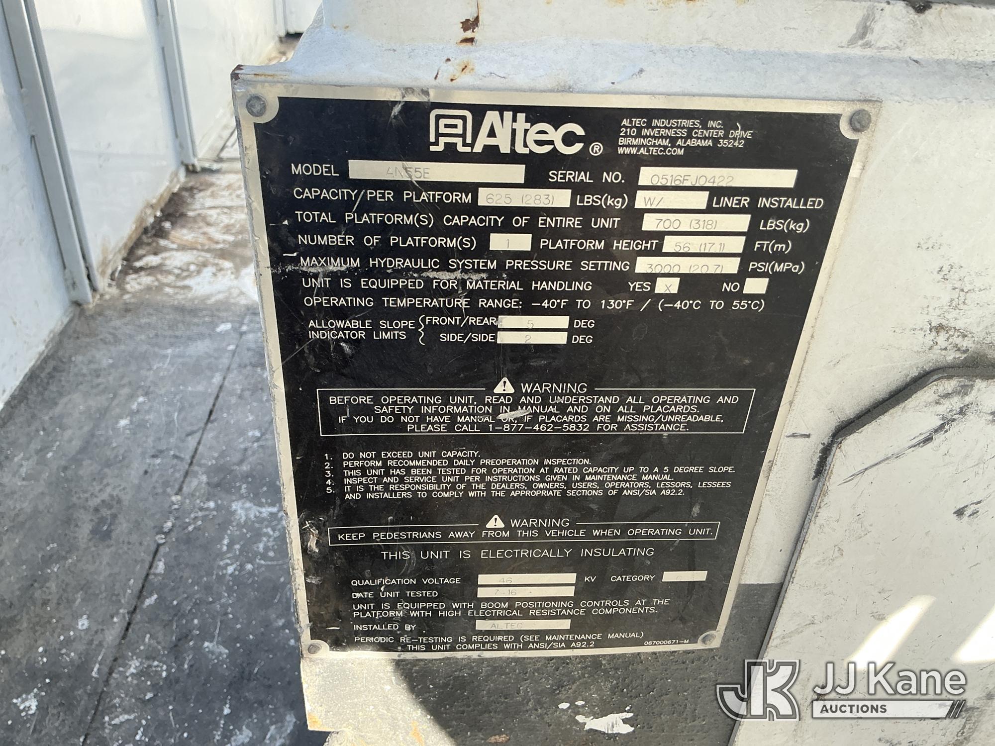 Altec AN55E, 61 ft, Material Handling Bucket Truck s/n 0516FJ0422, with two-man bucket & 4 hyd outriggers, rear mounted on 2017 Freightliner M2 106 4x4 Utility Truck, 6.7L L6 Diesel, Auto, A/C, (134,686 miles) (Runs, Moves, Upper Operates) (Missing Winch Cable) (Reads 8,513 hours) This is a Titled Item*