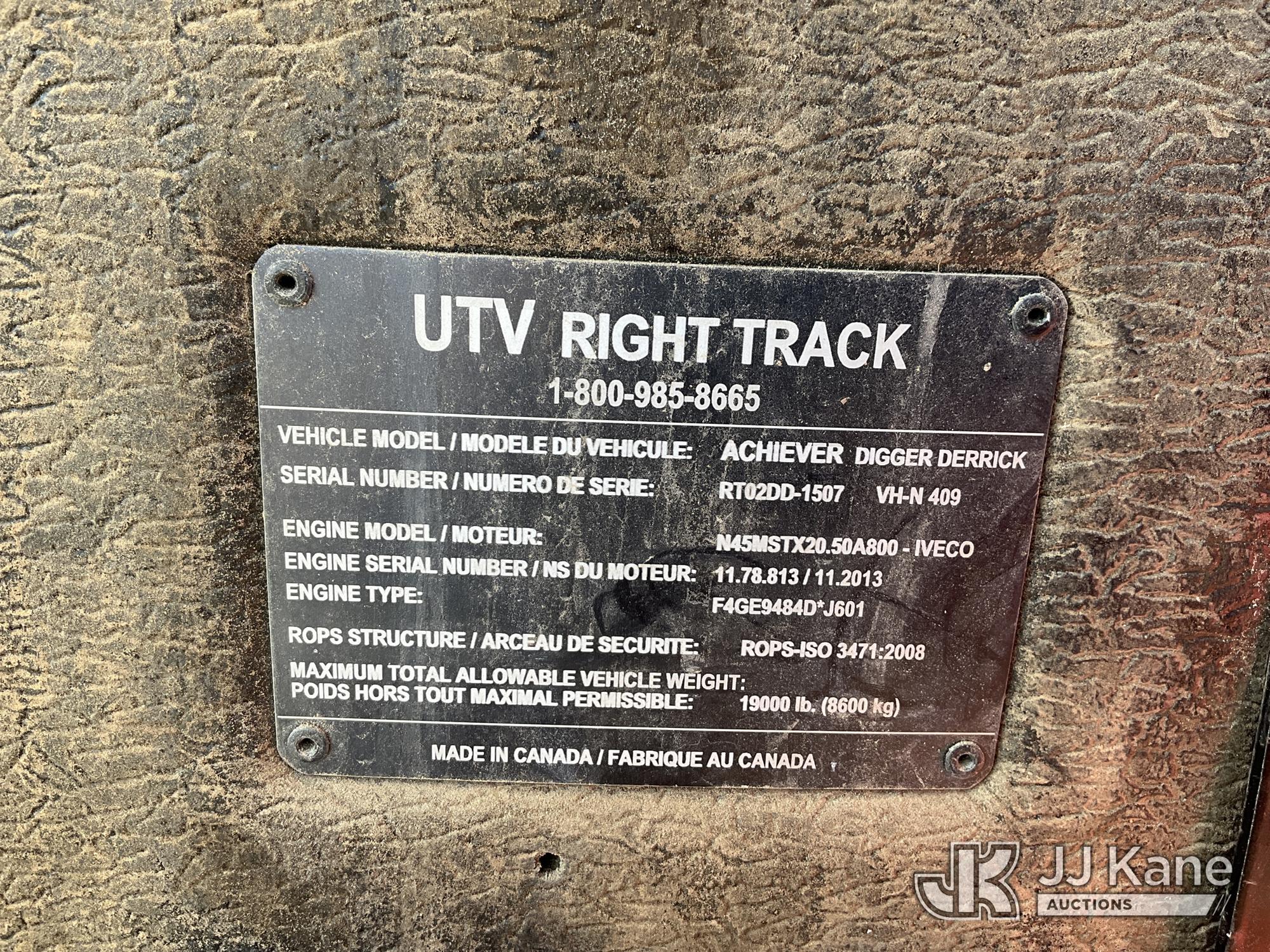 Hercules 5042, 5,000 Lb Digger Derrick s/n H50421507C409, with 40 ft 6 in sheave height, 2 spd digger, heel winch, single-man fold out bucket, pole grabs & riding console, rear mounted on 2015 UTV Right Track Crawler Back Yard Mini Digger Derrick, s/n RT02DD1507VHN409, diesel, Hydrostatic, with front winch, backfill blade, rubber tracks & EROPS, Engine: FPT (Duke Unit) (Runs, Moves & Operates ) (Reads 890 hours)*