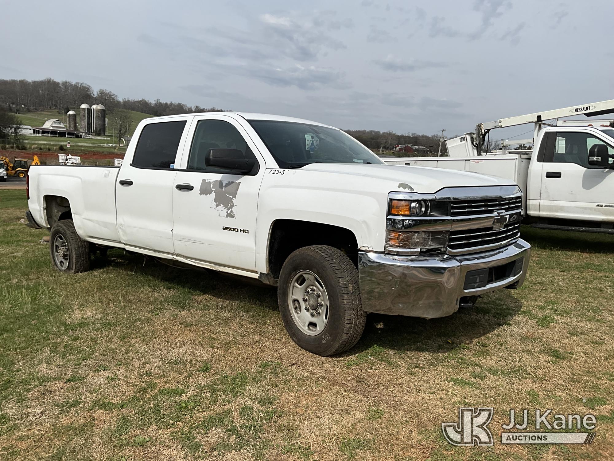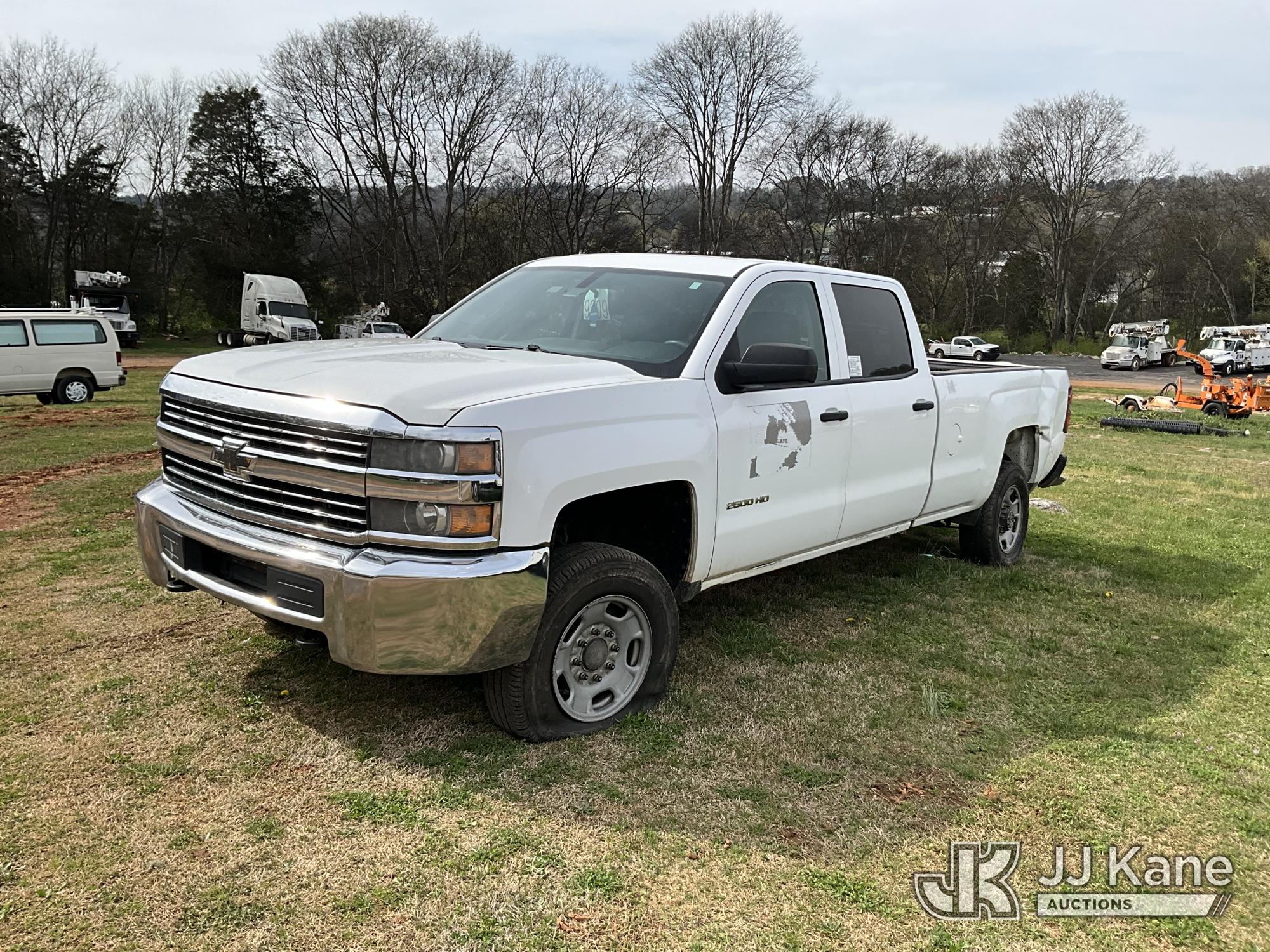 2015 Chevrolet Silverado 2500HD 4x4 Crew-Cab Pickup Truck, 6.0L V8 OHV 16V FFV gas, 6-Speed Automatic, A/C, (229,184 miles) (Runs) (Does Not Move, Condition Unknown, Jump To Start, Check Engine Light On, Flat Tires, Body/Paint Damage) (Seller States: Transmission Issue, Engine Issue, Body Damage) This is a Titled Item*