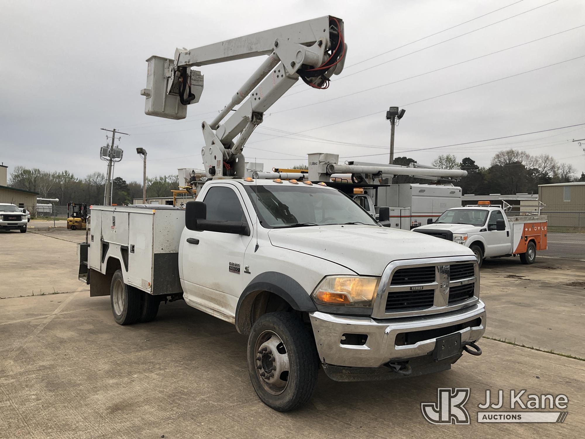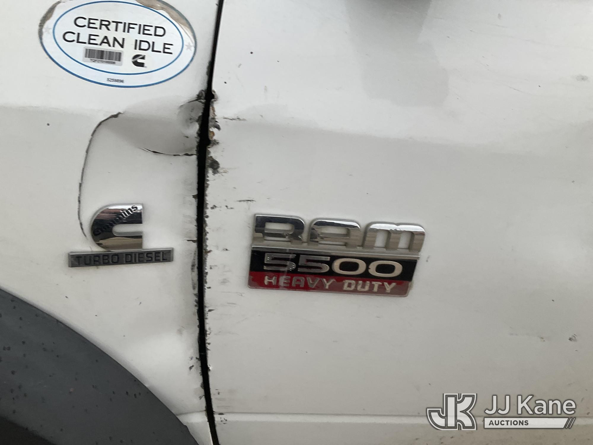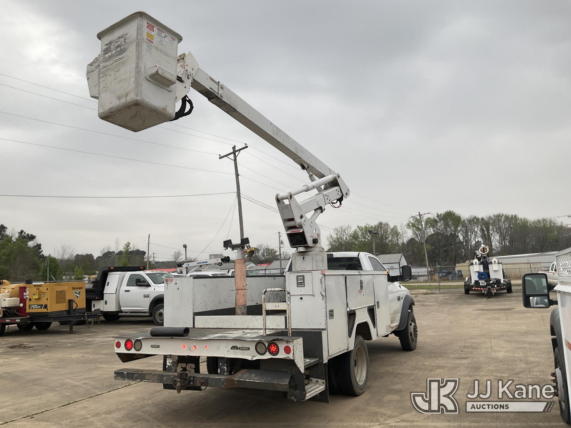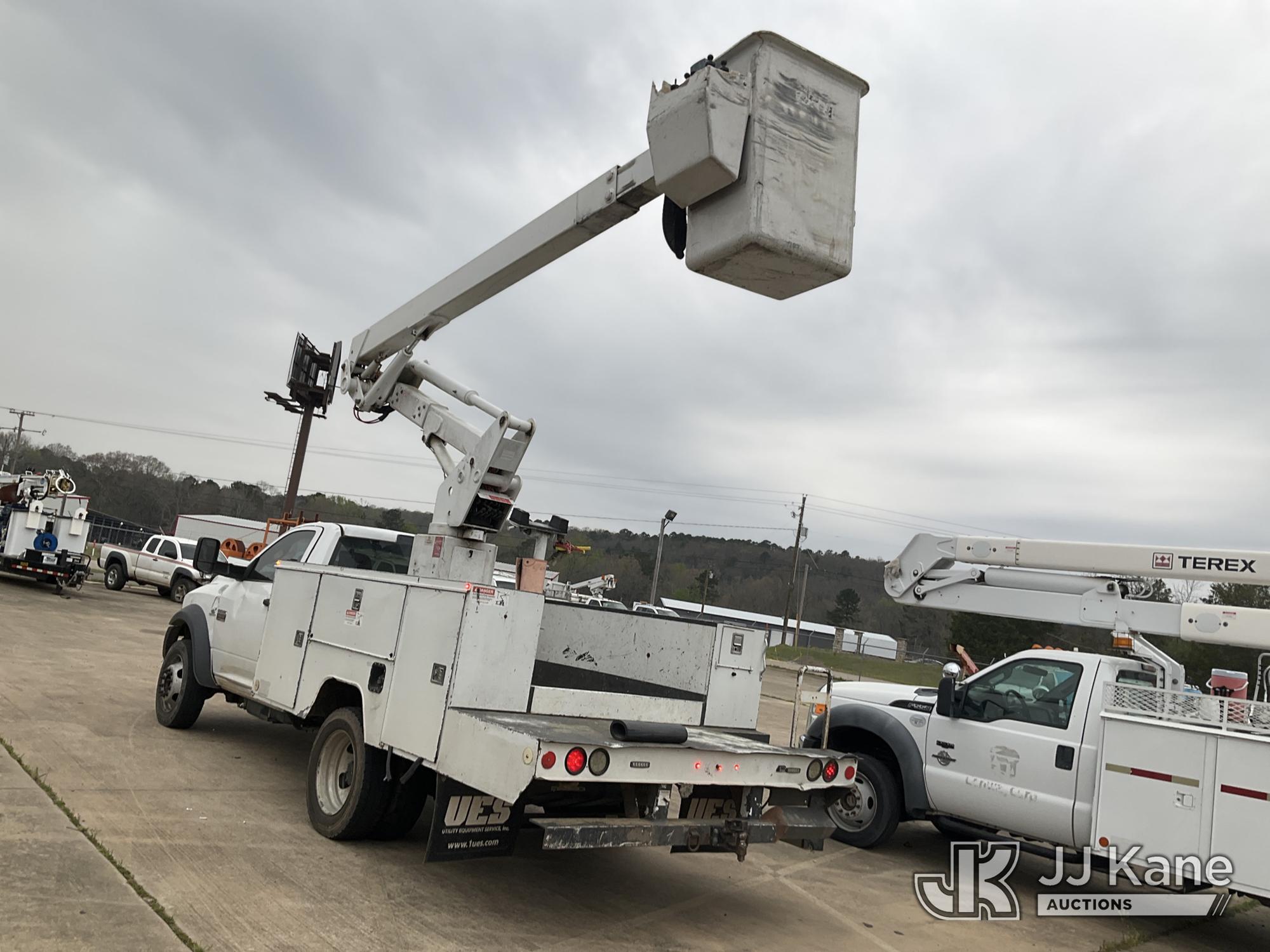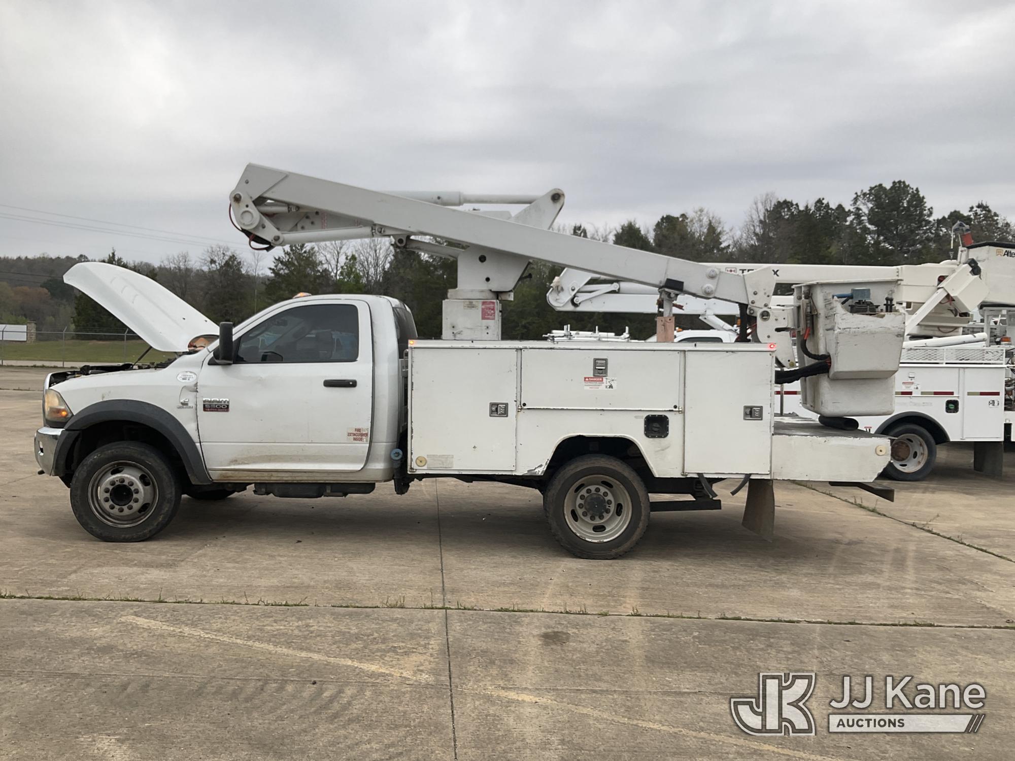 ETI ETC37-IH, 42 ft, Articulating & Telescopic Bucket Truck s/n 0212C78758, with single man bucket, mounted behind cab on 2012 Dodge Ram 5500 Service Truck, 6.7L diesel, 4WD, Auto, A/C, (160,436 miles) (Runs, Moves & Upper Operates) (Windshield Cracked, Some Body Panels Damaged, Seats in Poor Condition) (Reads 14,497 hours) This is a Titled Item*