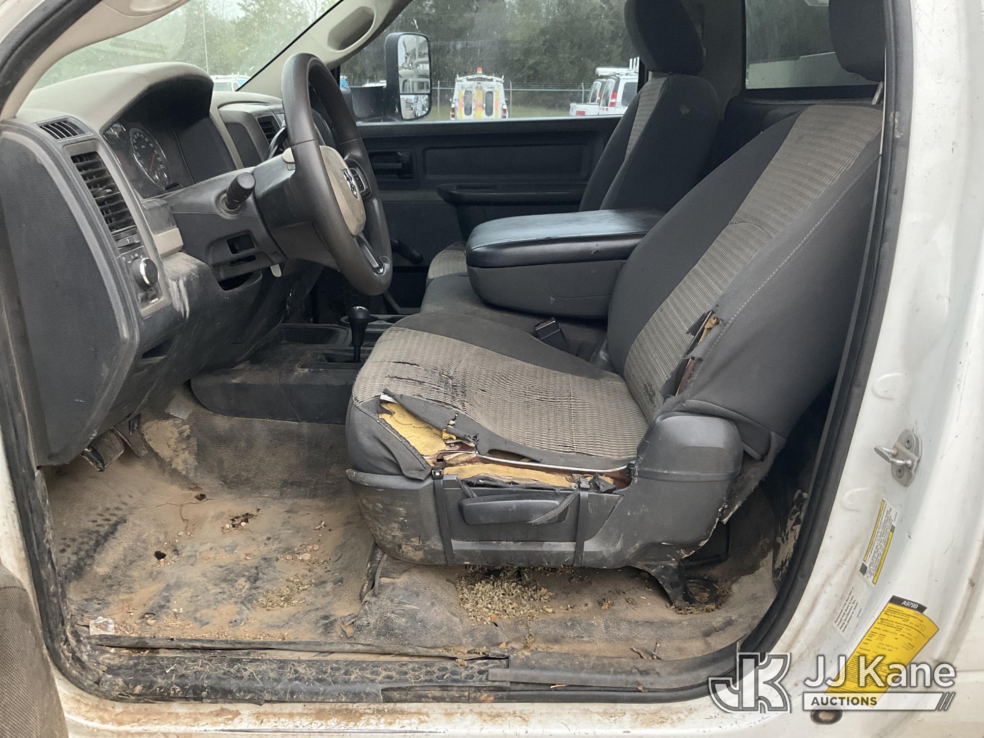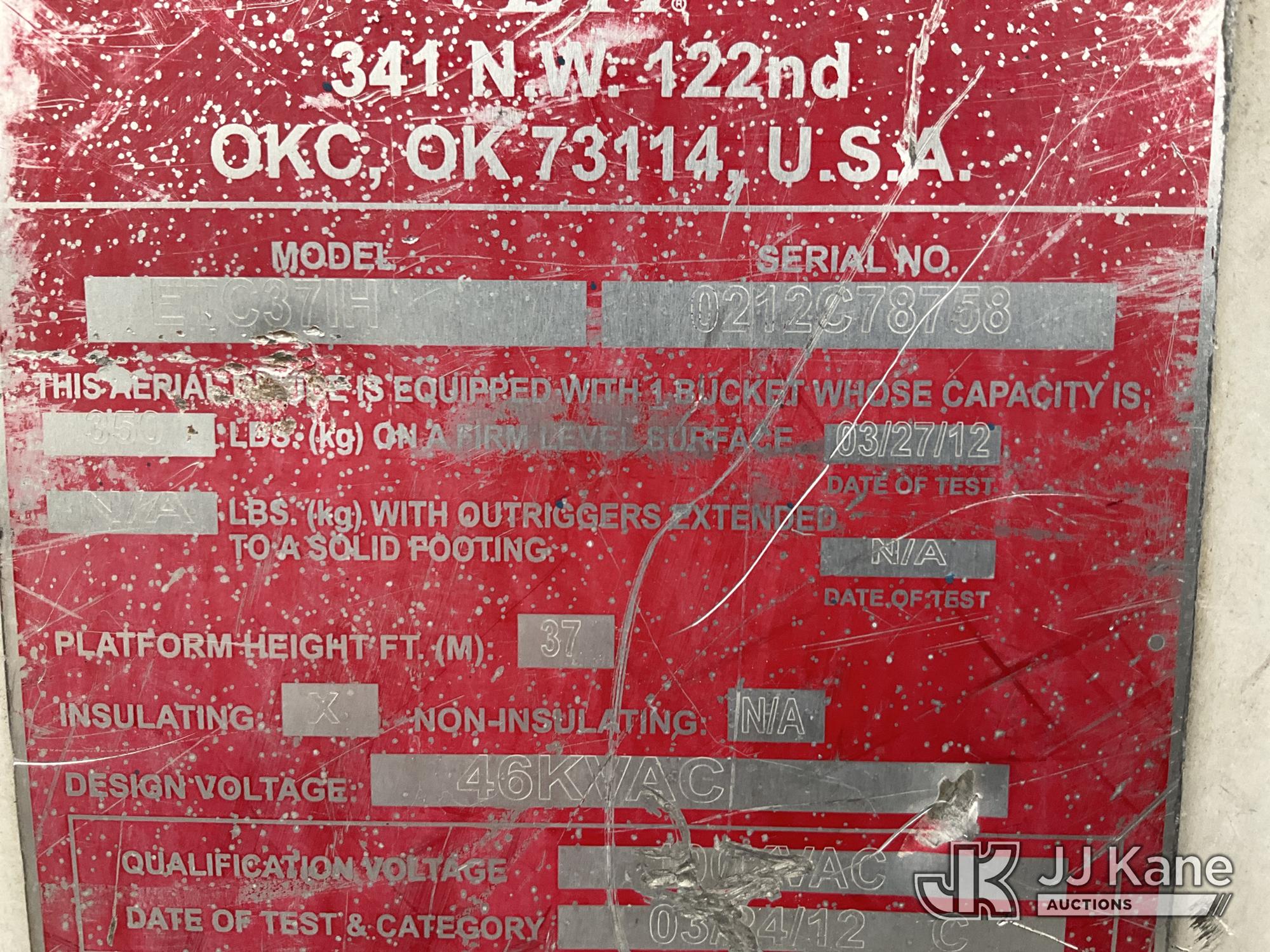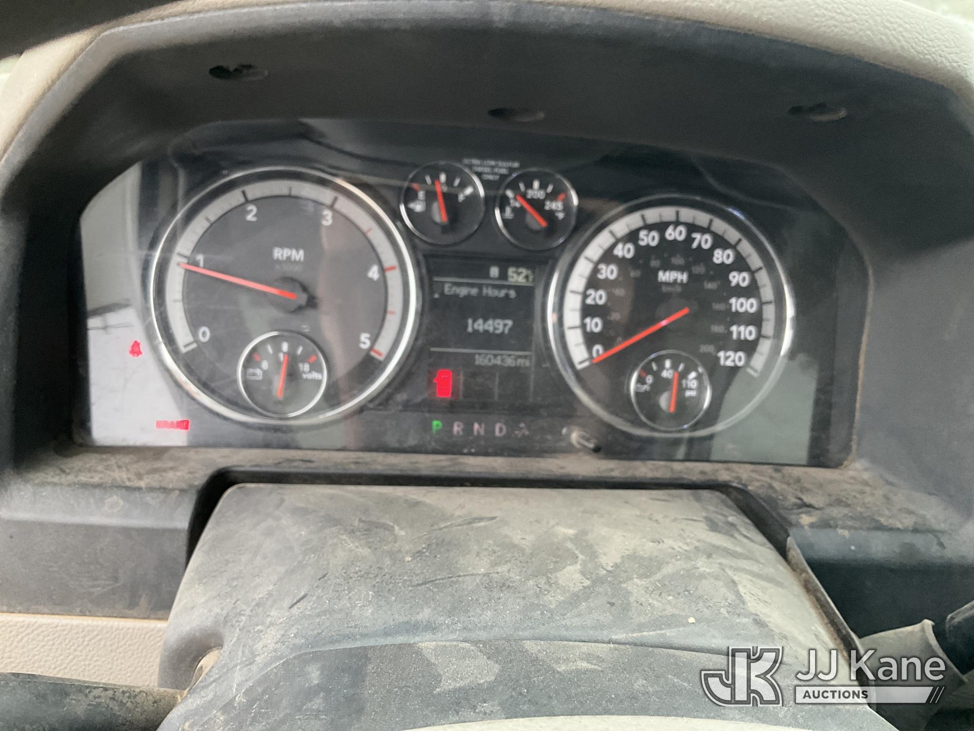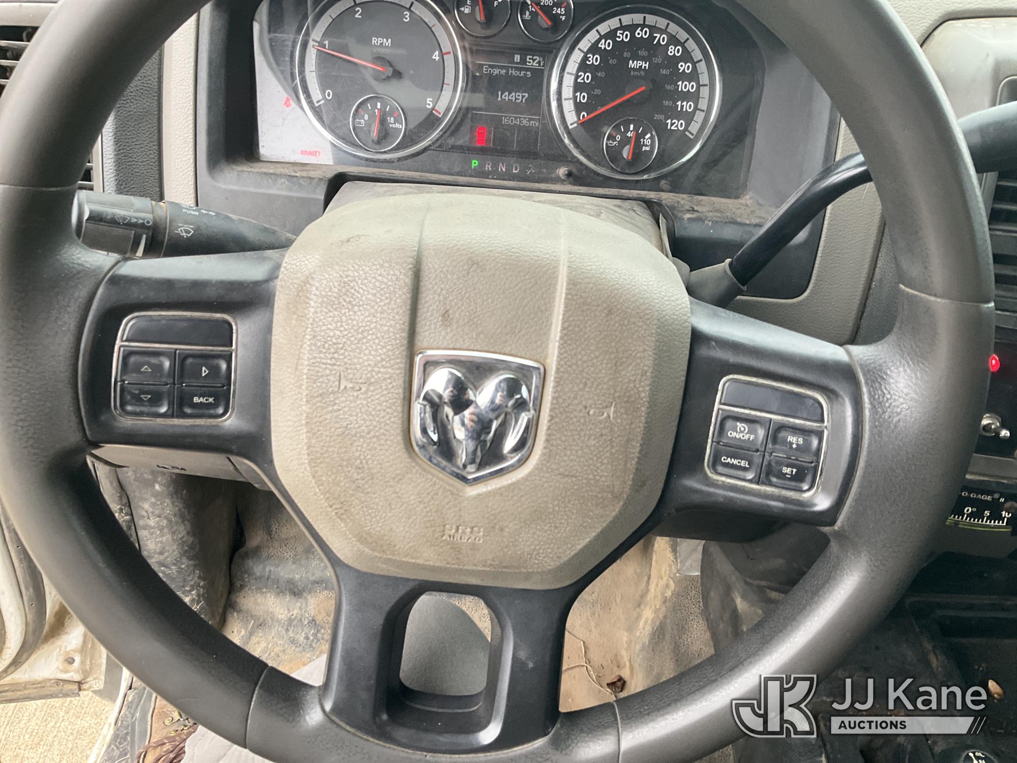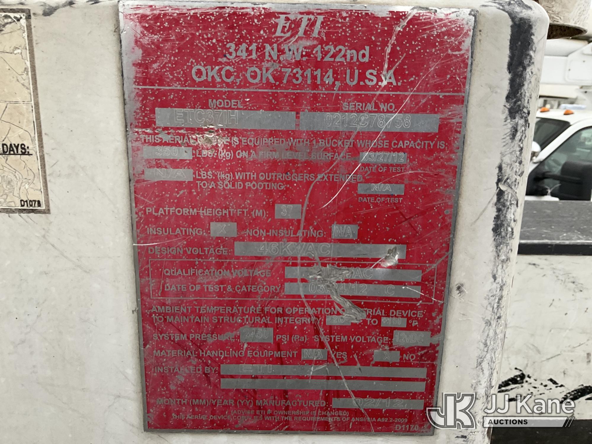 ETI ETC37-IH, 42 ft, Articulating & Telescopic Bucket Truck s/n 0212C78758, with single man bucket, mounted behind cab on 2012 Dodge Ram 5500 Service Truck, 6.7L diesel, 4WD, Auto, A/C, (160,436 miles) (Runs, Moves & Upper Operates) (Windshield Cracked, Some Body Panels Damaged, Seats in Poor Condition) (Reads 14,497 hours) This is a Titled Item*