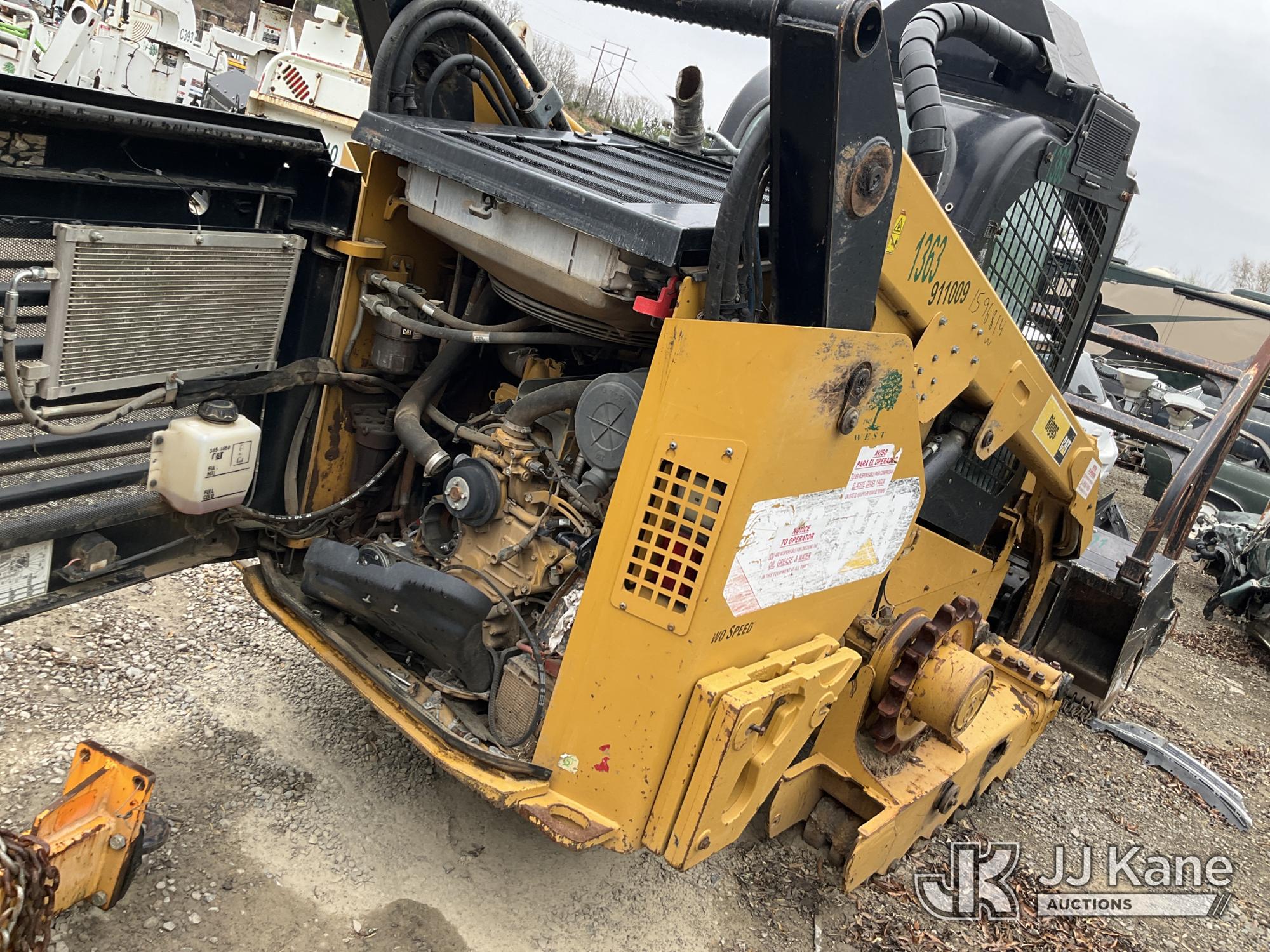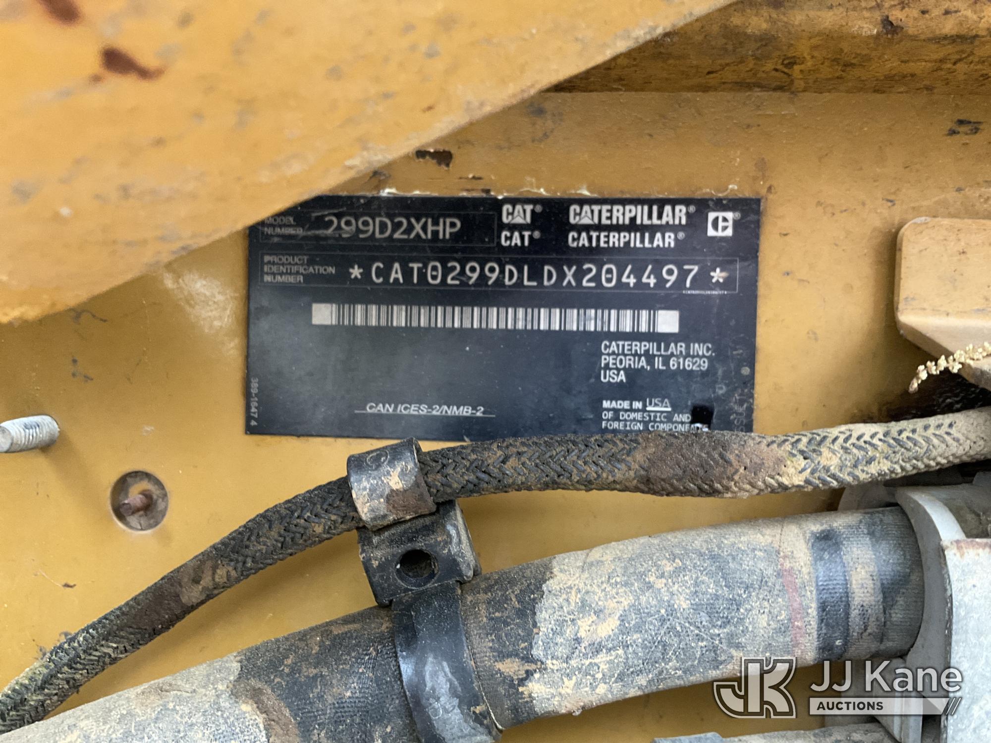 2019 Caterpillar 299D2 XHP Tracked Skid Steer Loader, s/n CAT0299DLDX204497, diesel, Hydrostatic, with mulching head attachment, aux hydraulics, EROPS, (Not Running, Condition Unknown, No Tracks, Partially Disassembled) (Seller States: Frame & Undercarriage Damage, No Tracks, Weld Rings In Track Slides Broken.)*