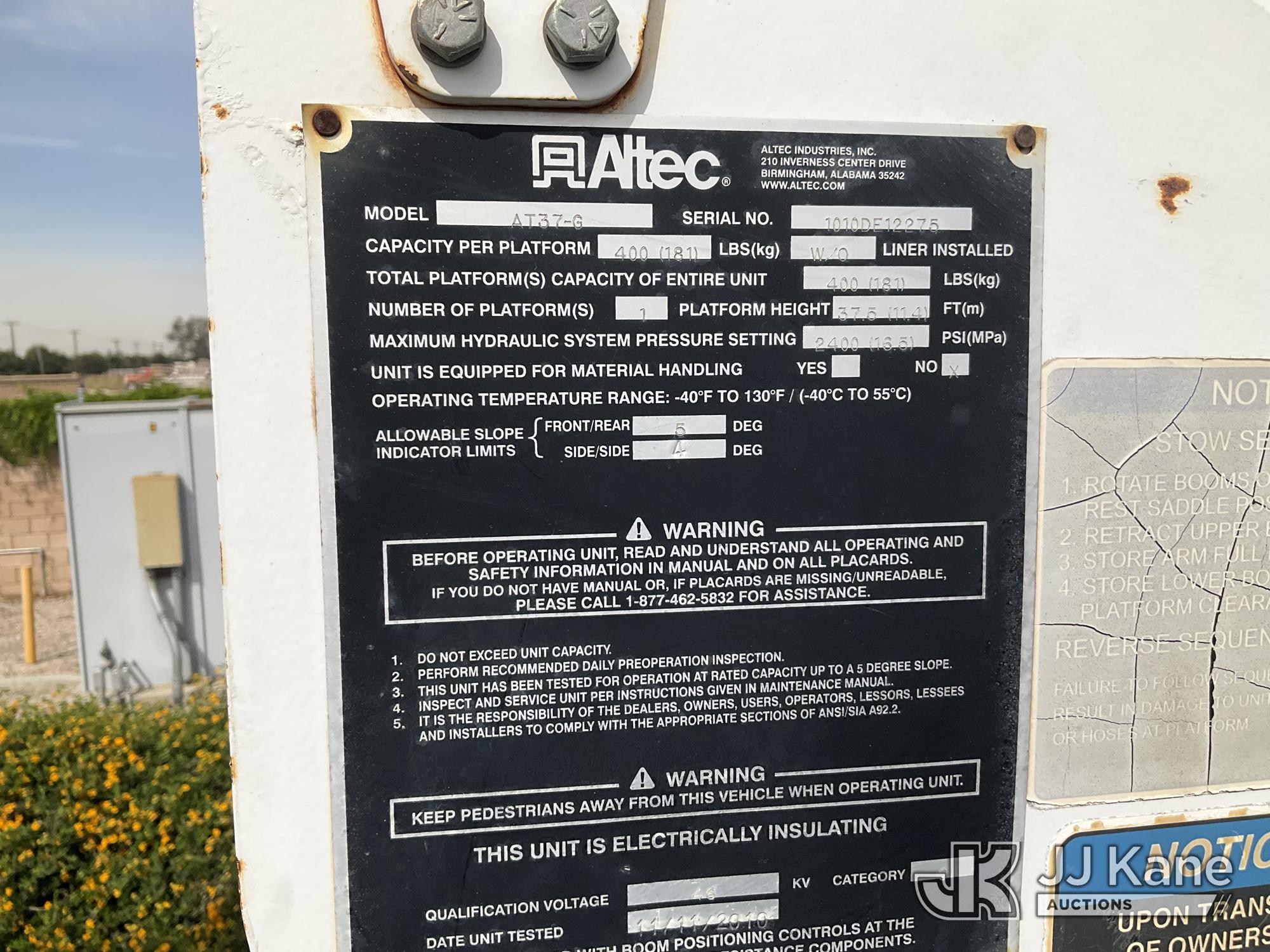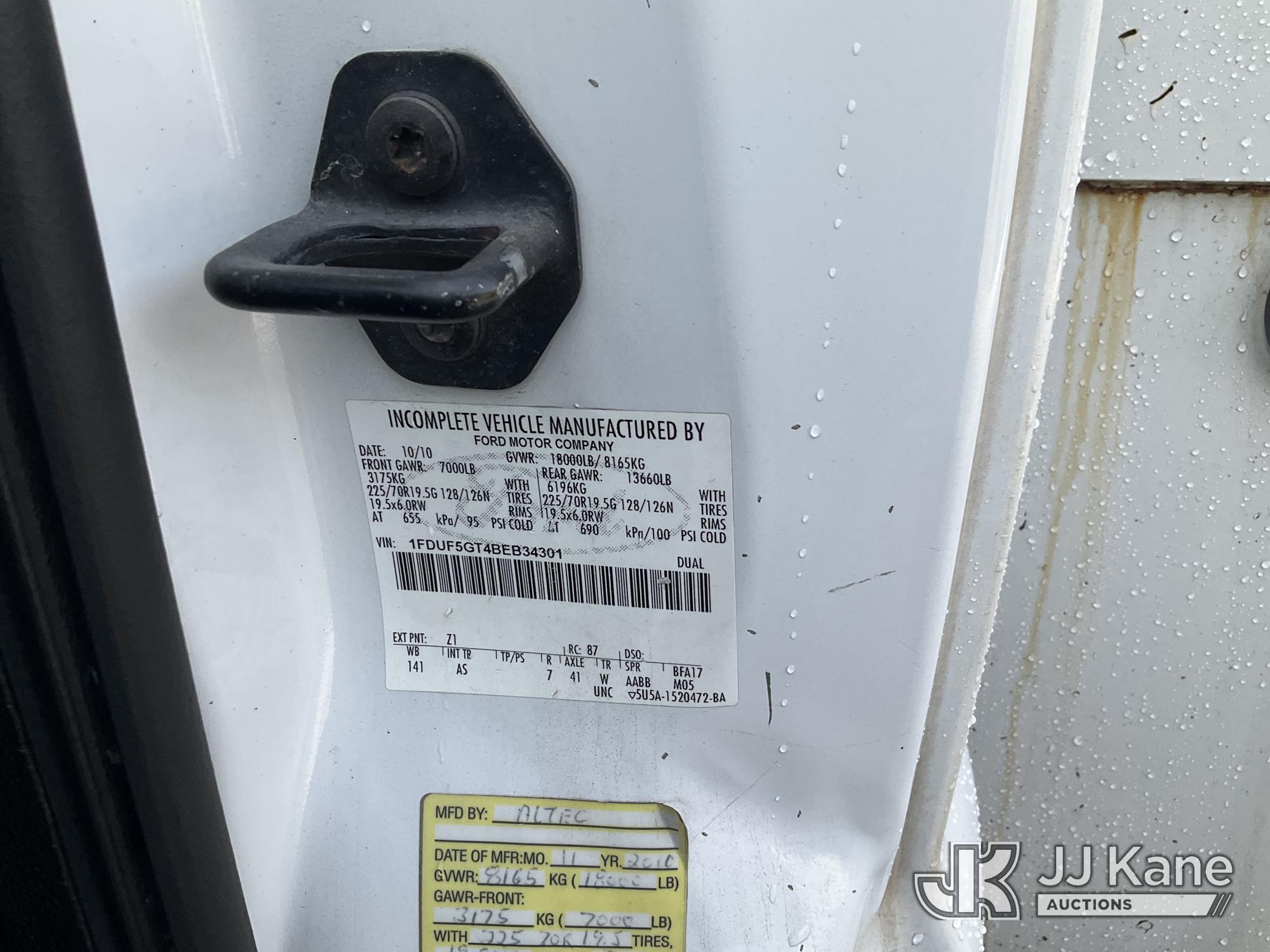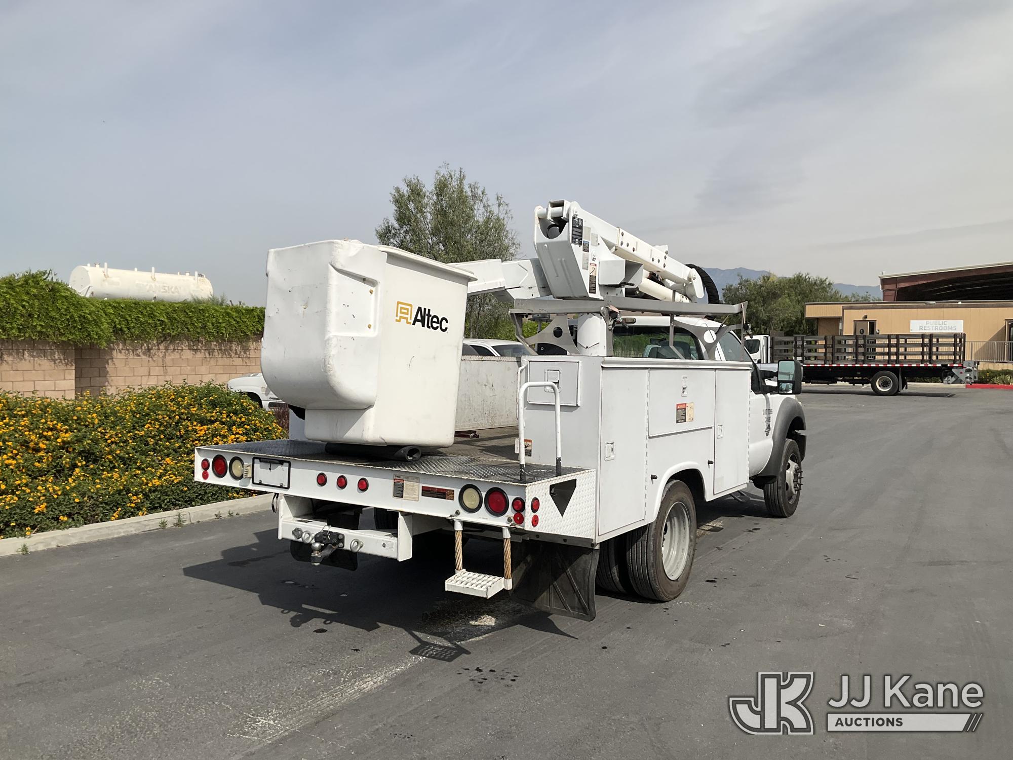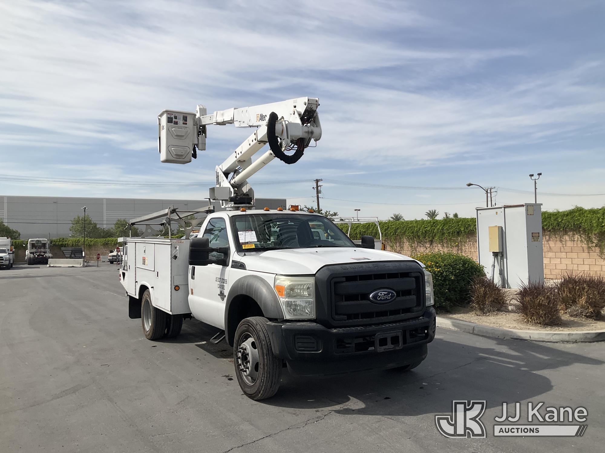 Altec AT37G, 400 Lb 37.5 ft, s/n 1010DE12275, with Single platform configuration, mounted behind cab on 2011 Ford F-550 Regular Cab DRW 2WD Service Truck, s/n 1FDUF5GT4BEB34301, 6.7L V8 OHV 16V DIESEL RWD, DIESEL, Auto, A/C, with Stereo w/bluetooth, reverse camera installed, A/C & heater working, (192,058 miles) (Runs, Moves, & Upper Operates) articulating boom,Air Bags Light On,Lifters Knocking) (Bidding Restricted to Licensed Vehicle Dealers Only), May be subject to ARB Regulations This is a Titled Item*
