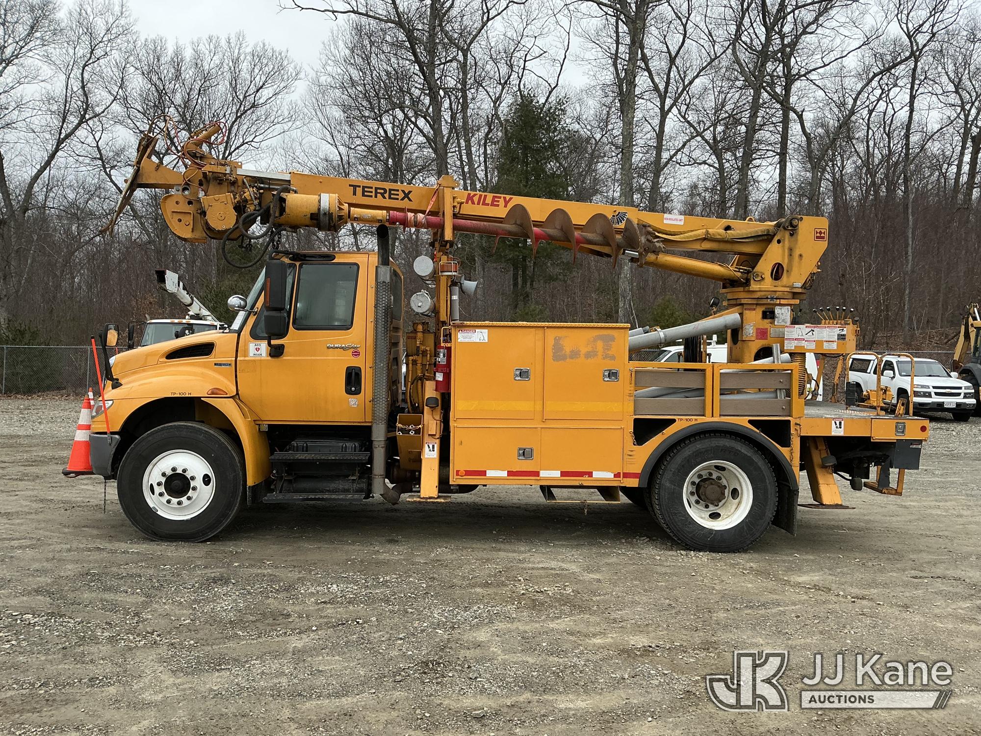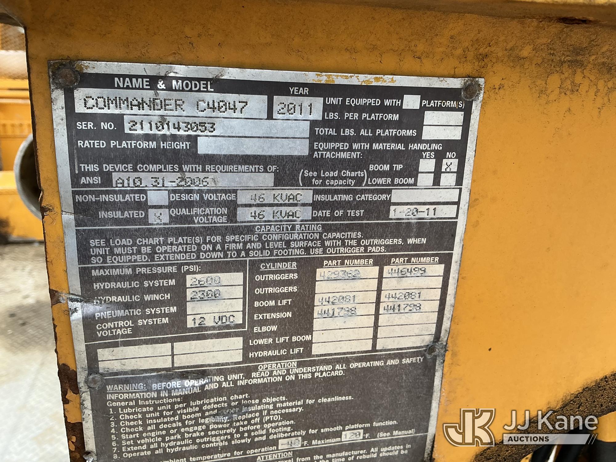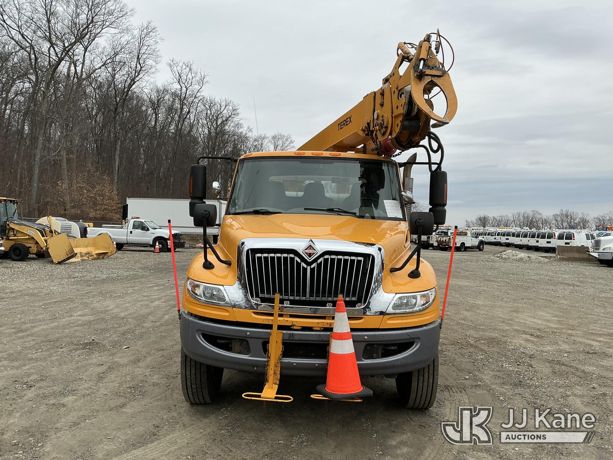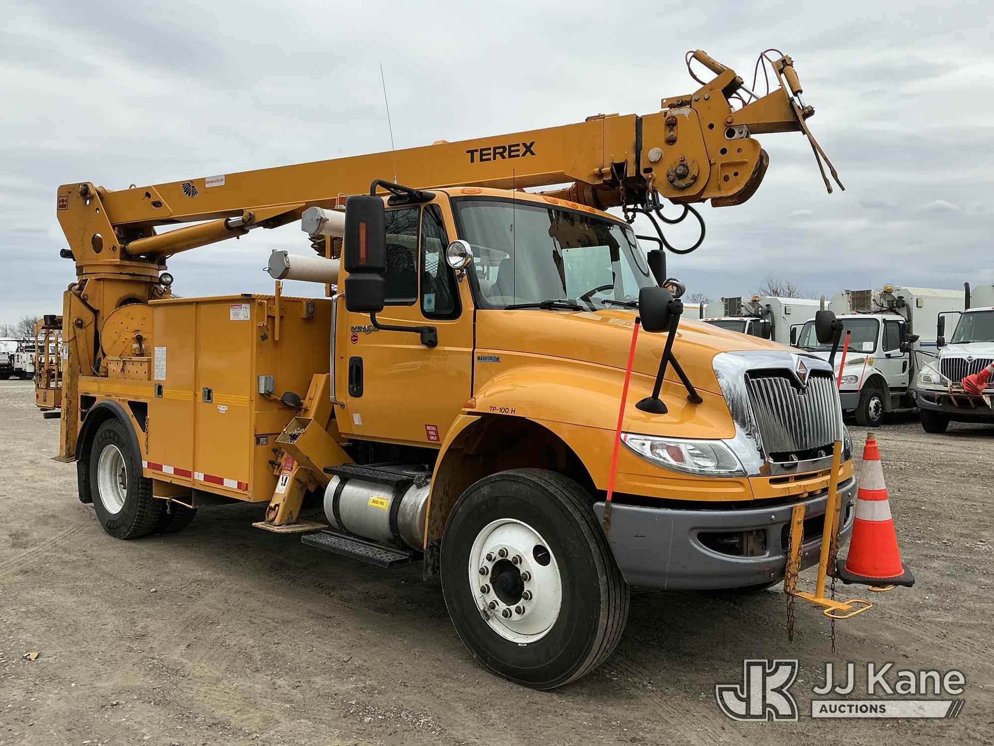 Terex/Telelect Commander C4047, 18,890 Lb Digger Derrick s/n 2110143053, with 47 ft sheave height, 2-spd digger, tip winch, pole grabs & stand up controls, corner mounted on 2011 International 4400 Flatbed/Utility Truck, MaxxForce 7.6L 4X2, diesel, Auto, A/C, (48,598 miles) (Runs & Moves) (Hydraulic Leak, Upper Condition Unknown, Check Engine Light On) (Reads 5,817 hours) This is a Titled Item*