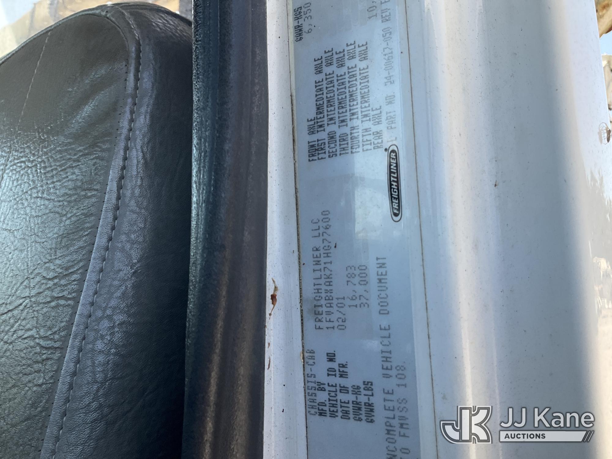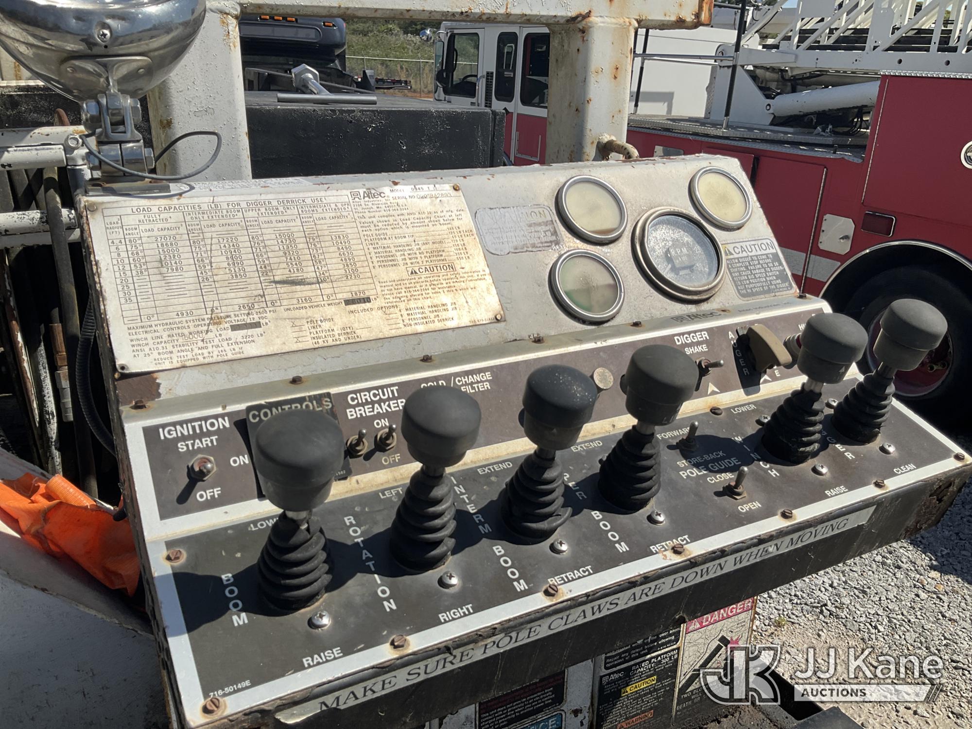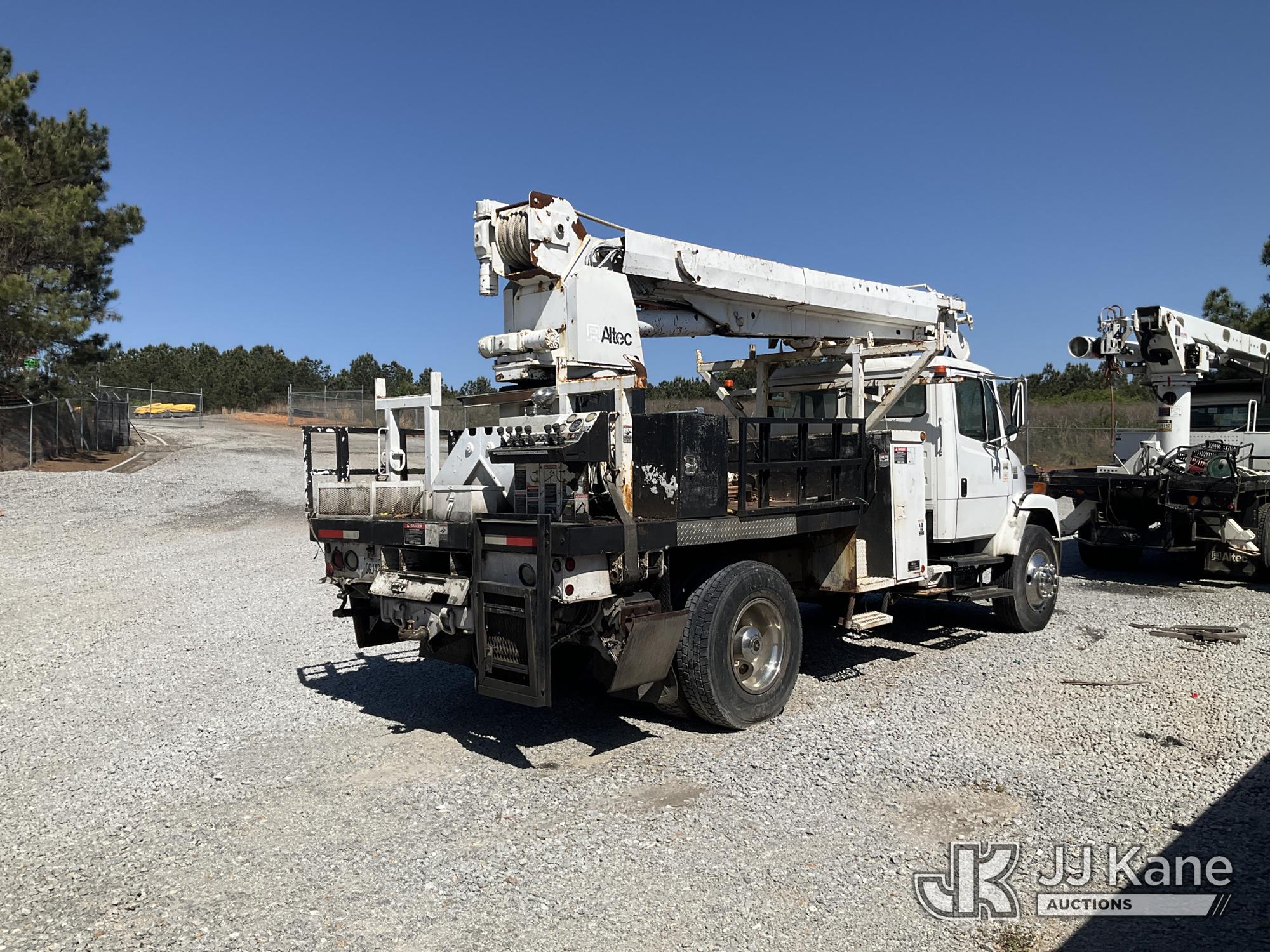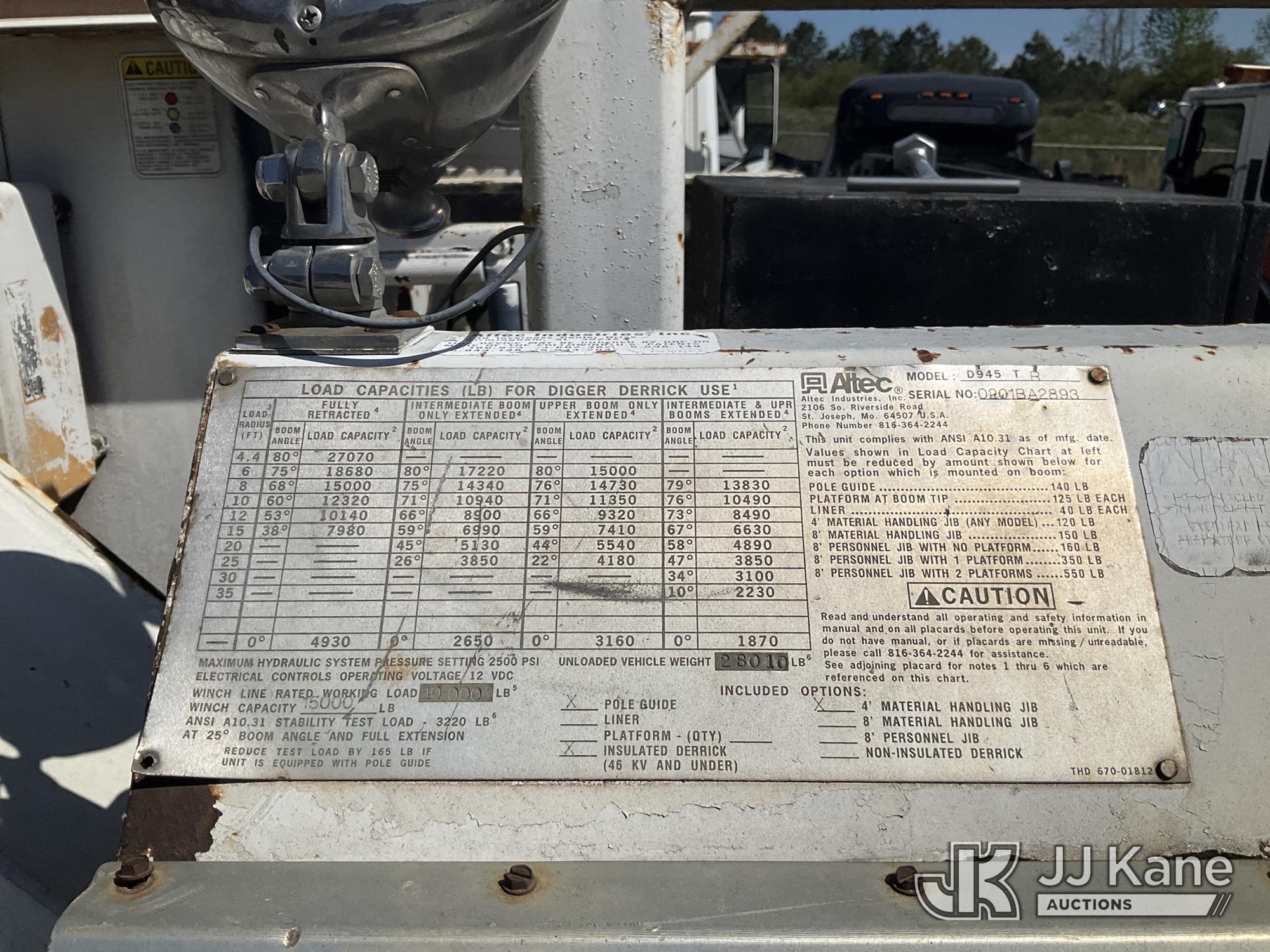 Altec D945-TB, 27,070 Lb Digger Derrick s/n 0201BA2893, with 45 ft. sheave height, 3 section hyd boom, 2 spd digger, heel winch, stand up controls & 4 hyd outriggers, rear mounted on 2001 Freightliner FL80 Flatbed/Utility Truck, 7.2L L6 Diesel, 4X2, Auto, True Mileage Unknown (Not Running, Condition Unknown, No Key, Upper Condition Unknown) This is a Titled Item*