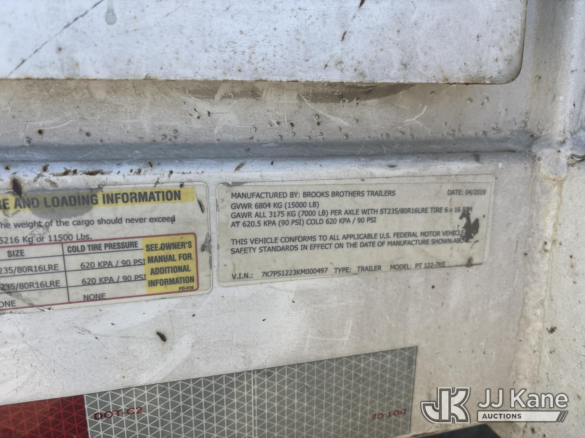 2019 Brooks Brothers PT-122-7KE T/A Extendable Pole/Material Trailer, (Red-Tagged, Accident Damage, tongue extension flange, pin retainer area, right front corner of cargo bed, and wiring damaged, no brakes or lights) This is a Titled Item*