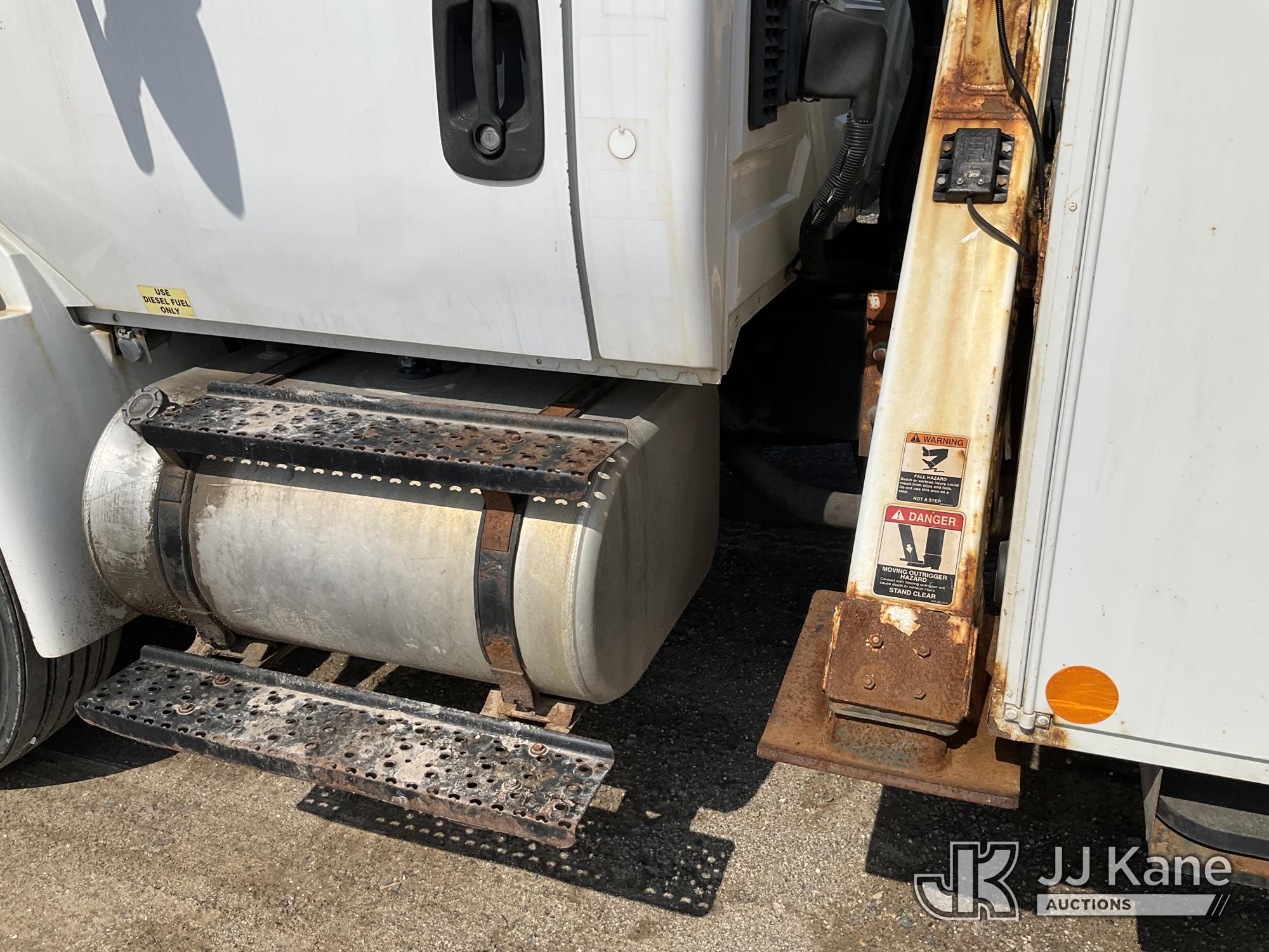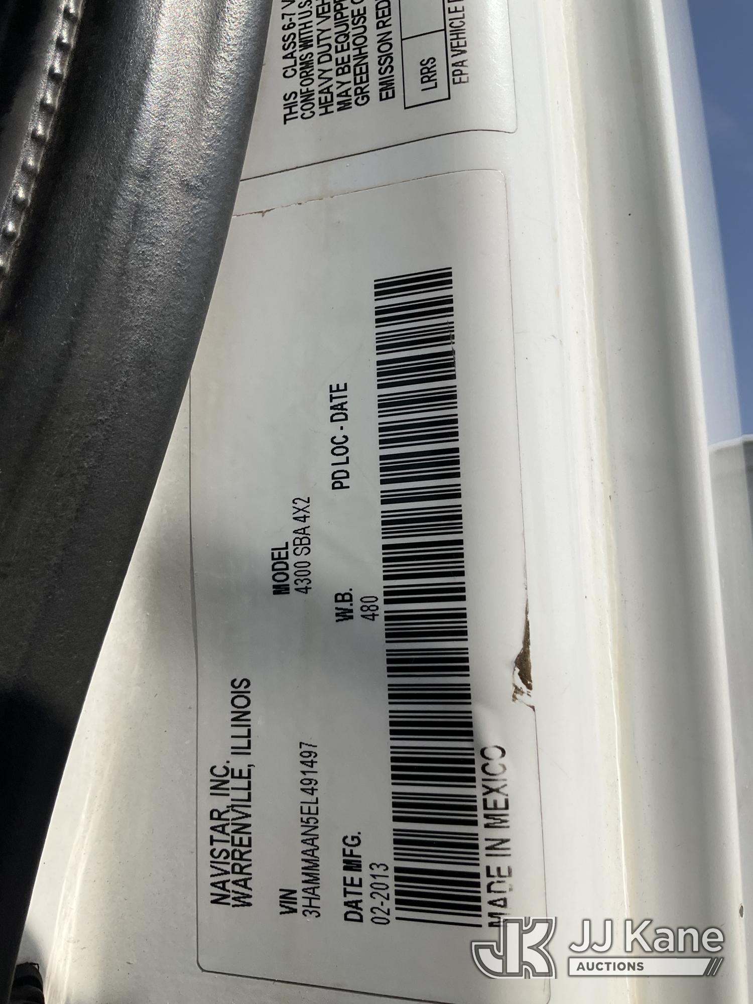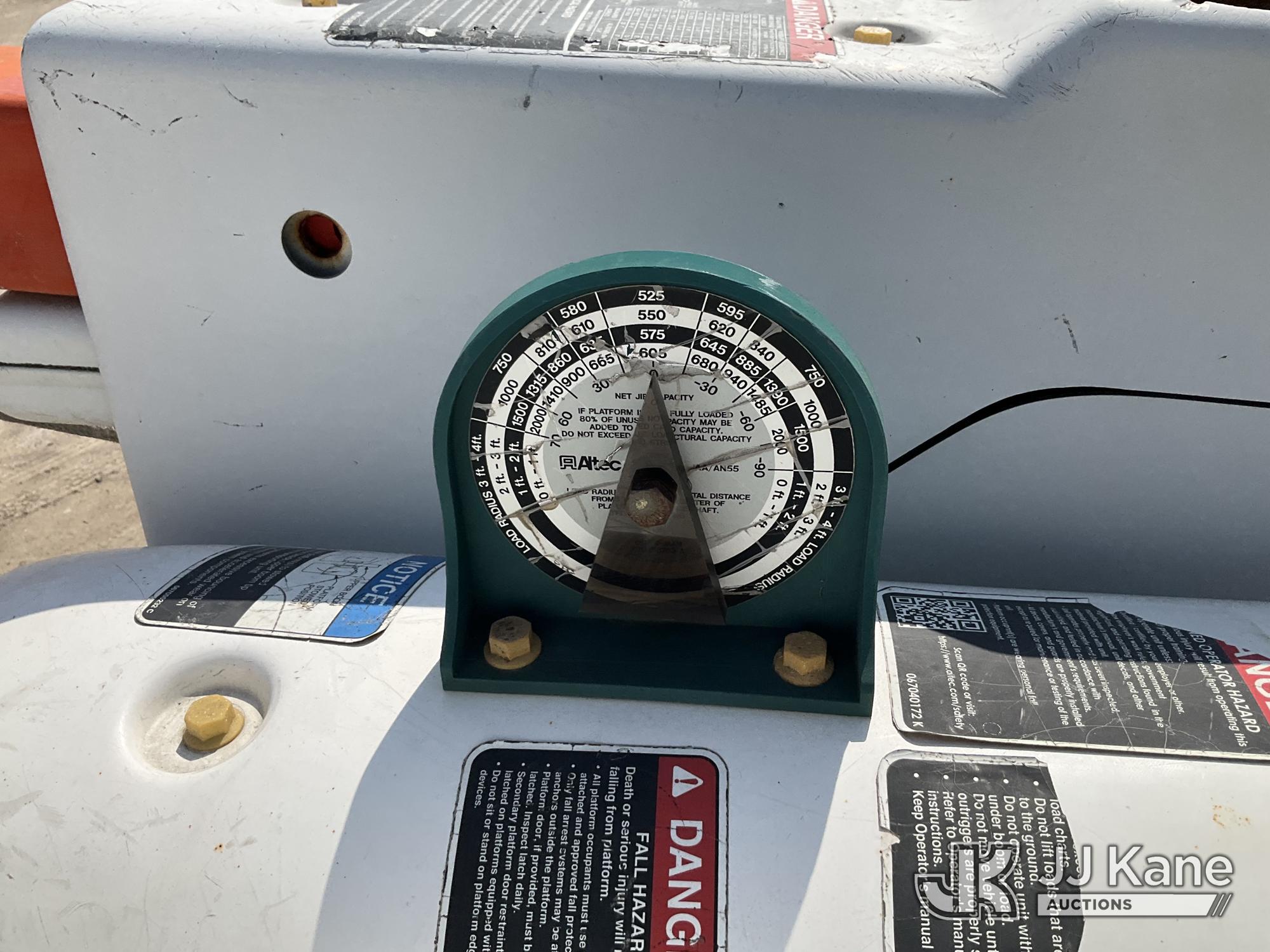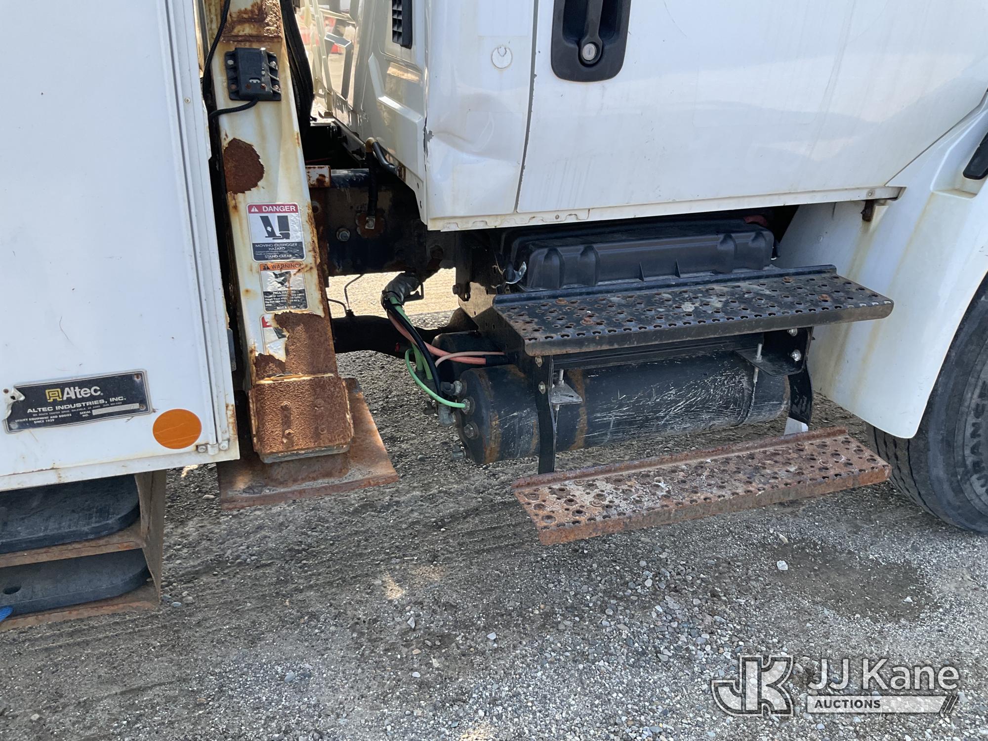 Altec AA55-MH, 60 ft, Material Handling Bucket Truck s/n 0313FH0411, with two man bucket, material handling jib, four hydraulic outriggers, rear mounted on 2014 International DuraStar 4300 Utility Truck, 7.6L L6 DIESEL 4X2, Auto, A/C, (90,630 miles) (Runs, Moves & Upper Operates) (Rust) (Reads 11,451 hours) This is a Titled Item*