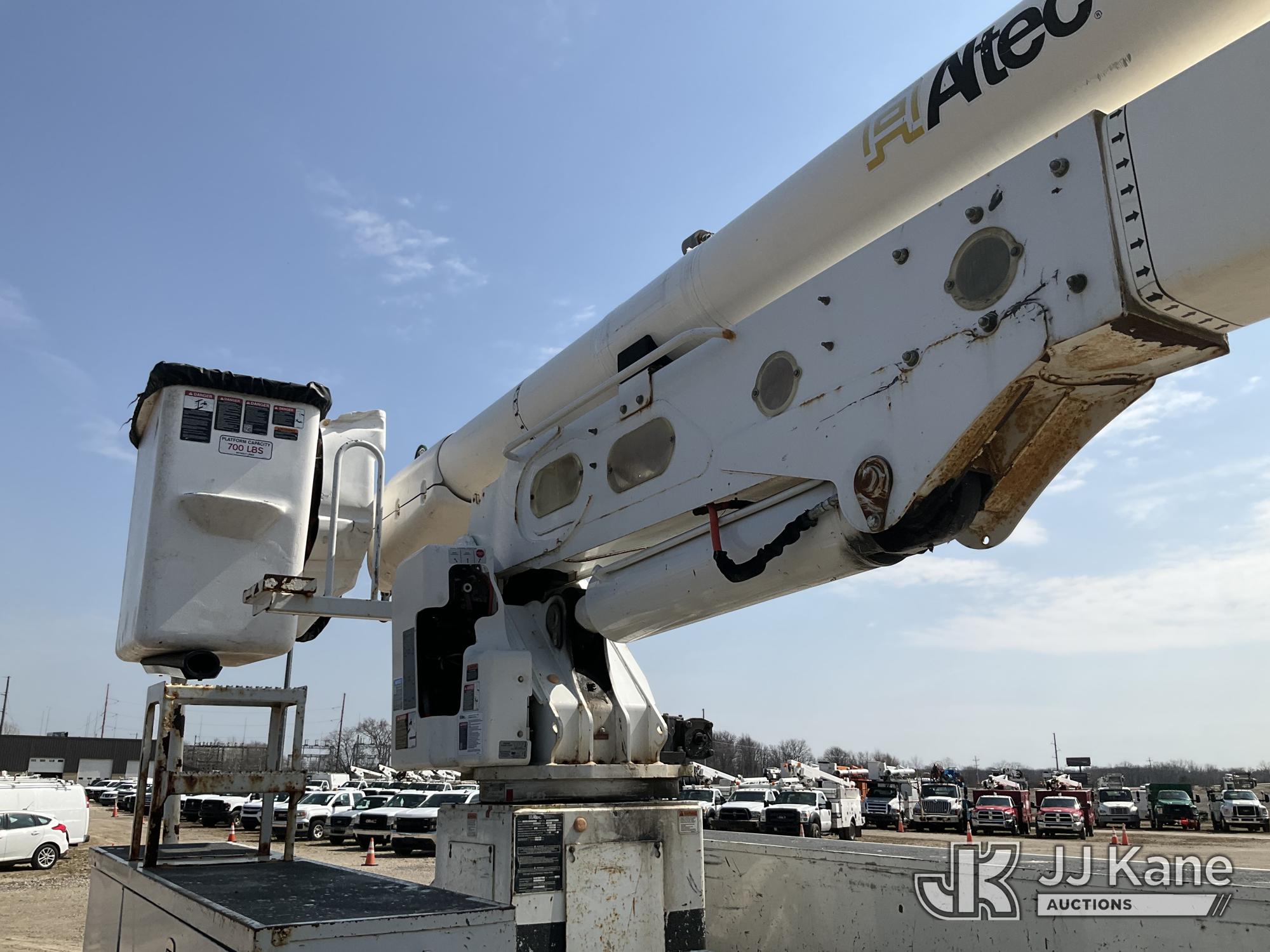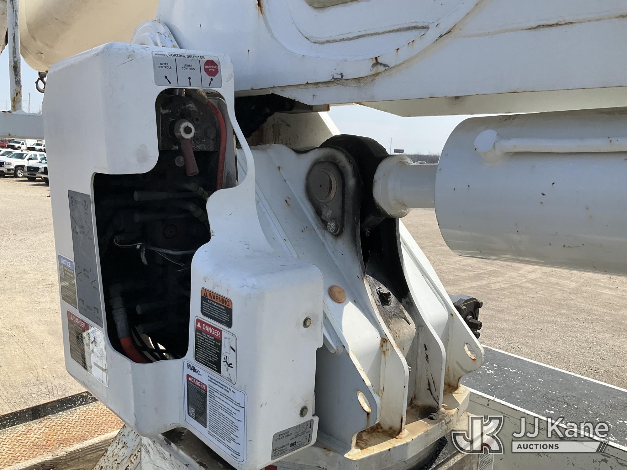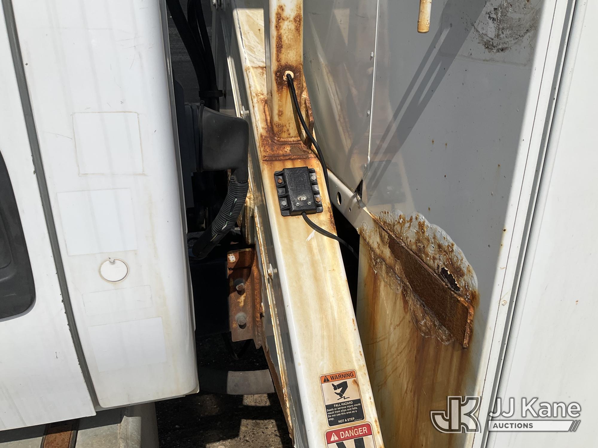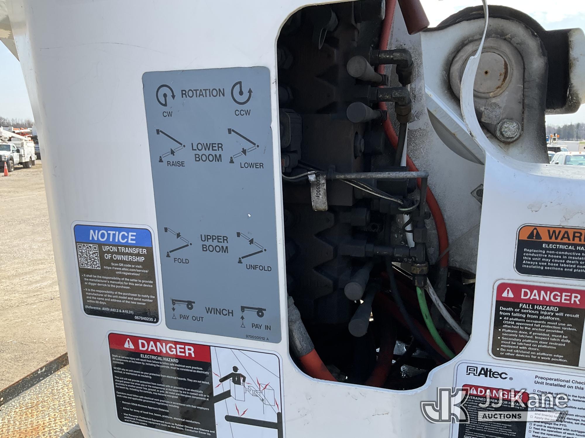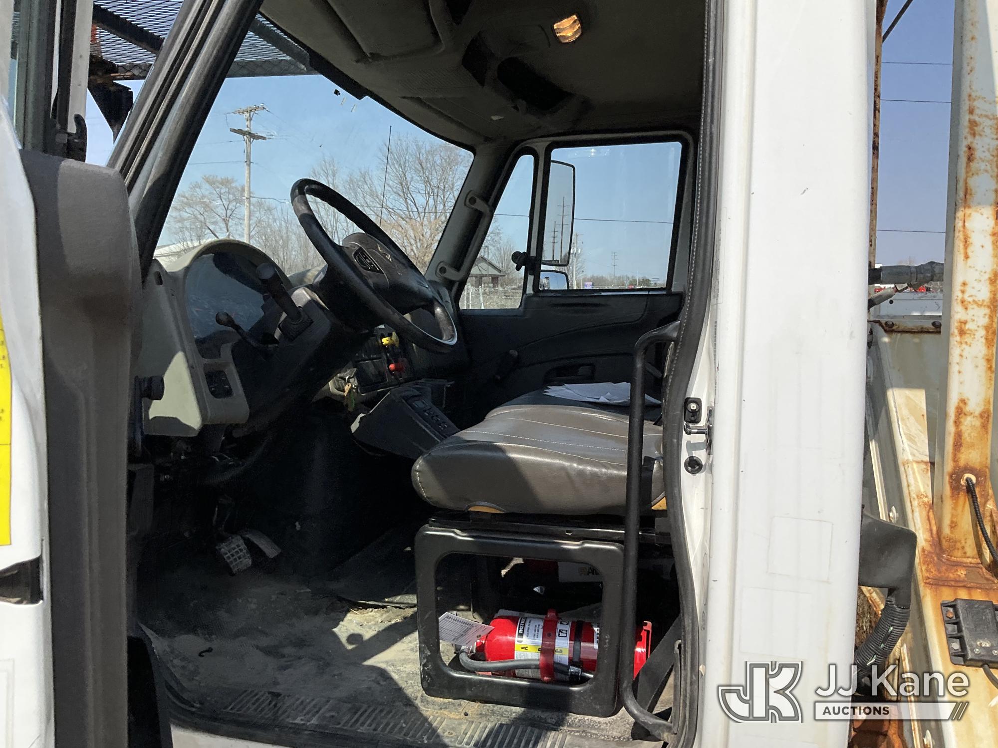 Altec AA55-MH, 60 ft, Material Handling Bucket Truck s/n 0313FH0411, with two man bucket, material handling jib, four hydraulic outriggers, rear mounted on 2014 International DuraStar 4300 Utility Truck, 7.6L L6 DIESEL 4X2, Auto, A/C, (90,630 miles) (Runs, Moves & Upper Operates) (Rust) (Reads 11,451 hours) This is a Titled Item*