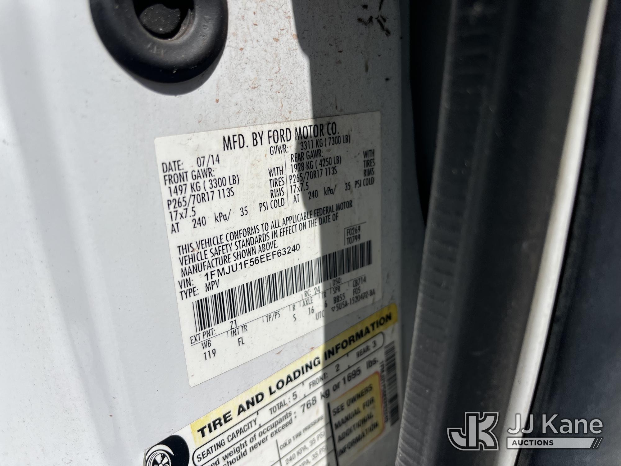 2014 Ford Expedition 4-Door Sport Utility Vehicle, 5.4L V8 SOHC 16V FFV gas, RWD, 6-Speed Automatic, A/C, (98,067 miles) City of Dunedin Unit (Runs & Moves) (Paint Damage) (FL Residents Purchasing Titled Items – tax, title & registration fees will be collected at the maximum rate of $400.00 under 25,999 and $800.00 for Over 26,000 and $250.00 trailers – Proof of insurance is mandatory; Out of State Residents Purchasing Title Items – tax will be collected based upon your state rate.) This is a Titled Item*