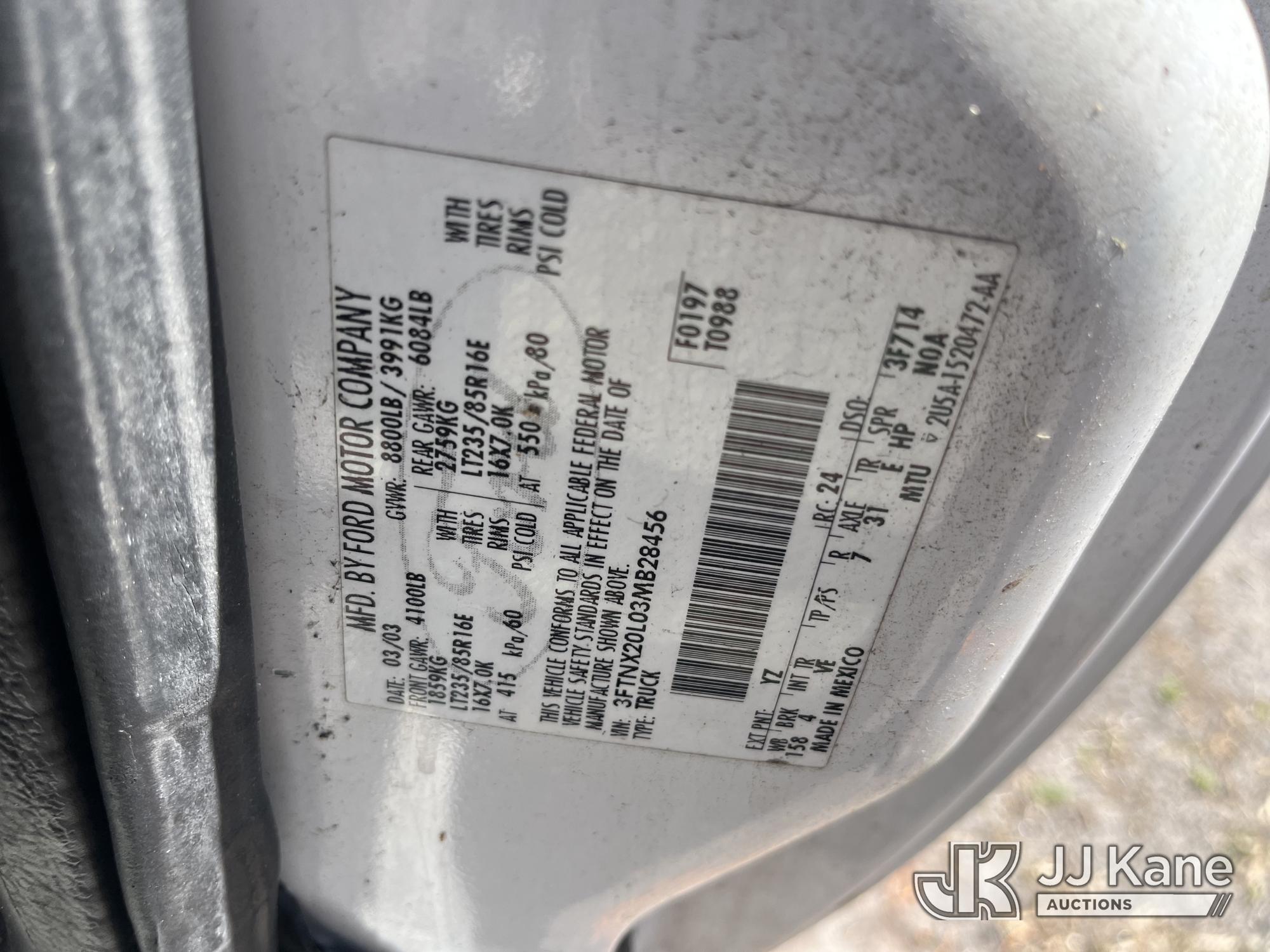2003 Ford F250 Extended-Cab Pickup Truck, 5.4L V8 SOHC 16V gas, RWD, Auto, A/C, with liftgate, (Exempt from Odometer Disclosure - Reads 101,410 miles) City of Dunedin Unit (Runs & Moves) (Rust & Paint Damage) This is a Titled Item*