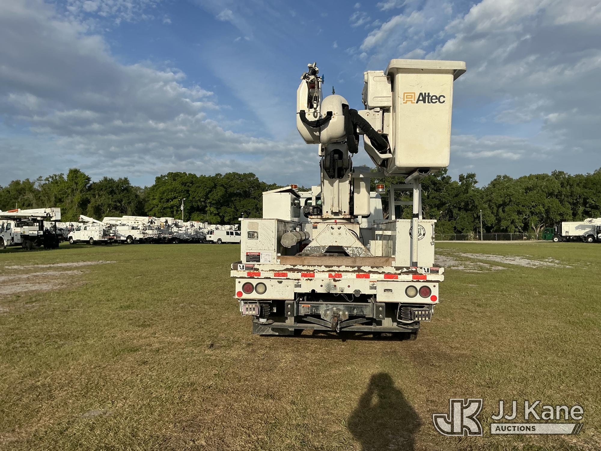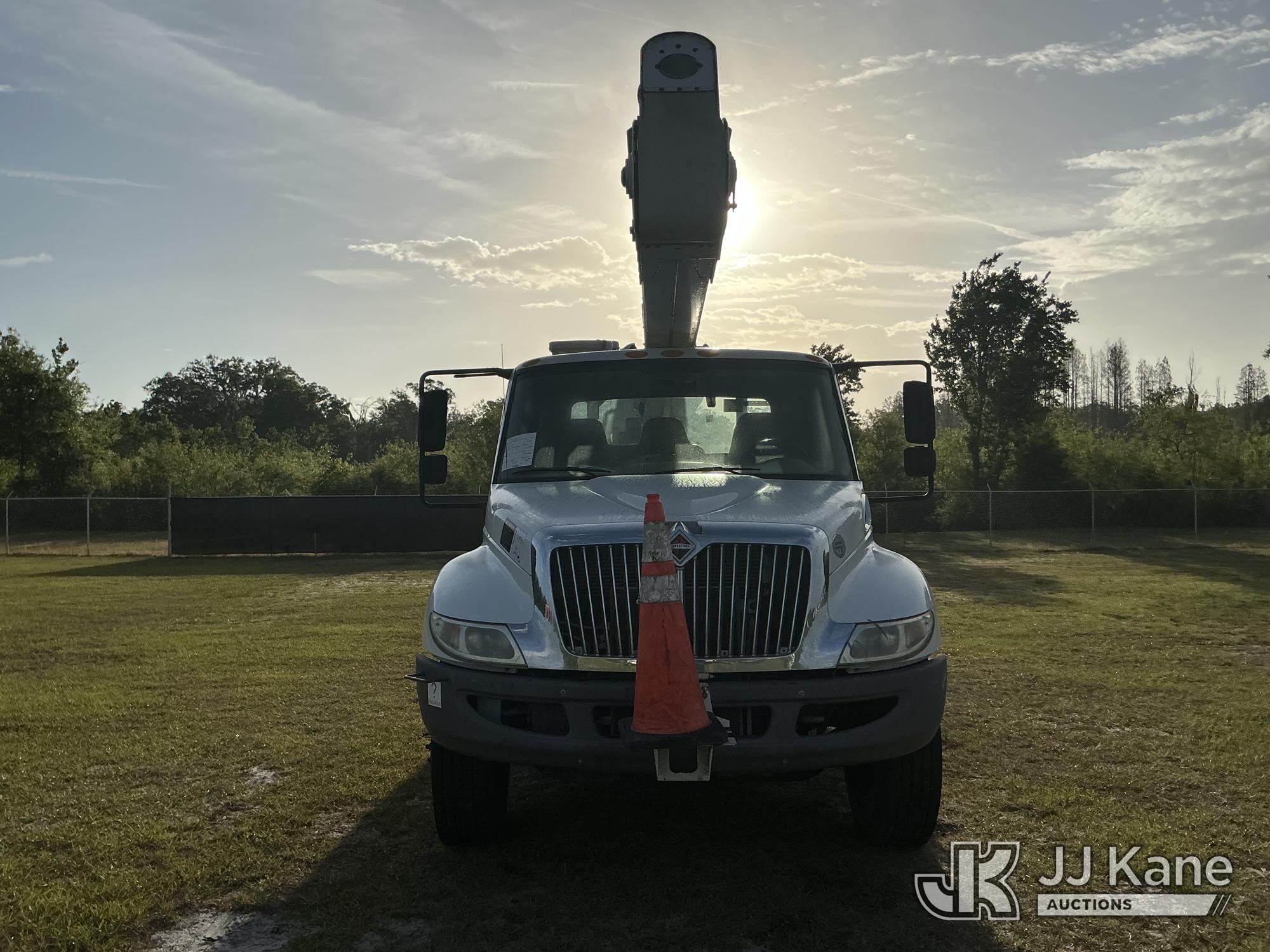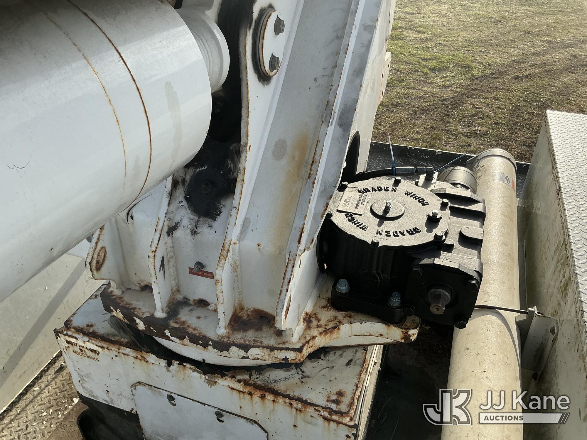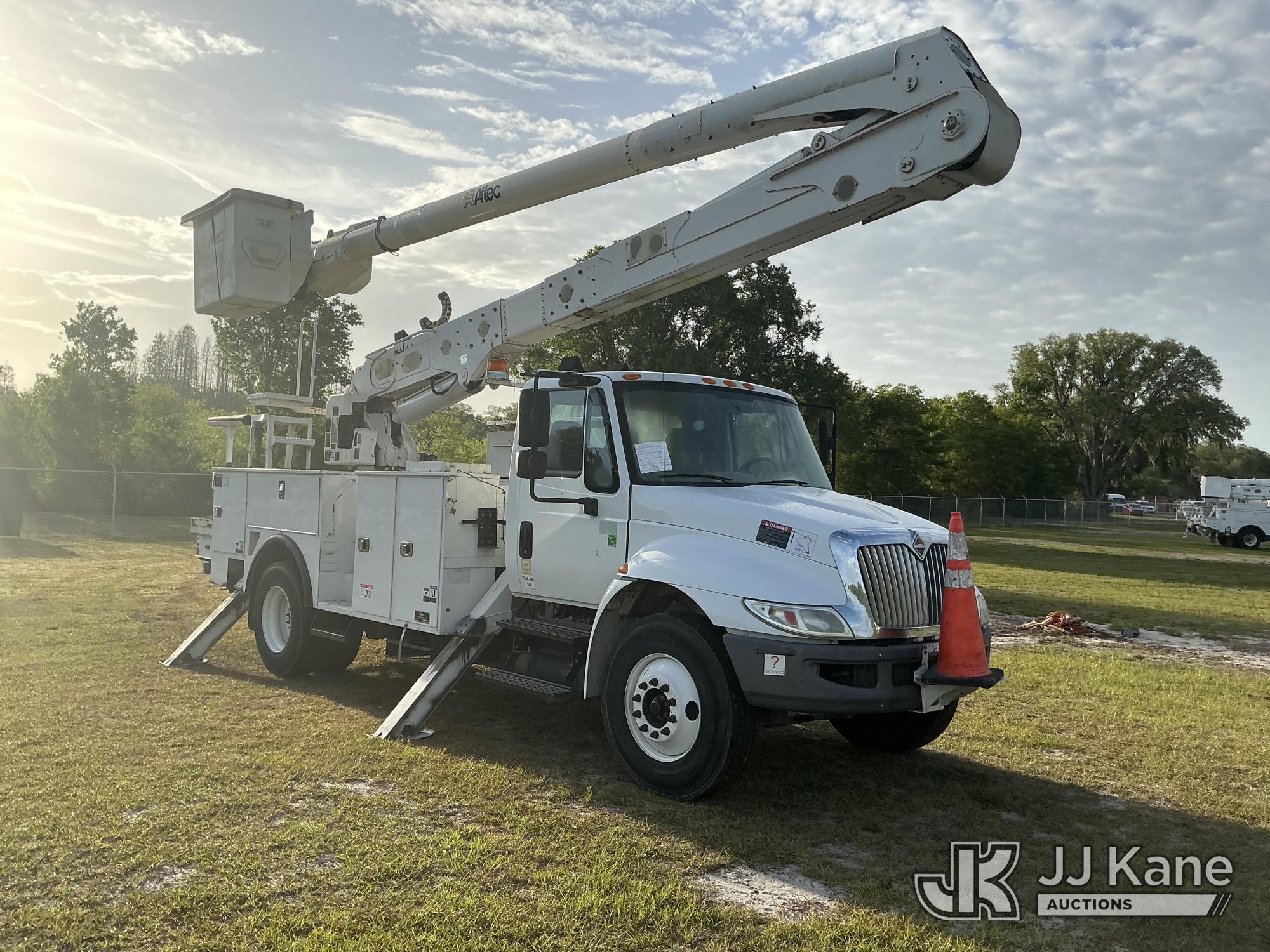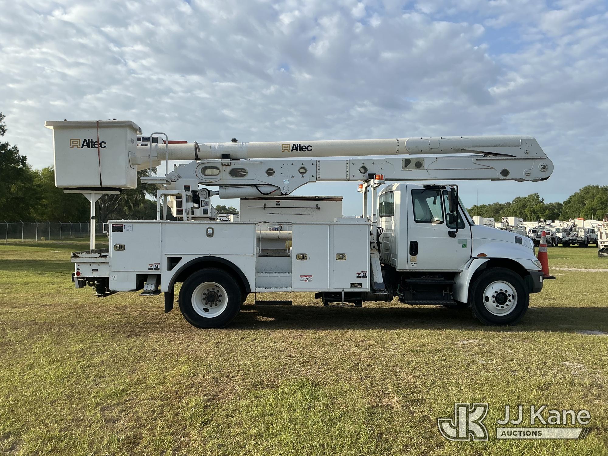 Altec AA55MH, 61 ft, Material Handling Bucket Truck s/n 0617FH4690, with Two-Man Bucket, 4 Hydraulic Outriggers, rear mounted on 2018 International 4300 Utility Truck, Cummins ISB 6.7L Diesel Auto, A/C, (60,933 miles) Radio/Dash Cam Not Included (Runs, Moves & Upper Operates) (Check Engine Light On) (Reads 2,632 hours) This is a Titled Item*