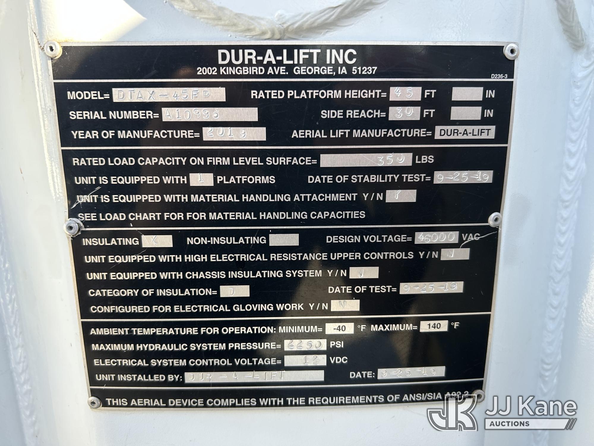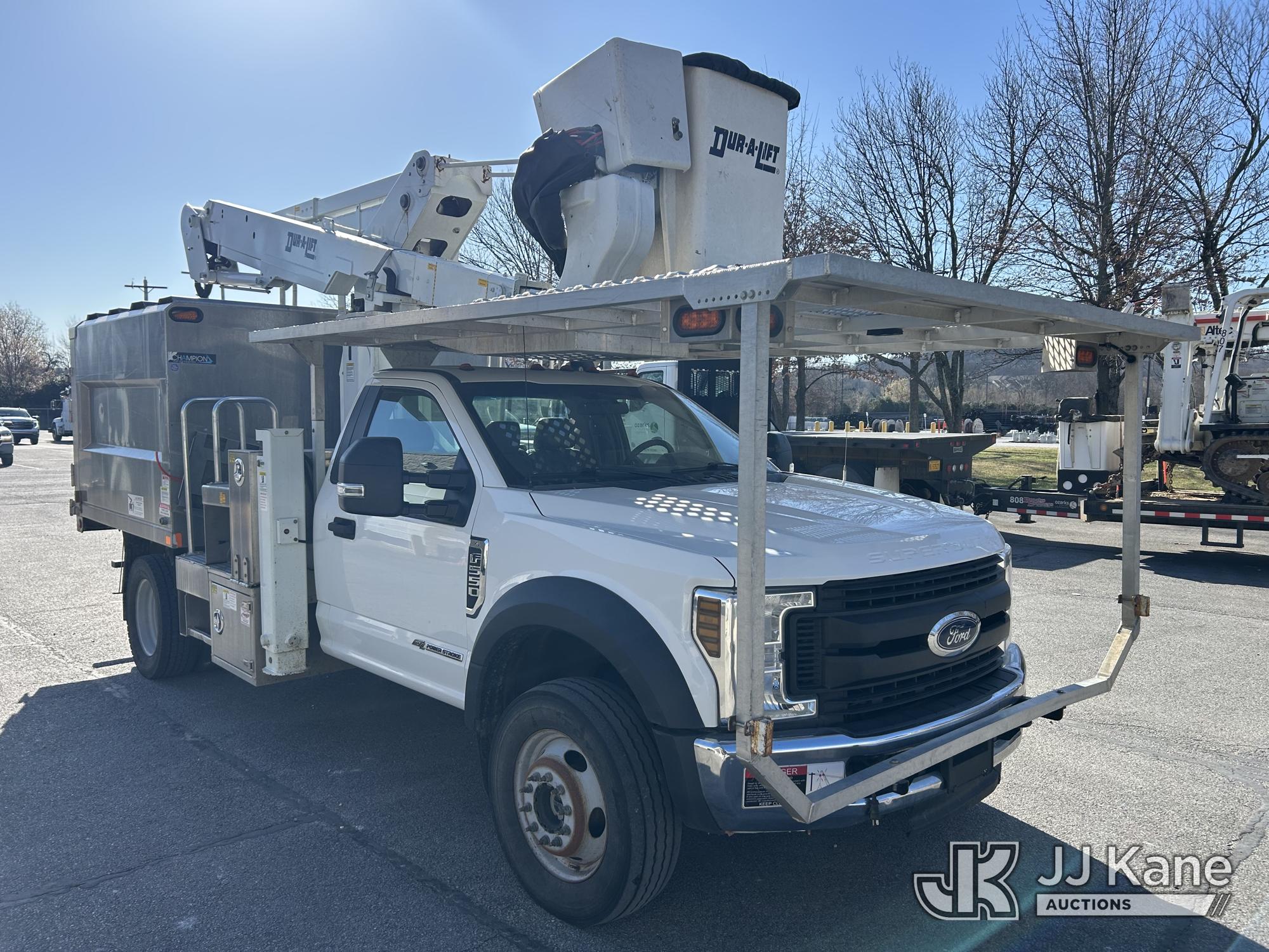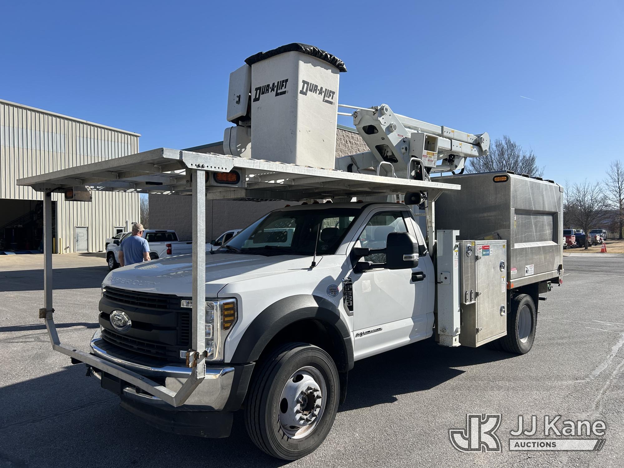 Duralift DTAX-45 FP, 50 ft, Articulating & Telescopic Bucket Truck s/n A10996, with single man bucket, mounted behind cab on 2019 Ford F-550 Chipper Dump Truck, 6.7L diesel, 4WD, Auto, A/C, (81,279 miles) Arkansas Cooperative Owned & Operated (Runs, Moves & Upper Operates) (Check Engine Light On) This is a Titled Item*