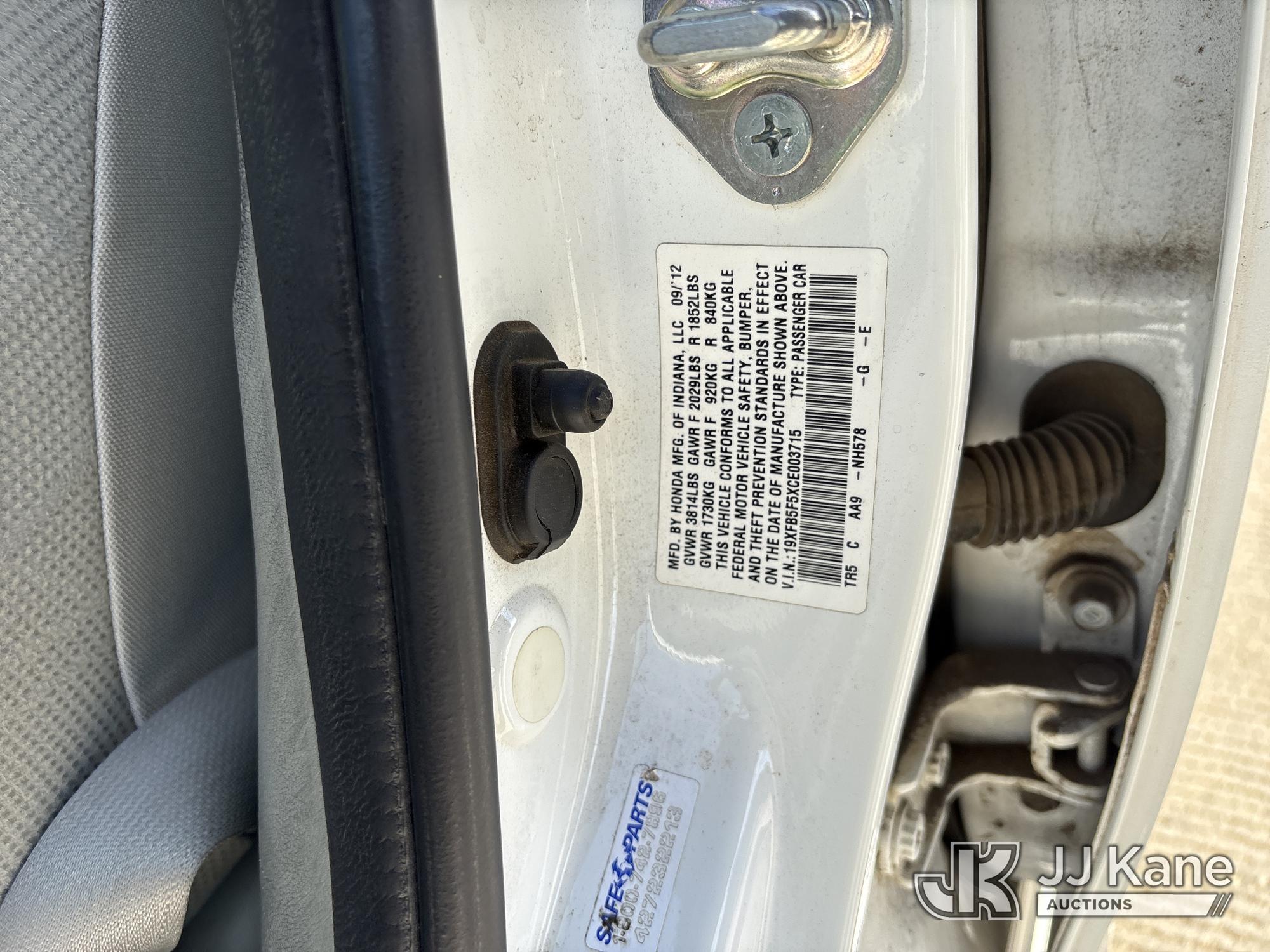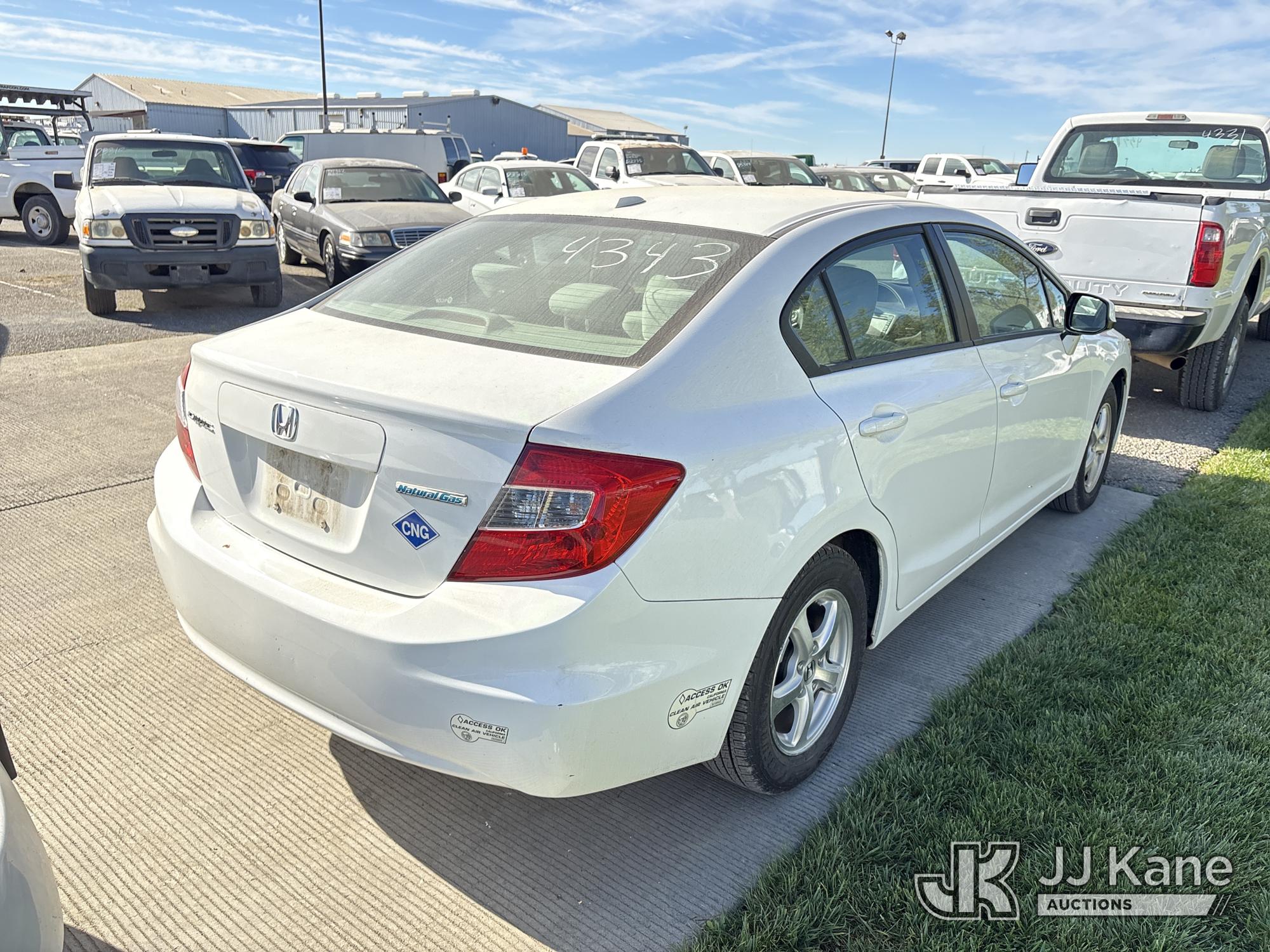 2012 Honda Civic CNG Sedan 5-Speed AT 4-Door Sedan, s/n 19XFB5F5XCE003715, 1.8L L4 SOHC 16V FWD, Dual Fuel (CNG & Gas), 5-Speed Automatic, A/C, (44,964 miles) (Runs & Moves) This is a Titled Item*