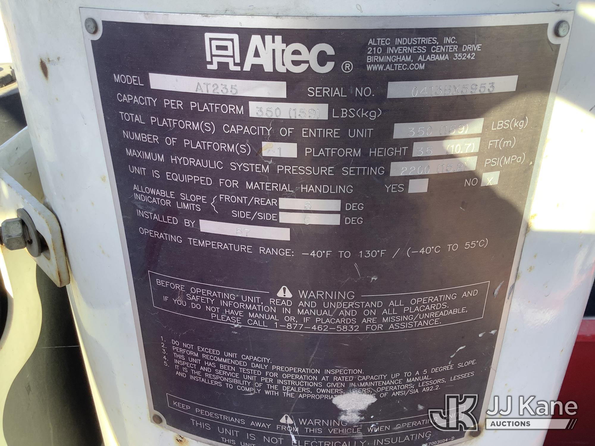 Altec AT235, 35 ft, Articulating & Telescopic Non-Insulated Bucket Truck s/n 0413BX5953, with single man bucket, mounted behind cab on 2013 RAM 4500 Service Truck, 6.7L diesel, RWD, Auto, A/C, (246,803 miles) (Runs, Moves & Upper Operates) (Check Engine Light) This is a Titled Item*