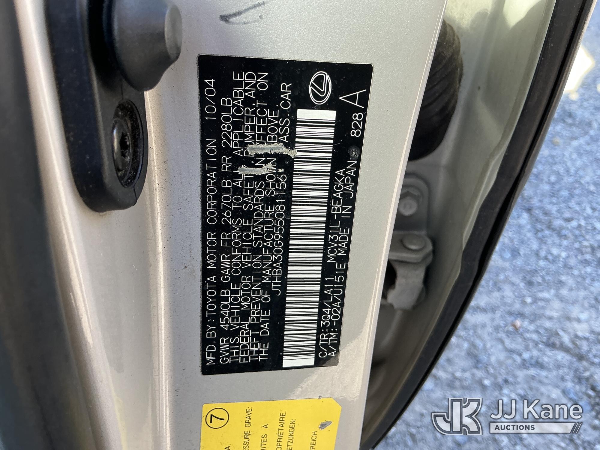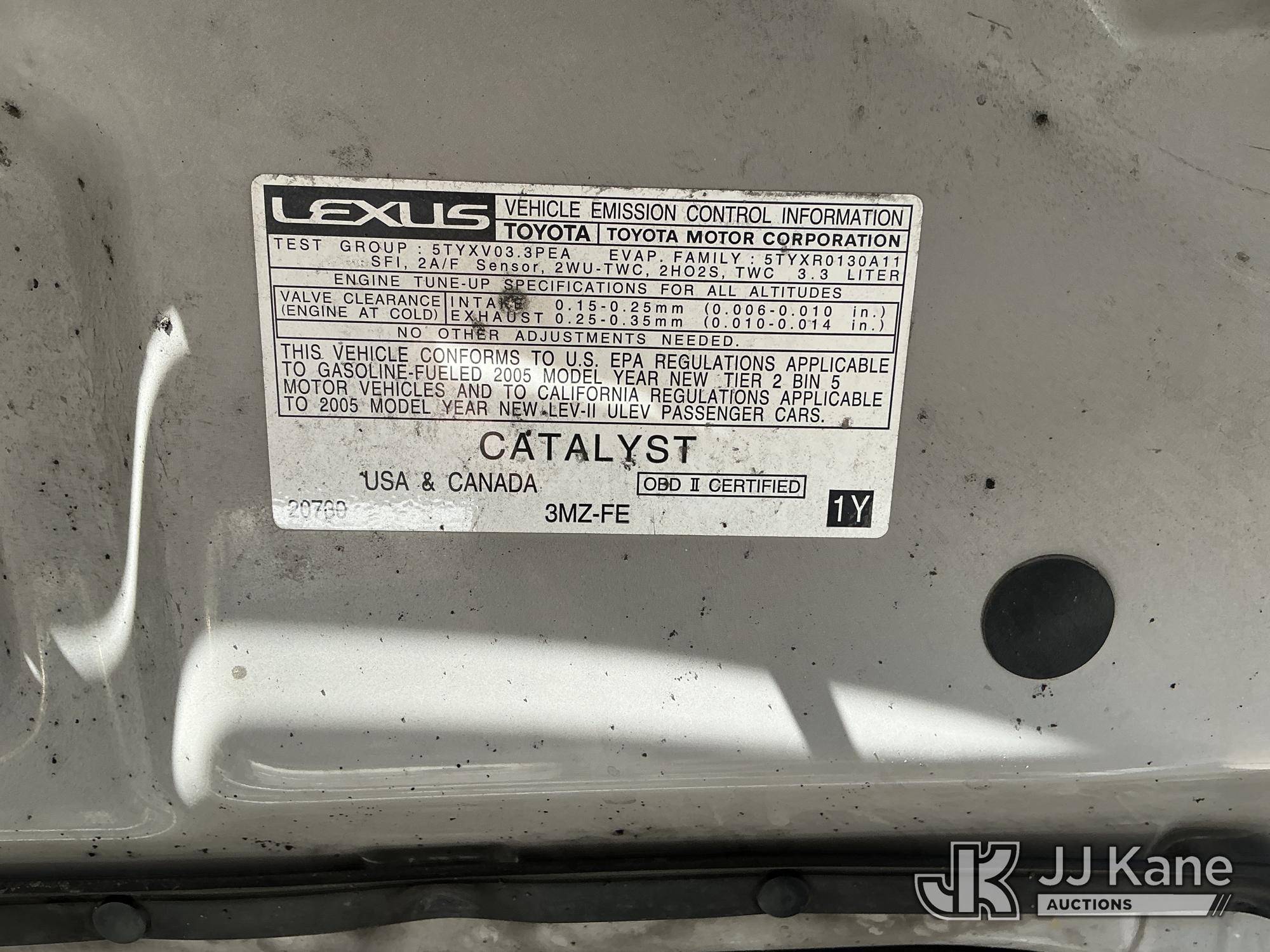 2005 Lexus ES 330 4-Door Sedan, 3.3L V6 DOHC 24V gas, FWD, 5-Speed Automatic, A/C, True Mileage Unknown (Not Running, Condition Unknown) (No Keys, Paint Damage) (Seller States: No Keys, Not Running) This is a Titled Item*