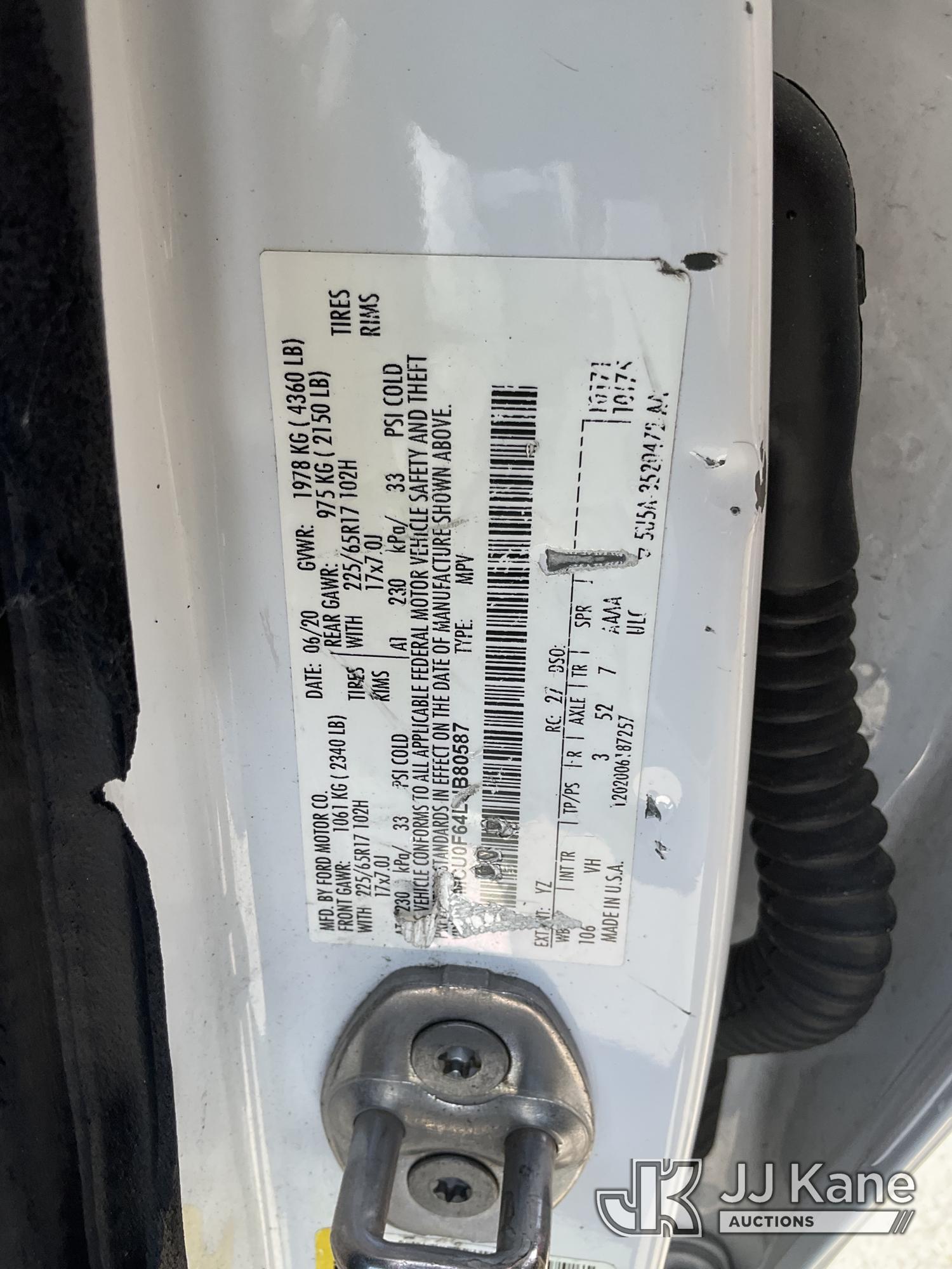 2020 Ford Escape S 4-Door Sport Utility Vehicle, s/n 1FMCU0F64LUB80587, 1.5L L3 FWD, GAS, 8-Speed Automatic, A/C, (125,342 miles) (Runs & Moves, Brake System Issue, No Brakes) (Bidding Restricted to Licensed Vehicle Dealers Only), This is a Titled Item*