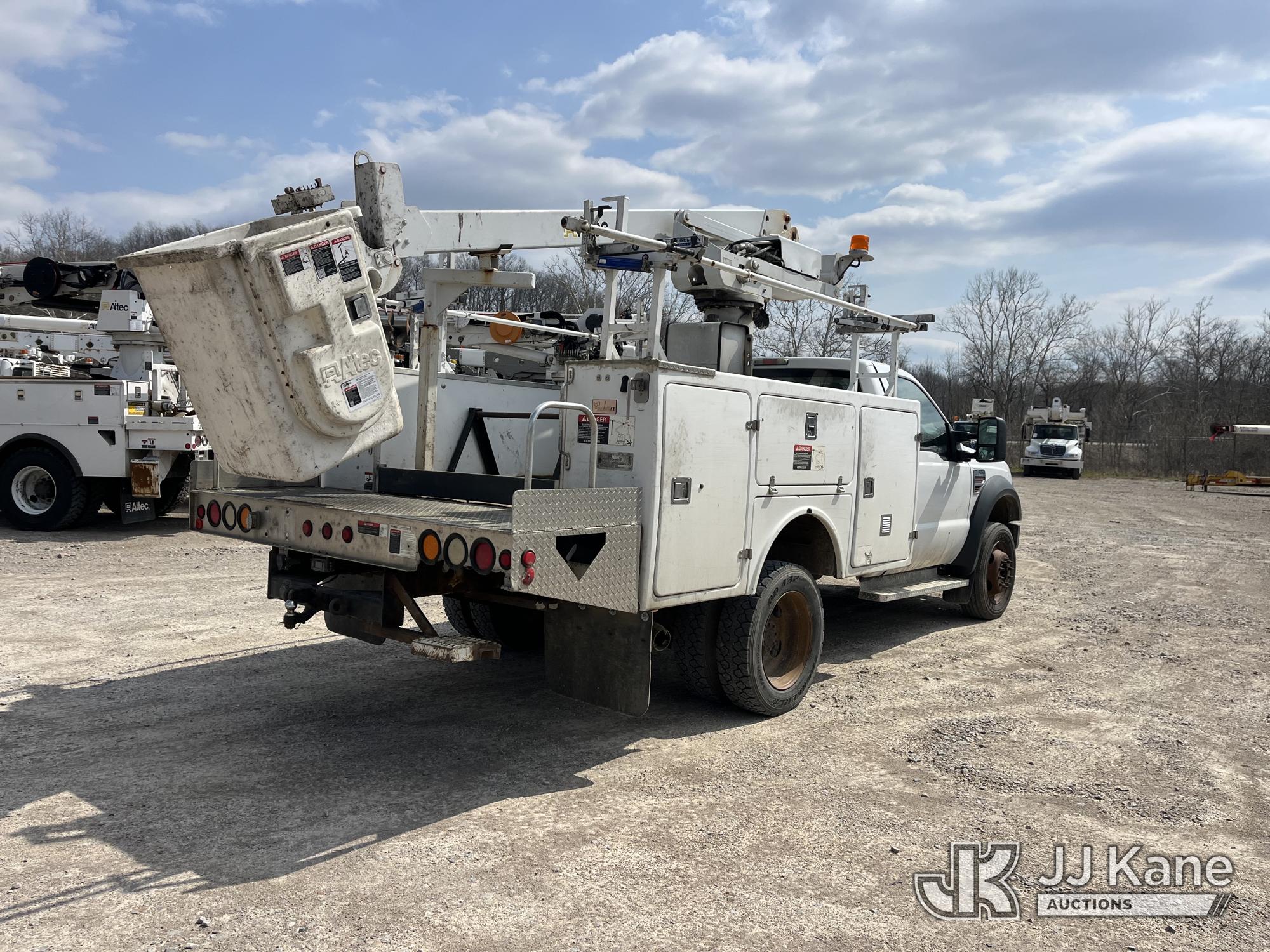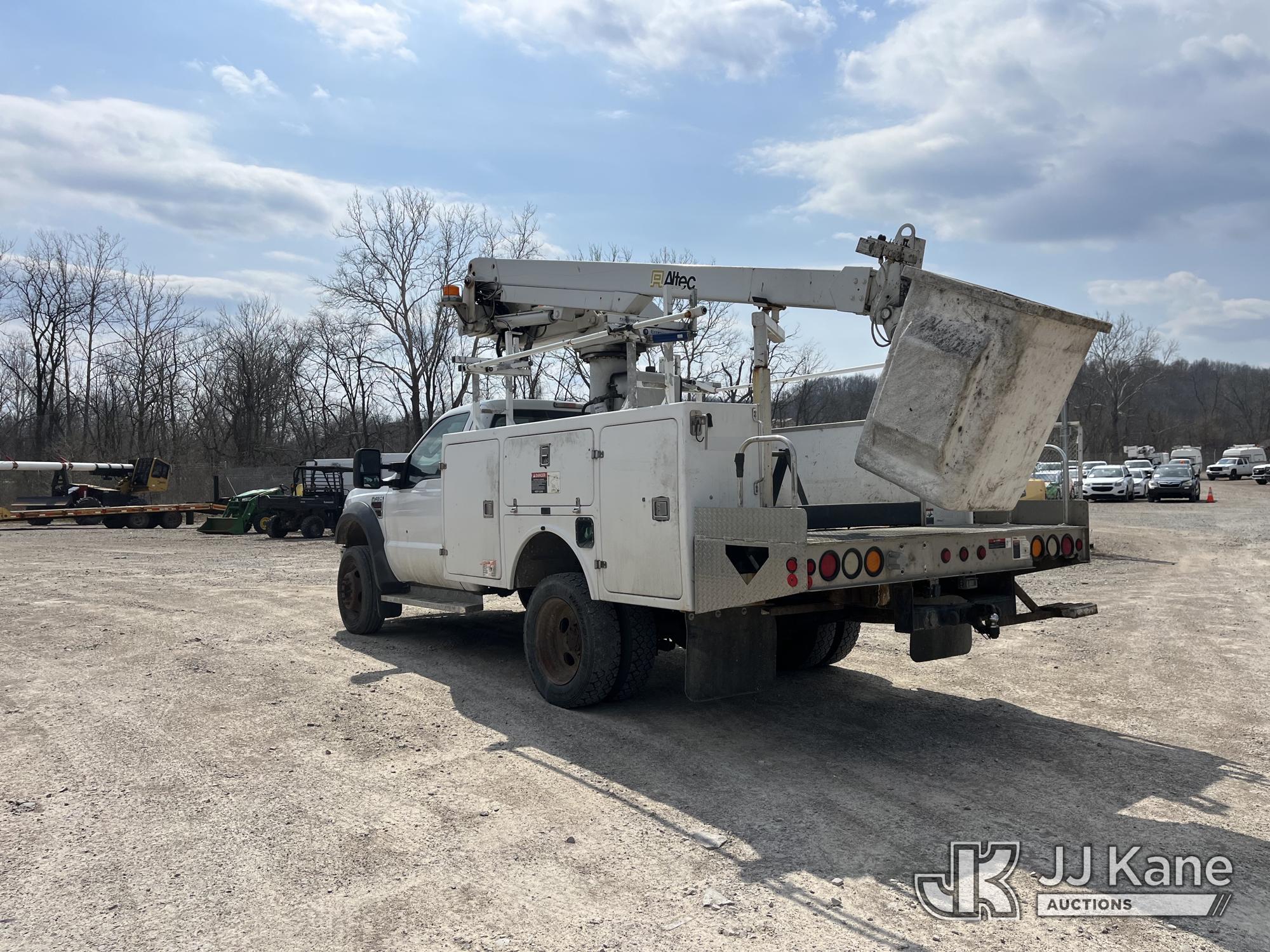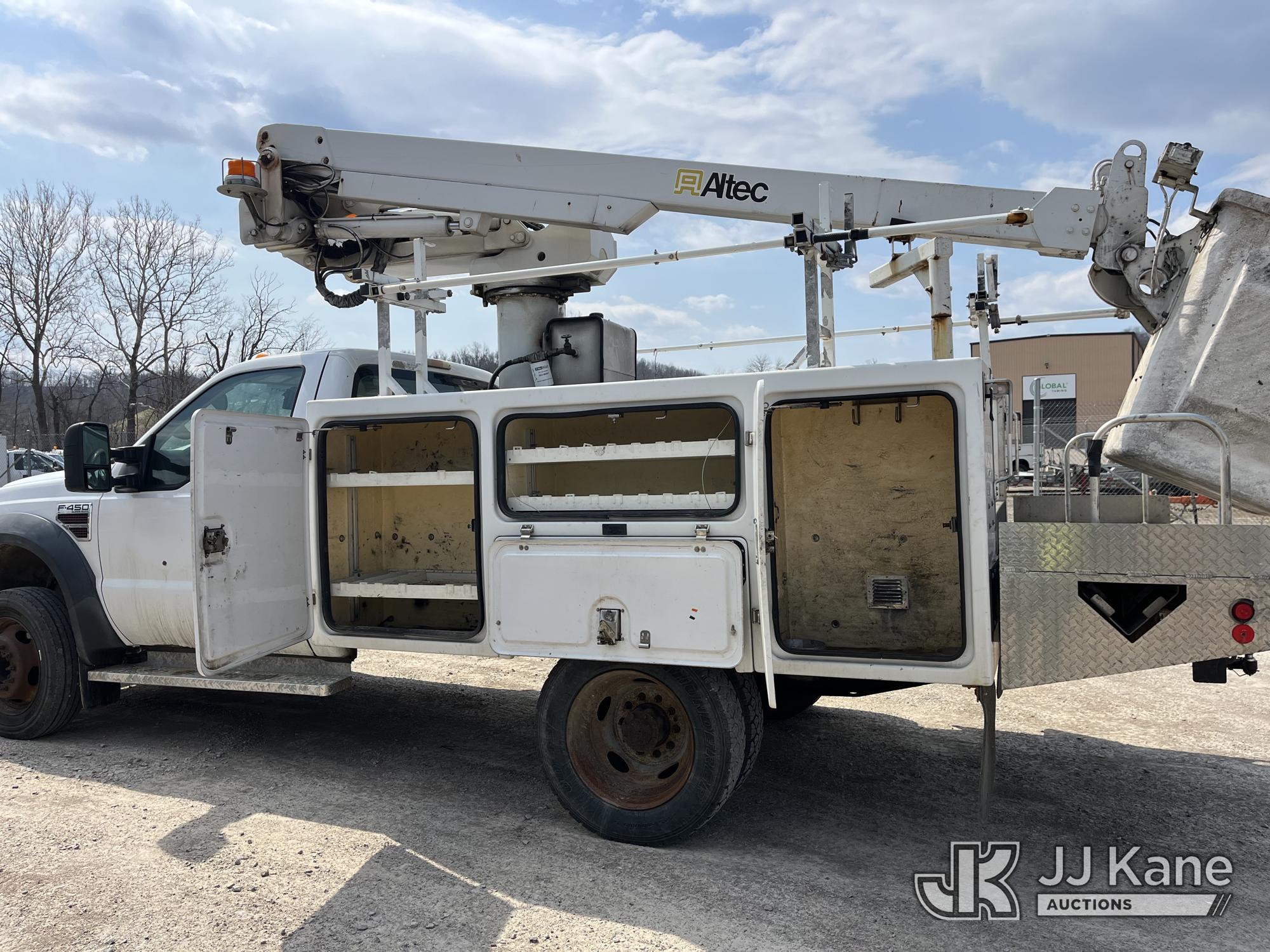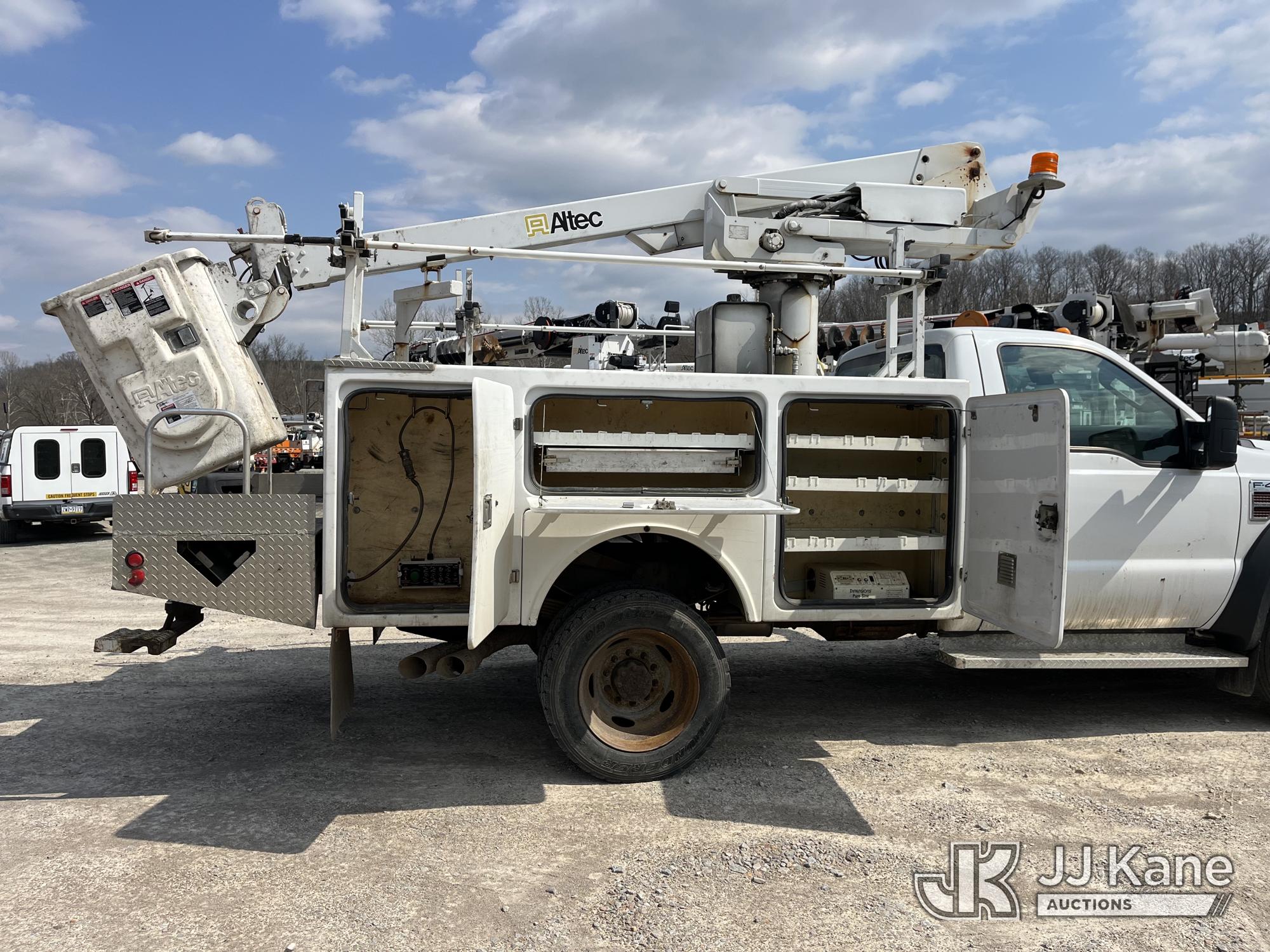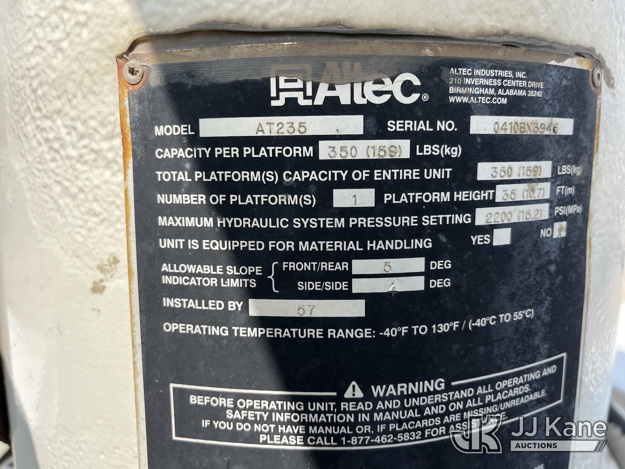 Altec AT235, 40 ft, Articulating & Telescopic Non-Insulated Bucket Truck s/n 0410BX3945, with single-man bucket, mounted behind cab on 2010 Ford F450 Service Truck, 6.4L V8 Turbo Diesel, RWD, Automatic, A/C, (144,760 miles) (Runs Rough & Moves, Jump To Start, Engine Noise, Stalls, Upper Unit Untested, Condition Unknown, Seller States: Needs New Engine & Possibly Turbo) This is a Titled Item*