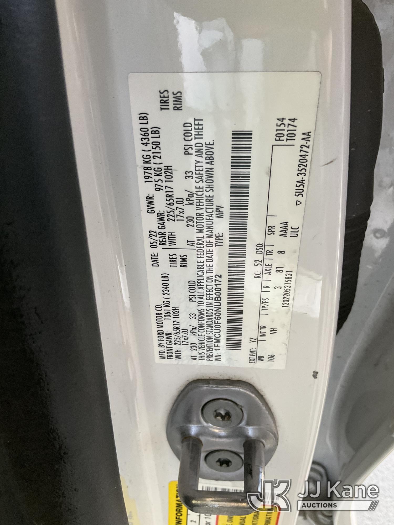 2022 Ford Escape 4-Door Sport Utility Vehicle, 4-cyl gas, 8-Speed Automatic, A/C, (107,930 miles) (Runs & Moves) (Has Open Recalls With Remedies Not Yet Available) (Bidding Restricted to Licensed Vehicle Dealers Only), This is a Titled Item*
