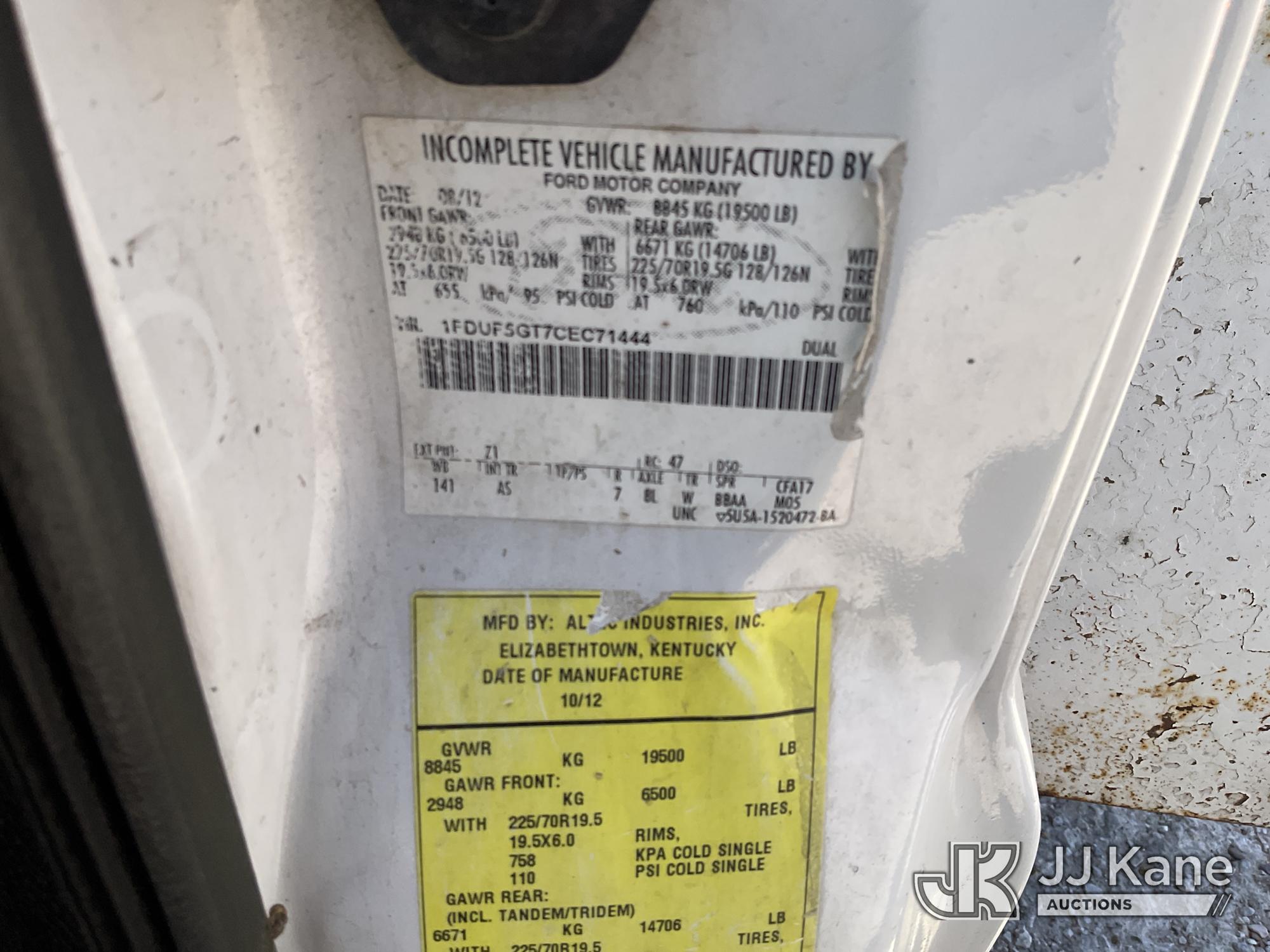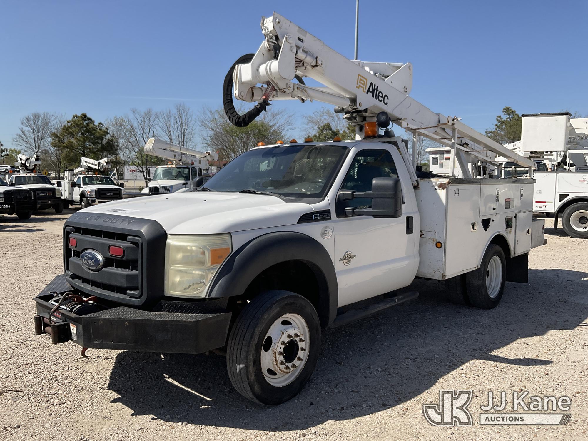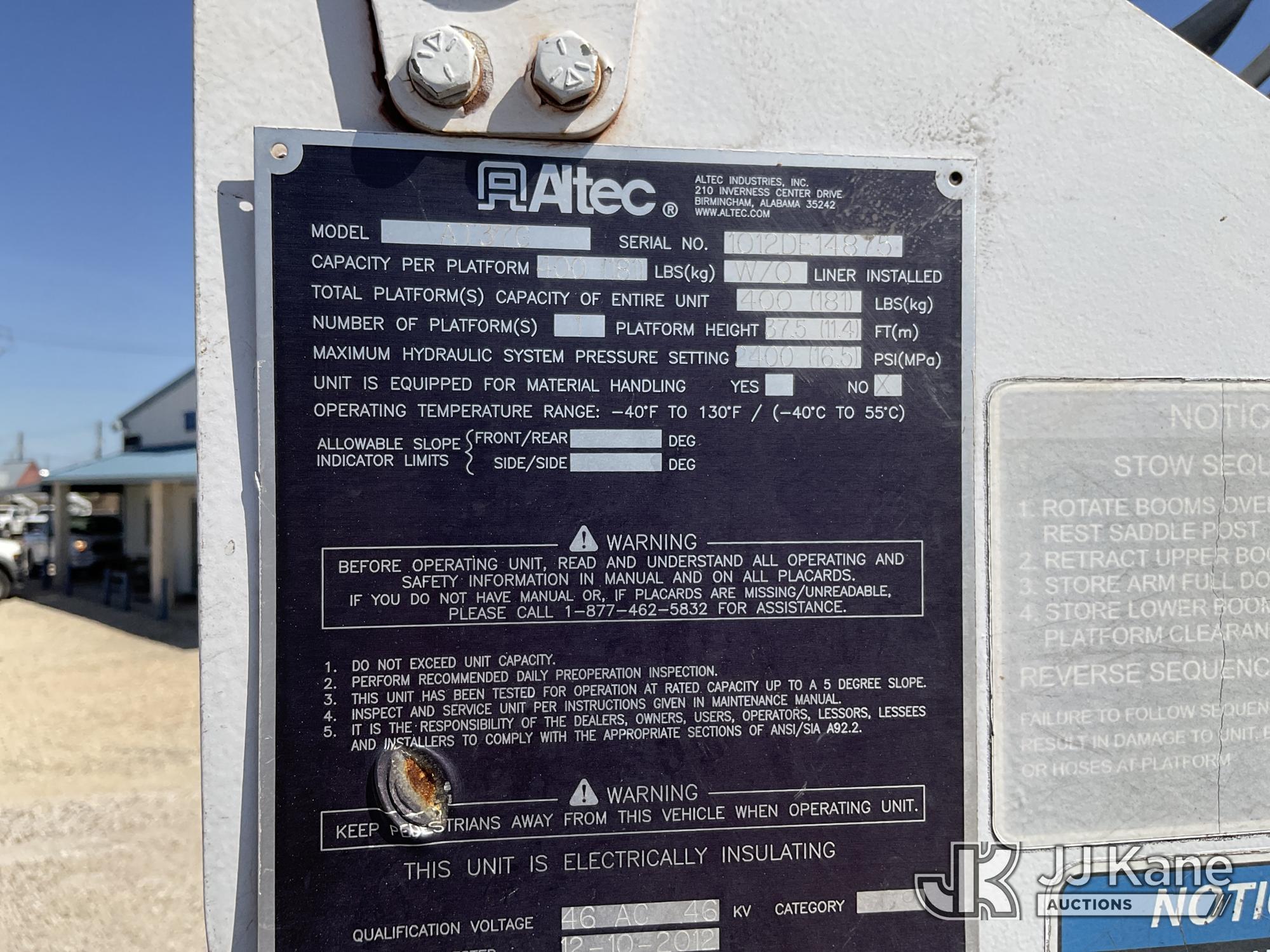 Altec AT37G, 42 ft, Articulating & Telescopic Bucket Truck s/n 1012DE14875, with Single-man bucket, mounted behind cab on 2012 Ford F-550 Service Truck, 6.7L Diesel Auto, A/C, with Front Bumper Winch, (224,120 miles) (Runs, Moves & Upper Operates) (Reads 3,256 hours) This is a Titled Item*