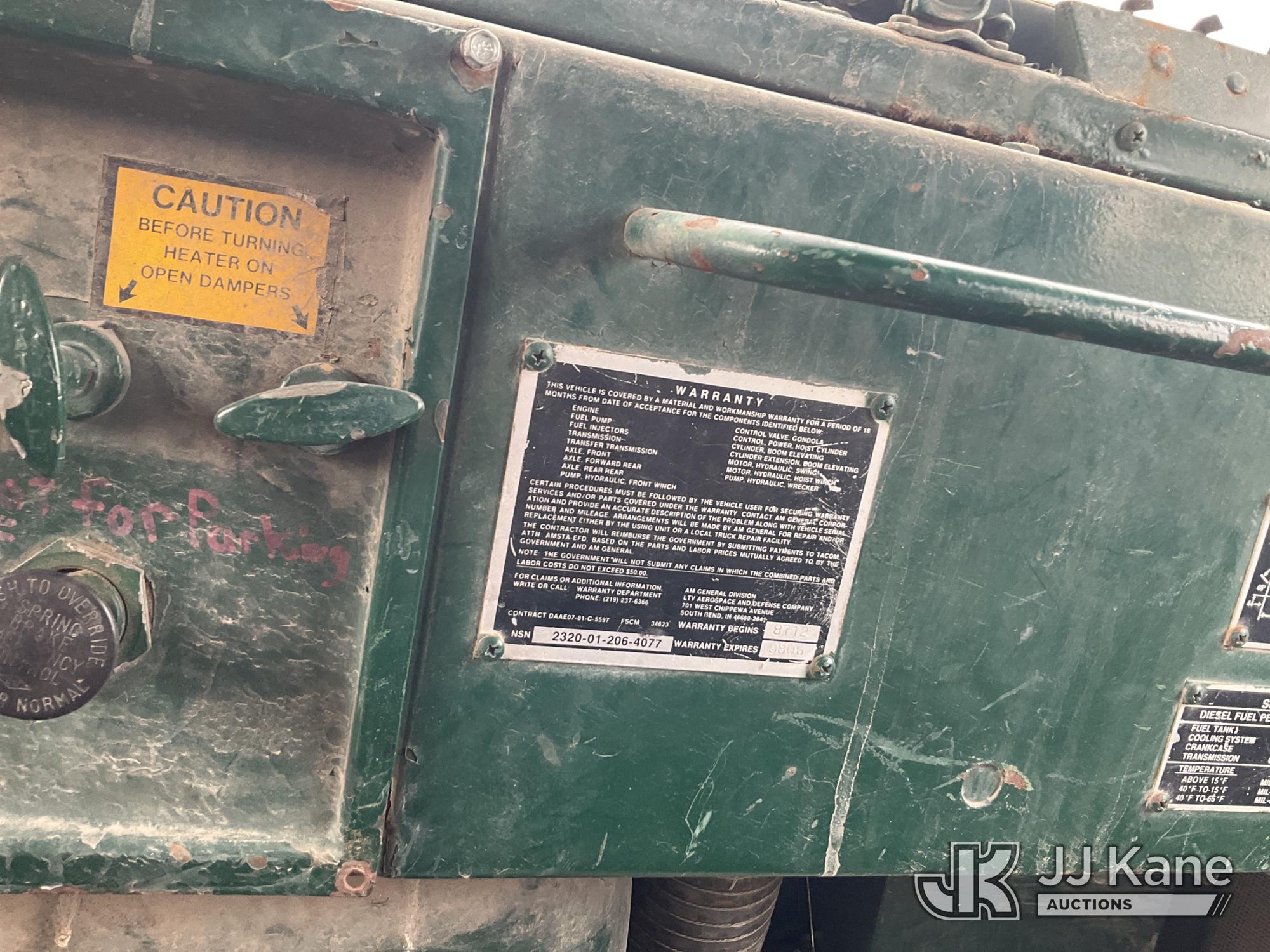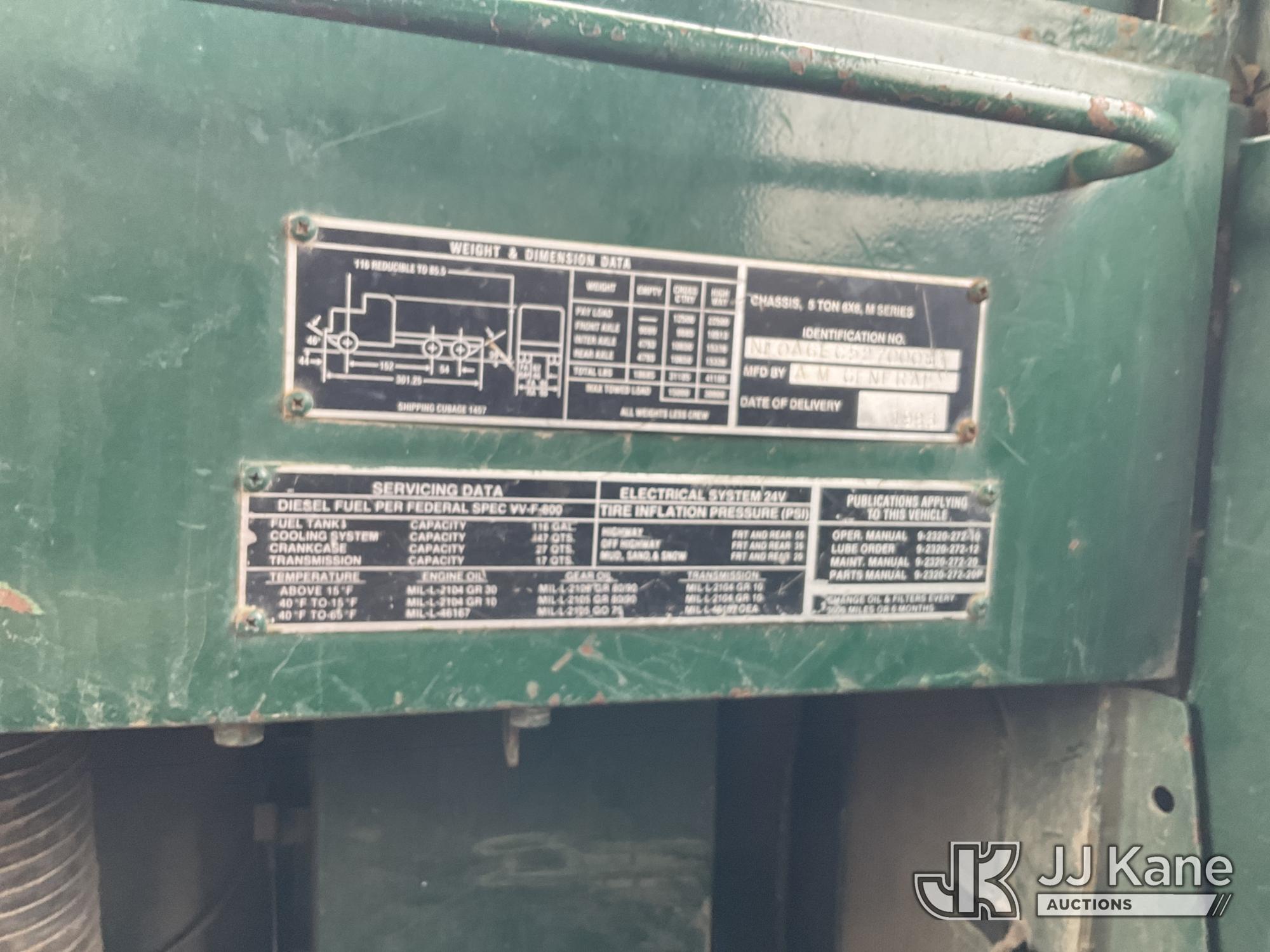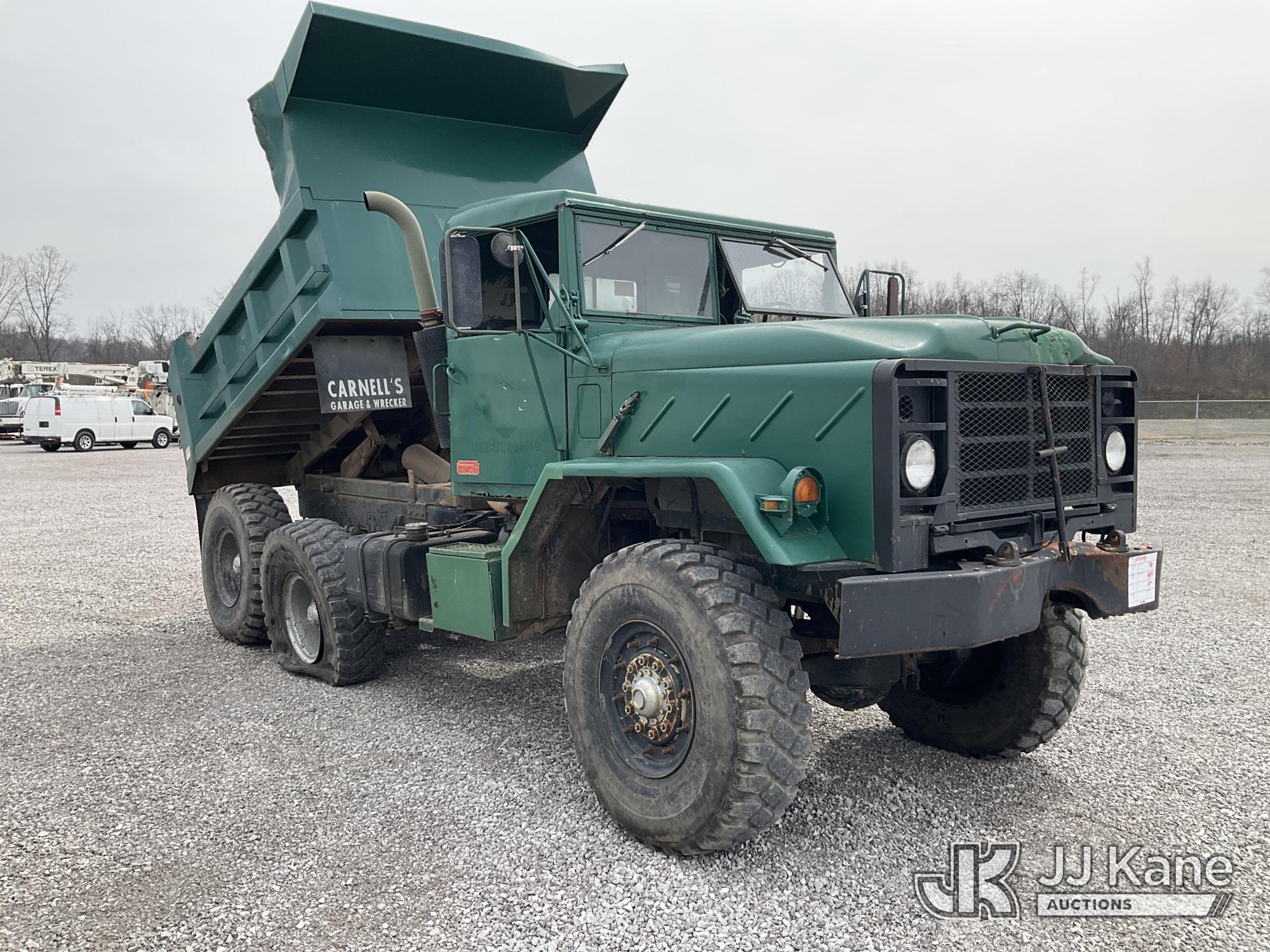 1983 AM General 6x6 Dump Truck, Cummins diesel, Dailmer Chrysler G240-16 EAS Auto S, with 5-7 yard body, (Exempt from Odometer Disclosure - Reads 49,881 miles) (Runs, Moves & Dump Operates) (Rear Left Tire Flat, Rust Damage) This is a Titled Item*