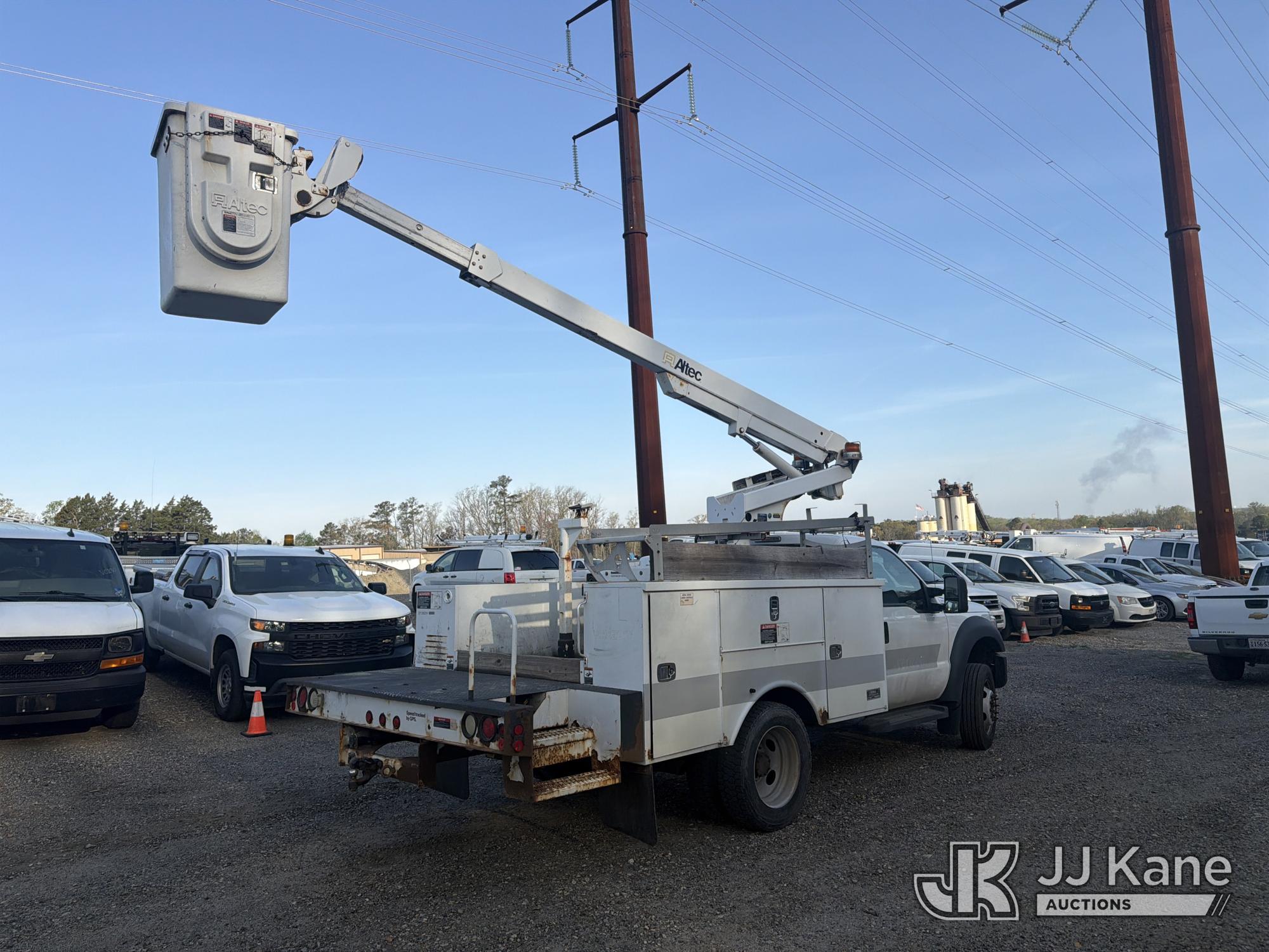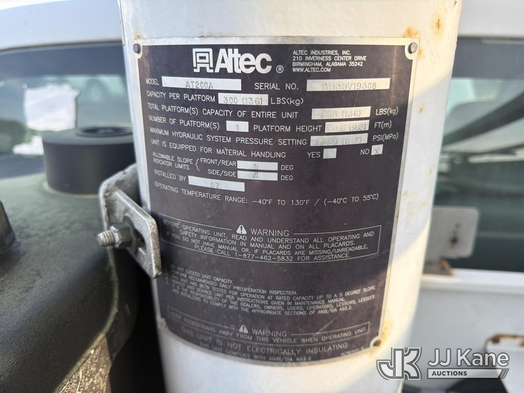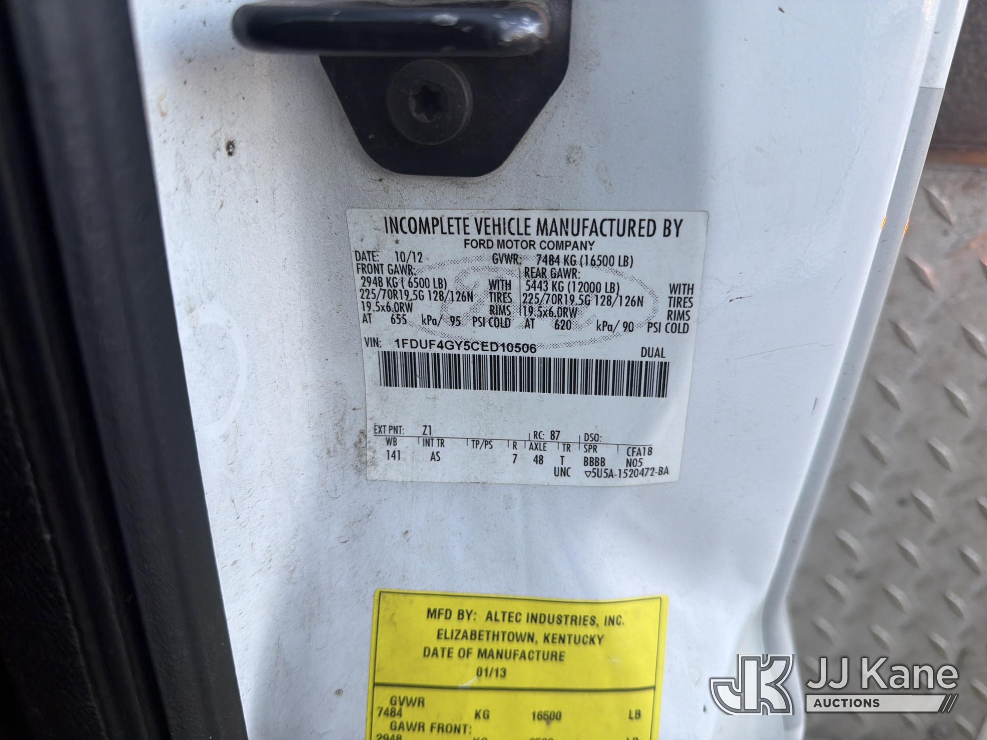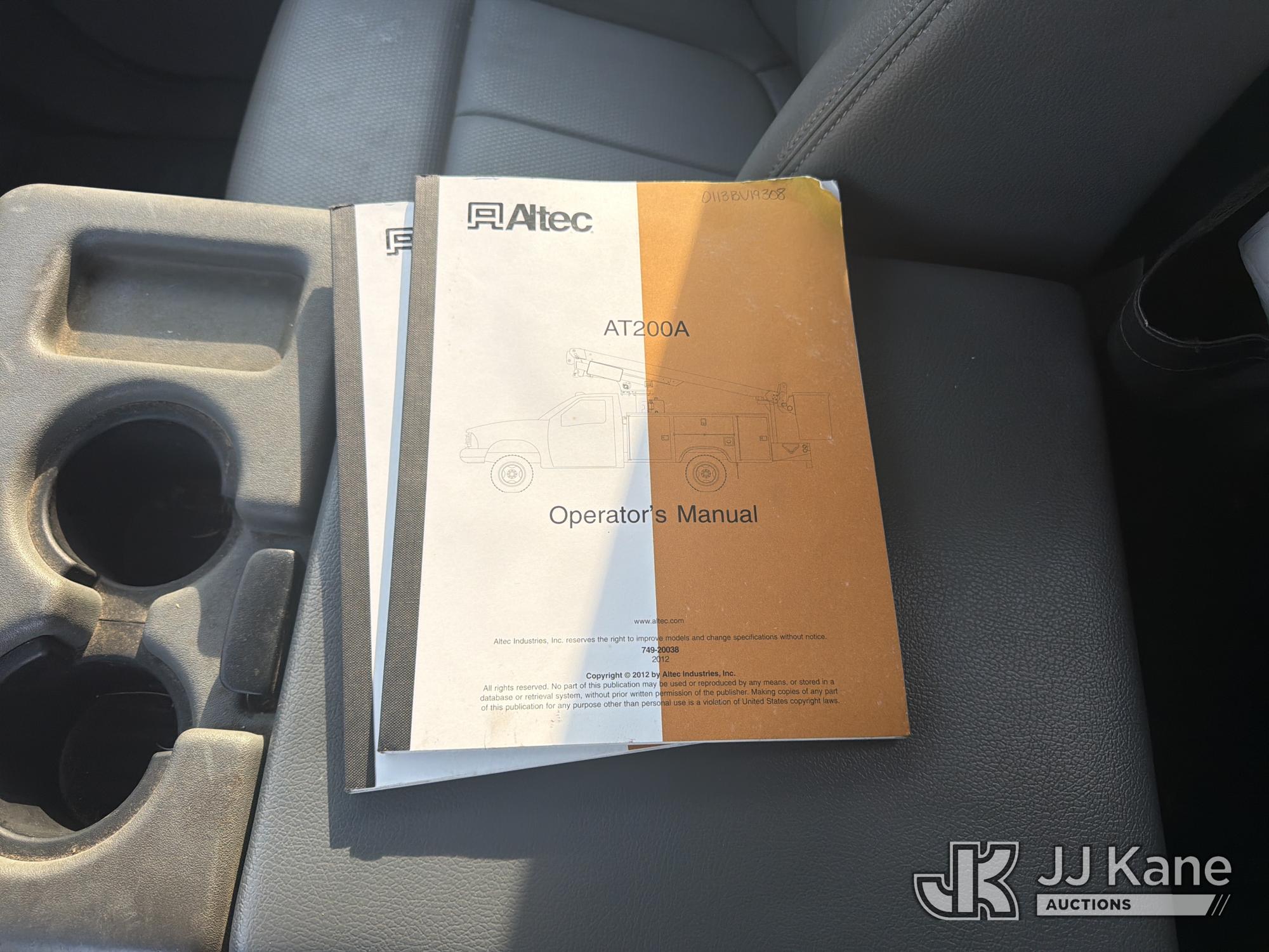Altec AT200-A, 35 ft, Telescopic Non-Insulated Bucket Truck s/n 0113BV19308, with single-man bucket, mounted behind cab on 2012 Ford F450 Service Truck, 10-cyl, Gas, Auto, A/C, with Onan generator, (171,384 miles) (Runs, Moves & Upper Operates) (Cracked Windshield) This is a Titled Item*