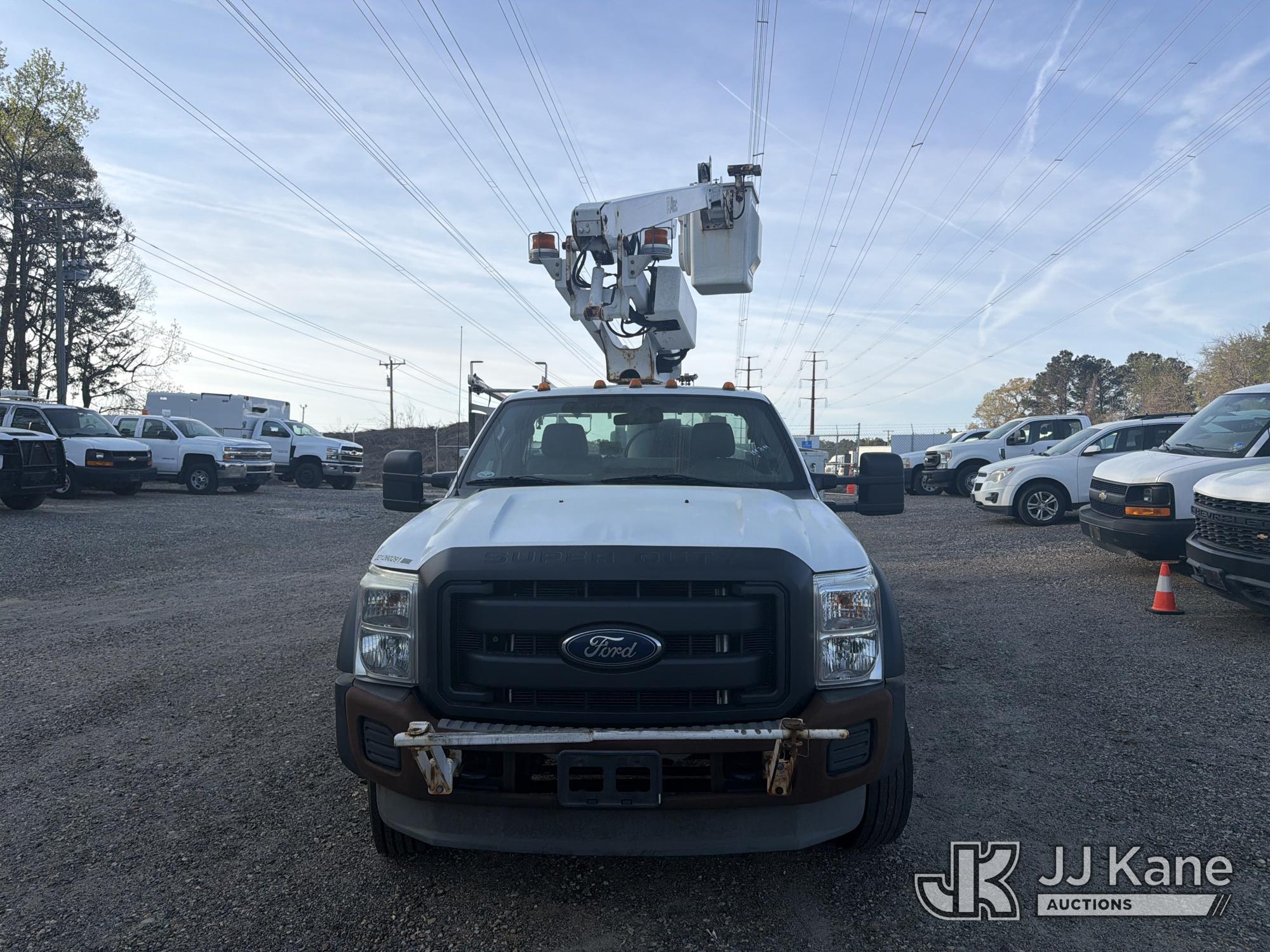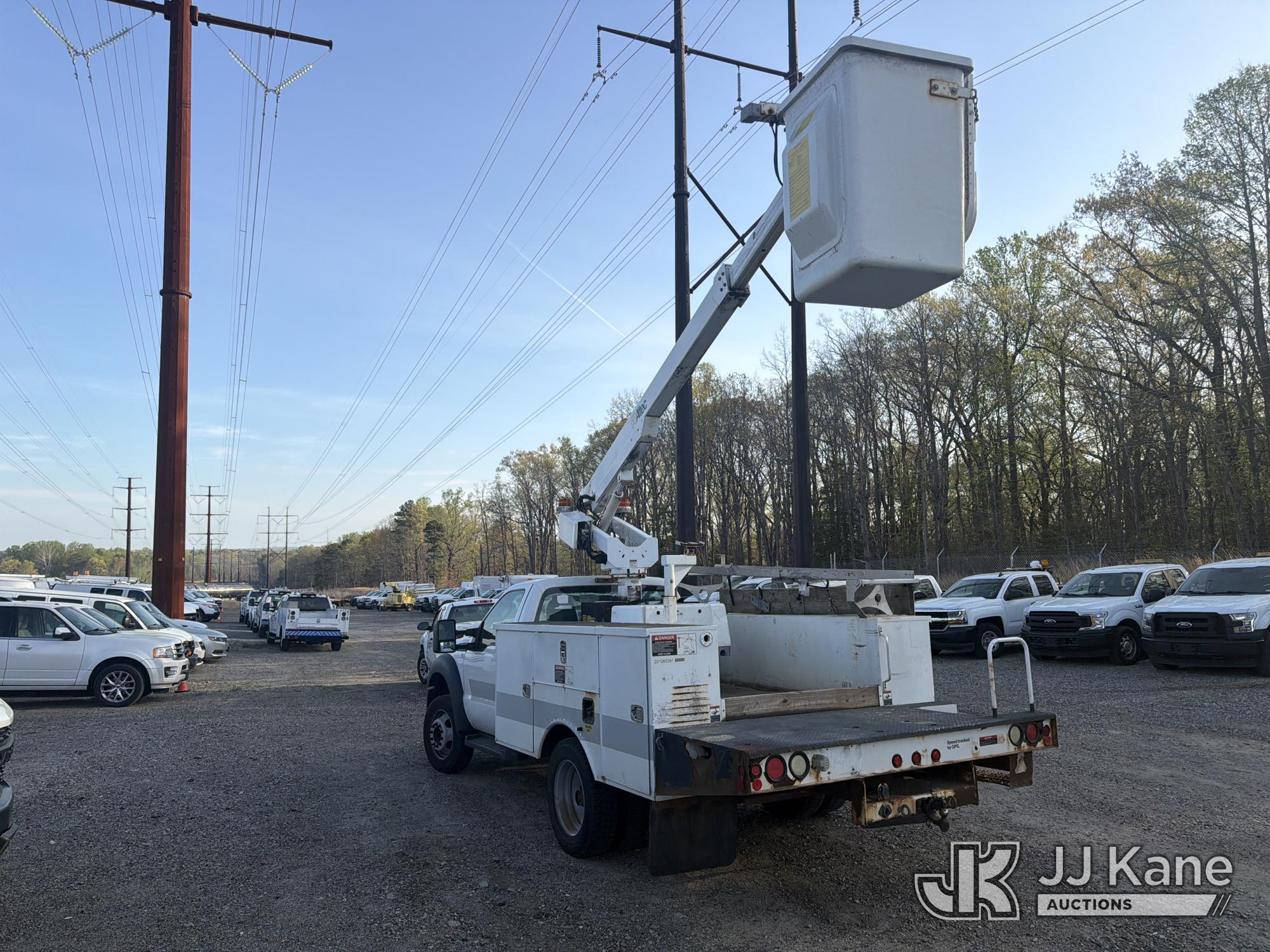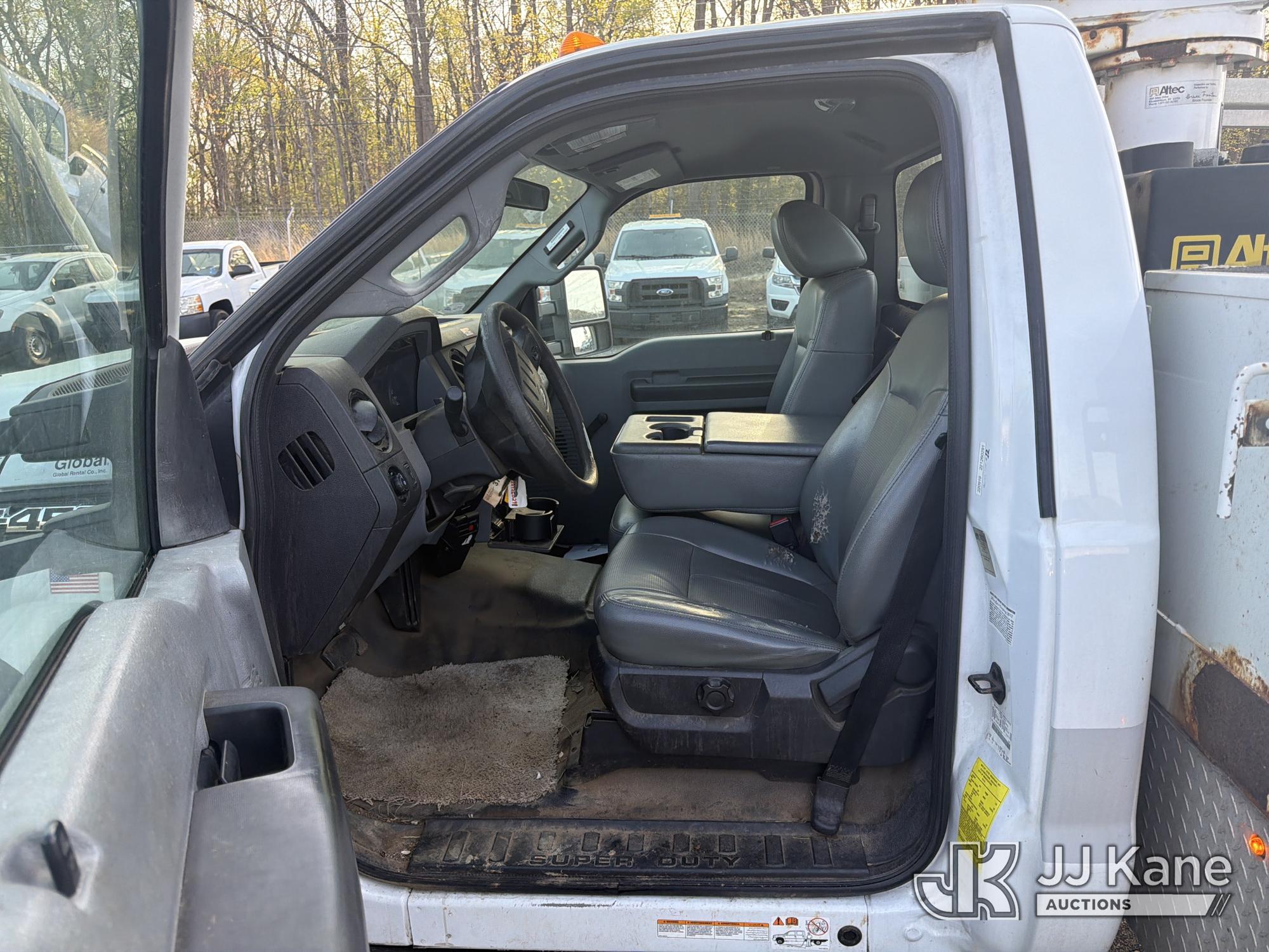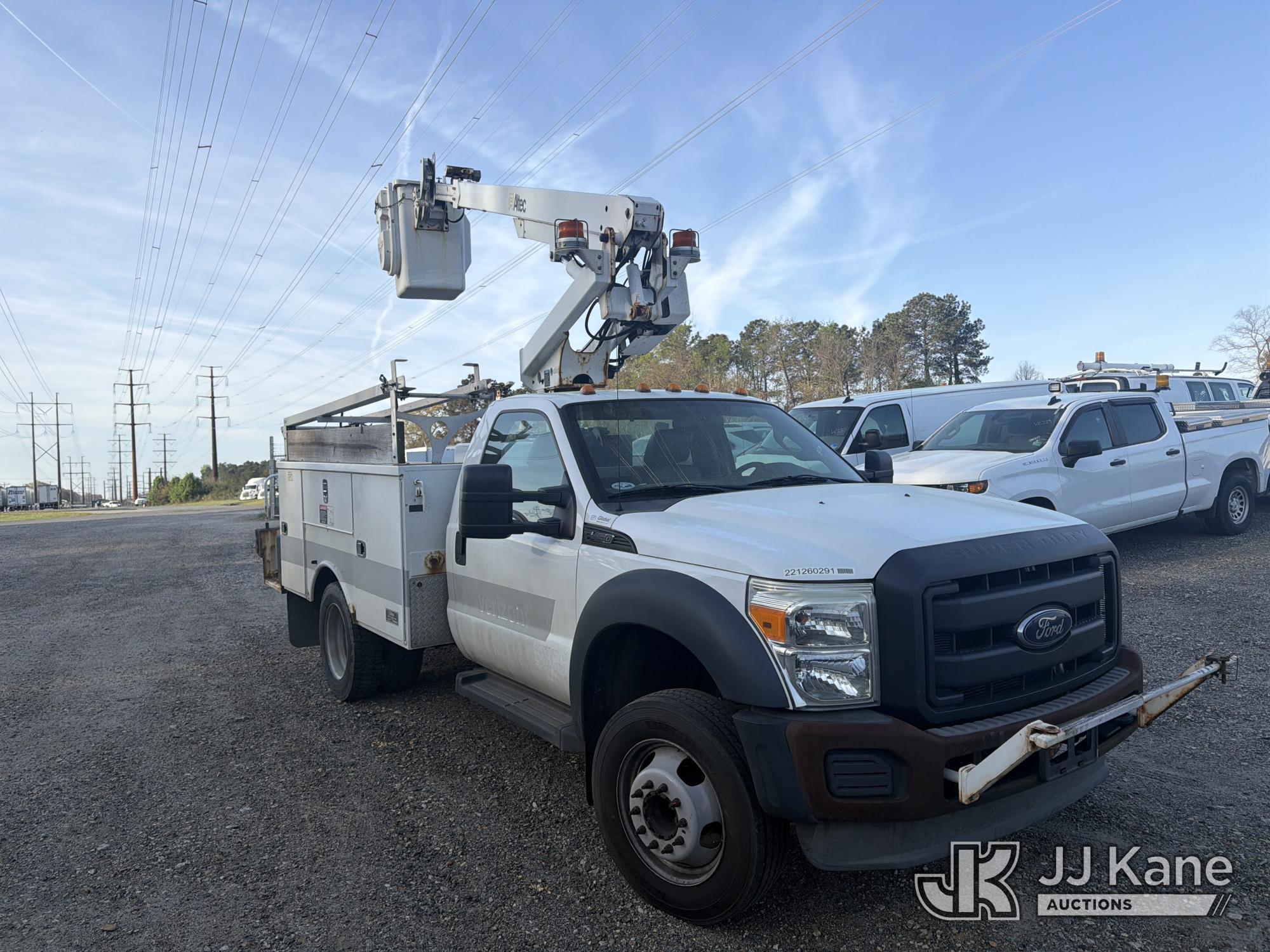 Altec AT200-A, 35 ft, Telescopic Non-Insulated Bucket Truck s/n 0113BV19308, with single-man bucket, mounted behind cab on 2012 Ford F450 Service Truck, 10-cyl, Gas, Auto, A/C, with Onan generator, (171,384 miles) (Runs, Moves & Upper Operates) (Cracked Windshield) This is a Titled Item*