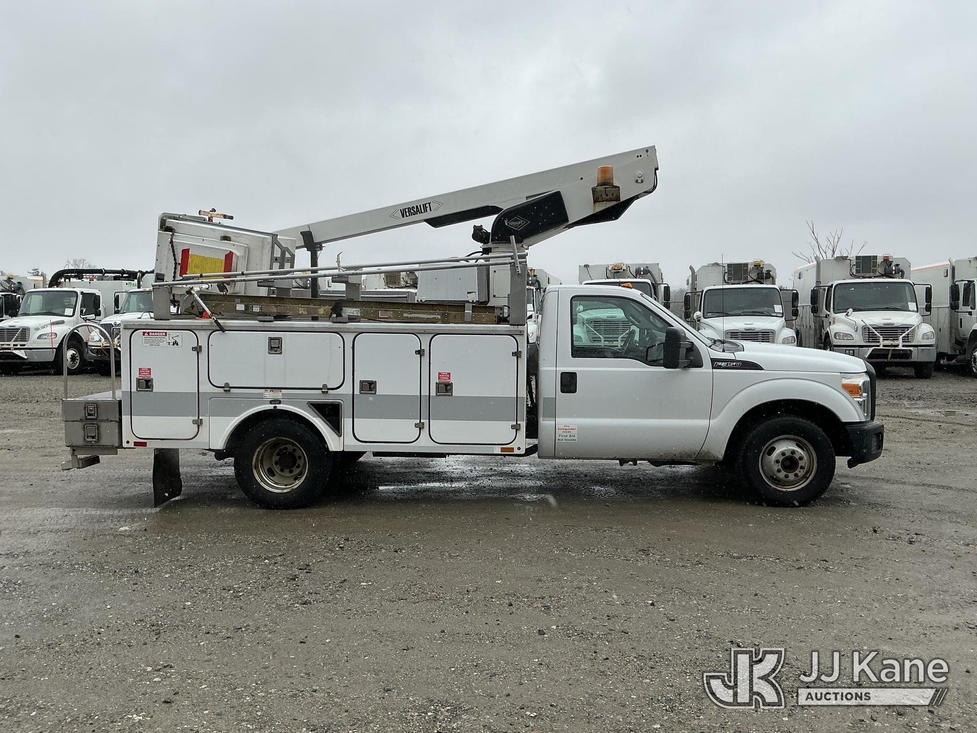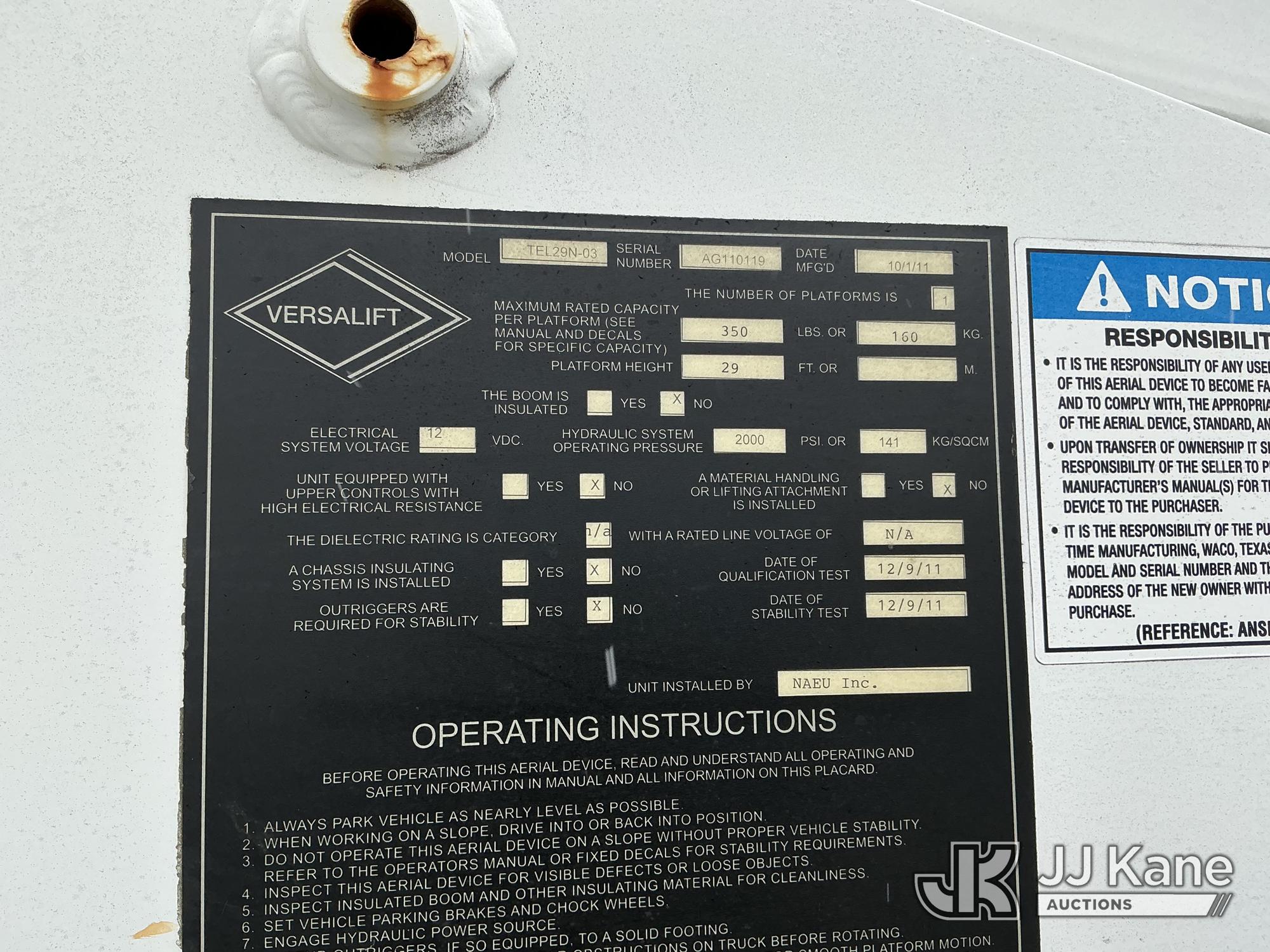 Versalift TEL29N03, 34 ft, Telescopic Non-Insulated Bucket Truck s/n AG110119, with single-man bucket, mounted behind cab on 2012 Ford F-350 Service Truck, 6.2L V8 RWD, gas, 6-Speed Automatic, A/C, (108,200 miles) (Runs, Moves & Upper Operates) (Low Fuel) This is a Titled Item*