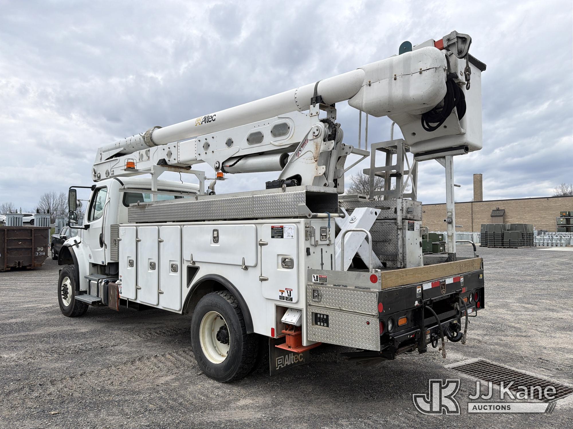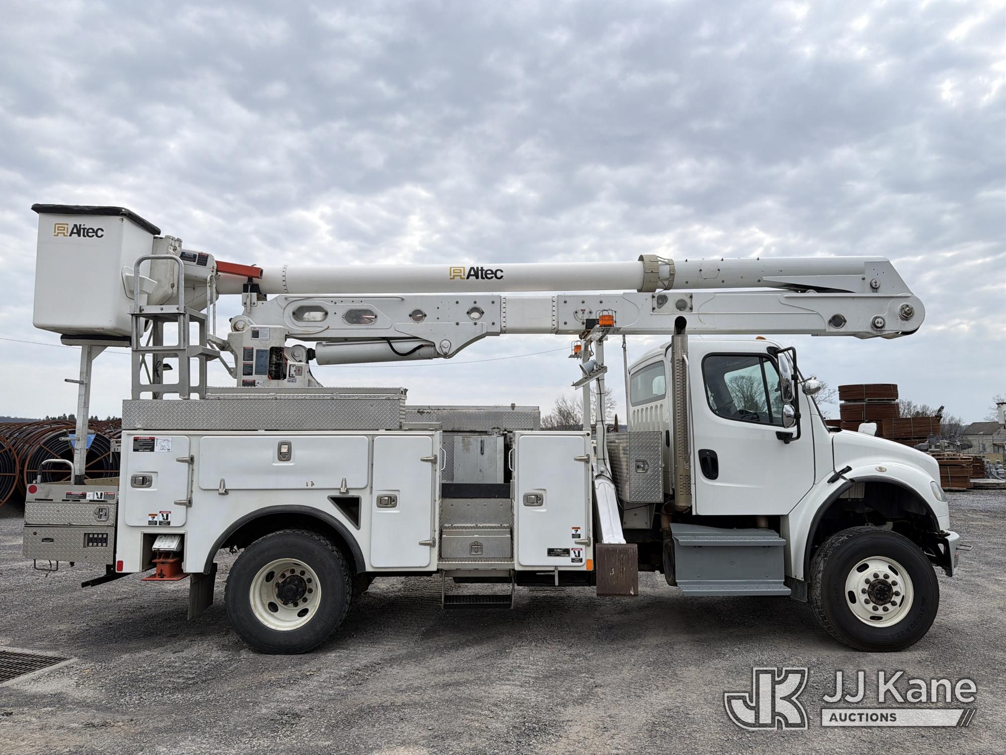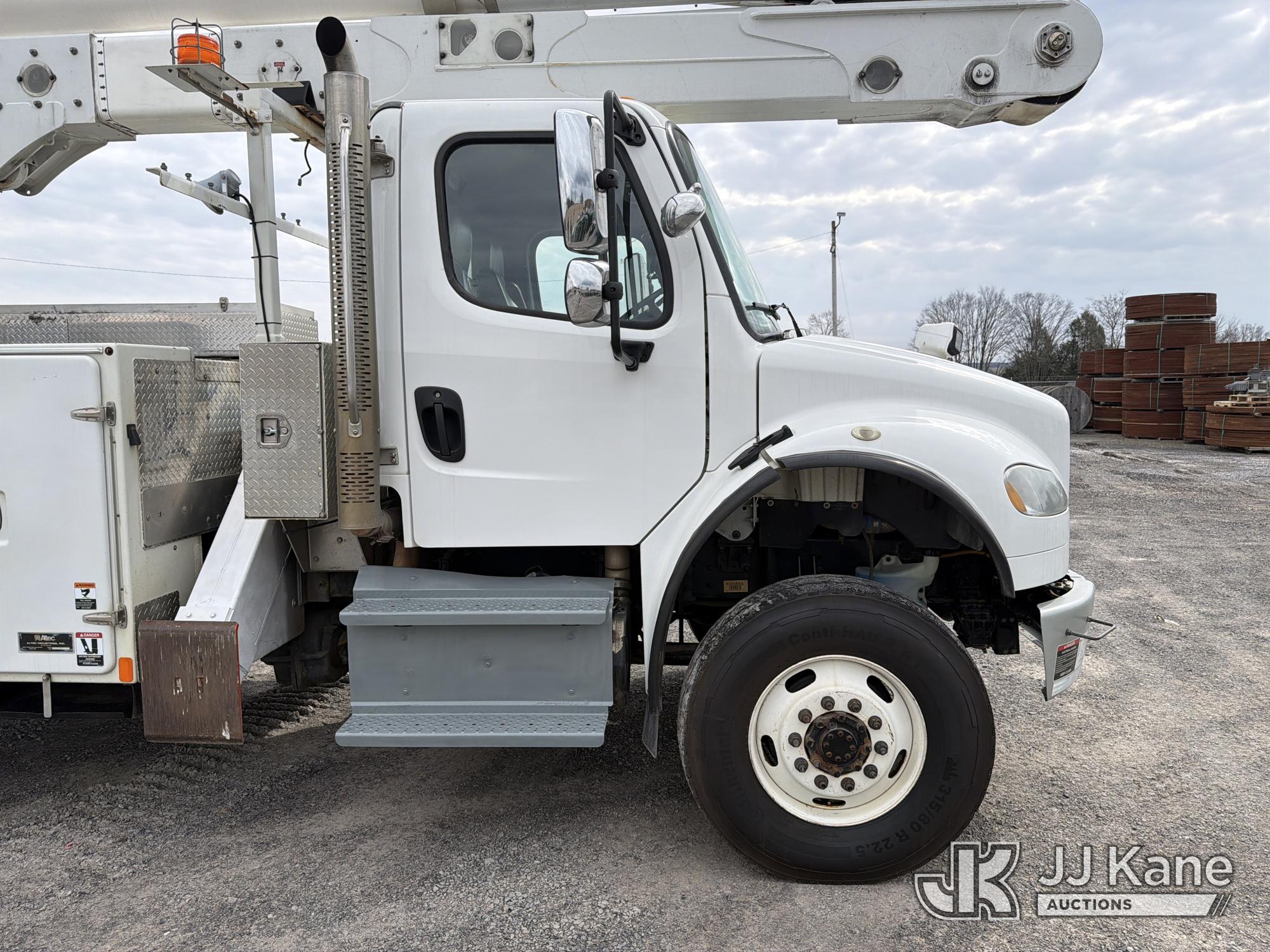 Altec AA55E, 60 ft, Material Handling Bucket Truck s/n 0518FH6175, with single-man bucket & 4 hyd outriggers, rear mounted on 2019 Freightliner M2 4x4 Utility Truck, Cummins L9 9.0L diesel, Auto, A/C, (122,448 miles) (Runs & Moves, Upper Unit Operates) (Reads 7,362 hours) This is a Titled Item*