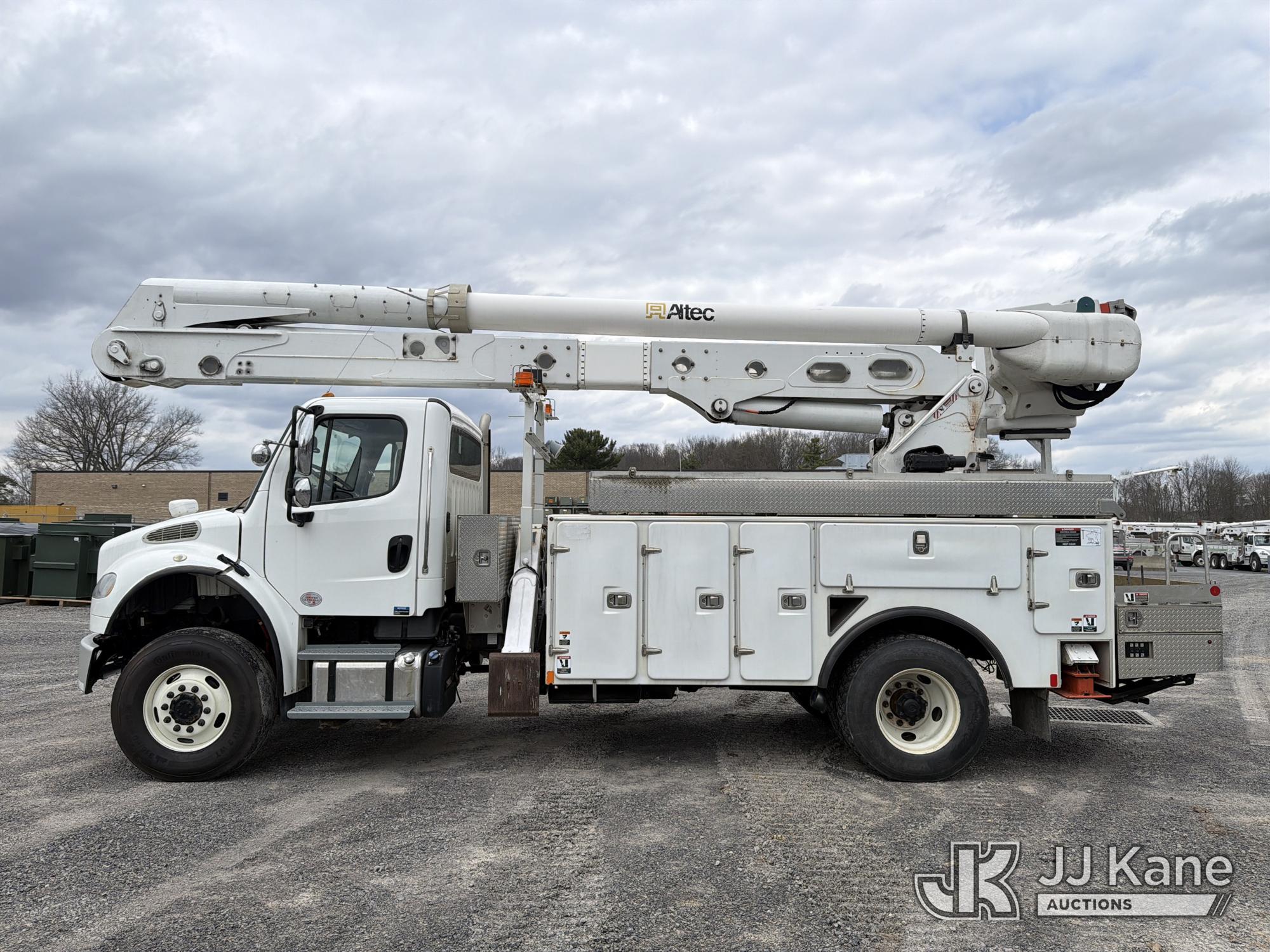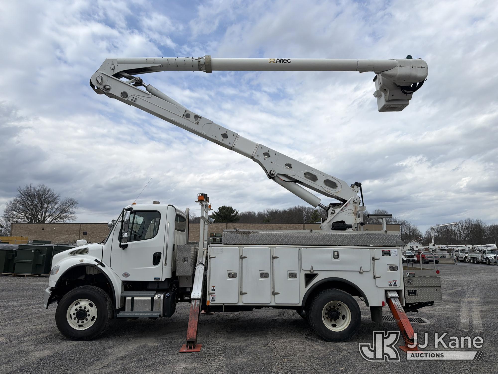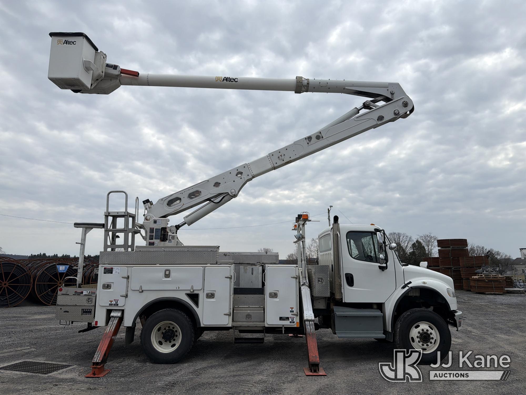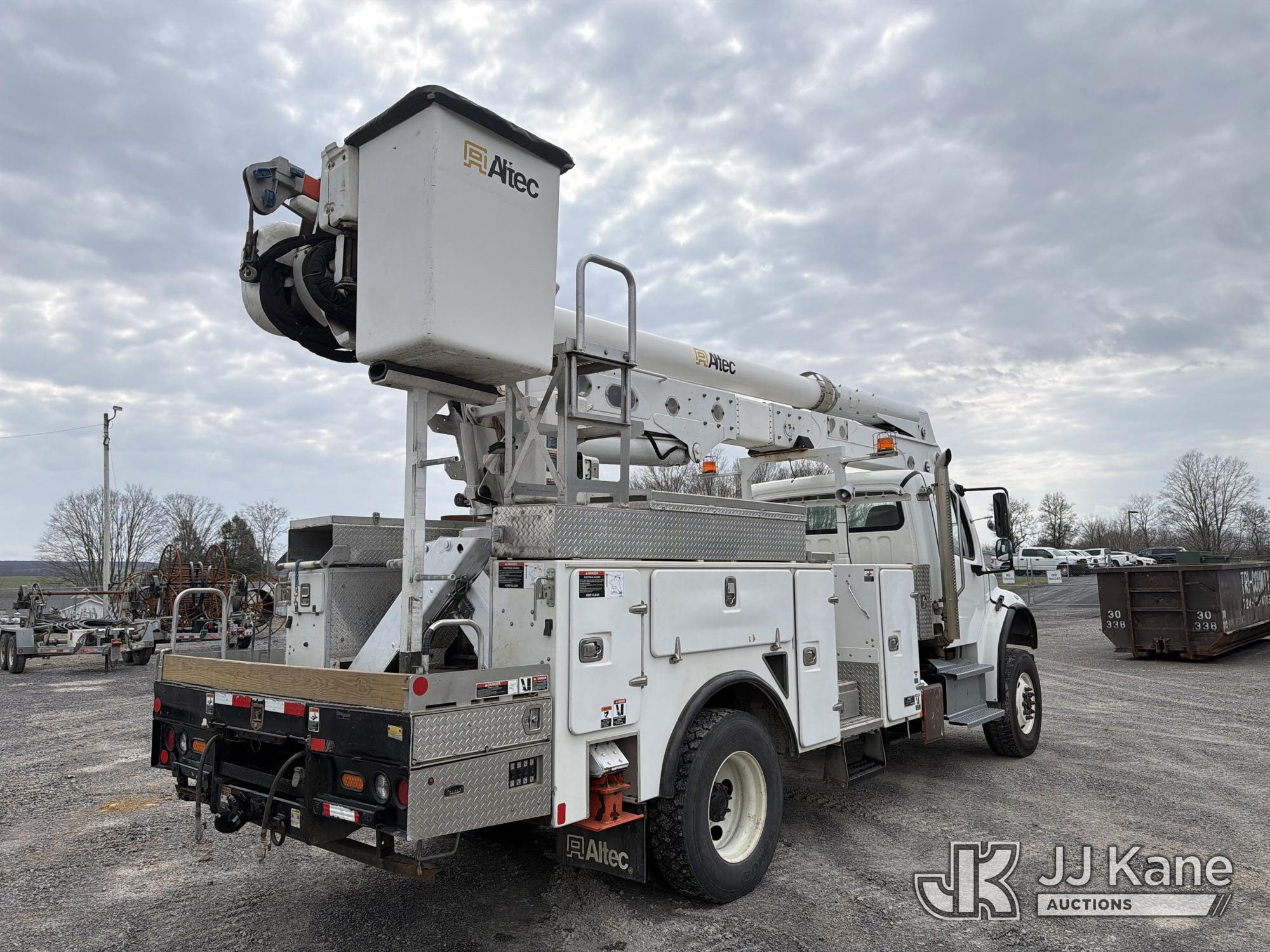 Altec AA55E, 60 ft, Material Handling Bucket Truck s/n 0518FH6175, with single-man bucket & 4 hyd outriggers, rear mounted on 2019 Freightliner M2 4x4 Utility Truck, Cummins L9 9.0L diesel, Auto, A/C, (122,448 miles) (Runs & Moves, Upper Unit Operates) (Reads 7,362 hours) This is a Titled Item*