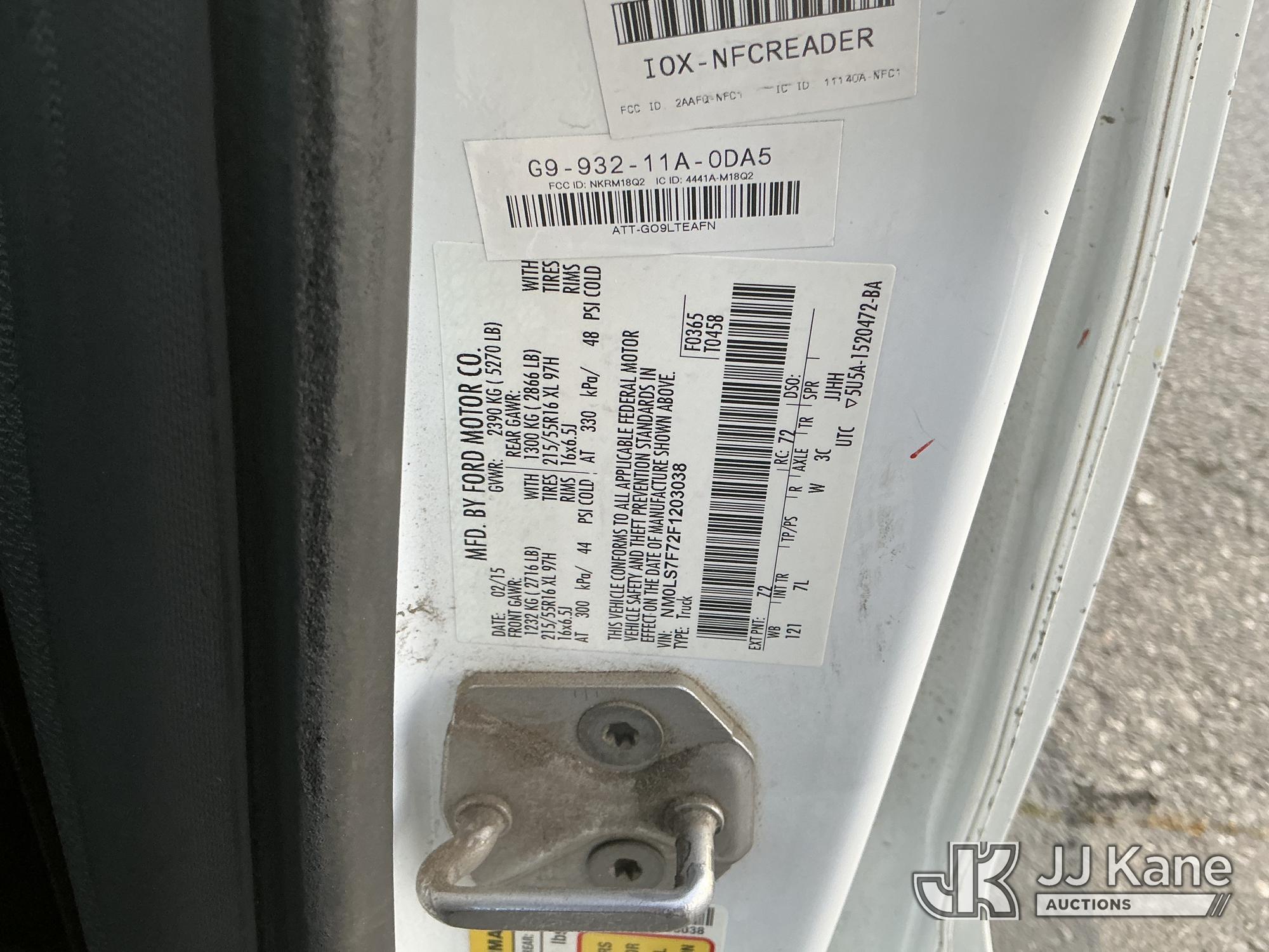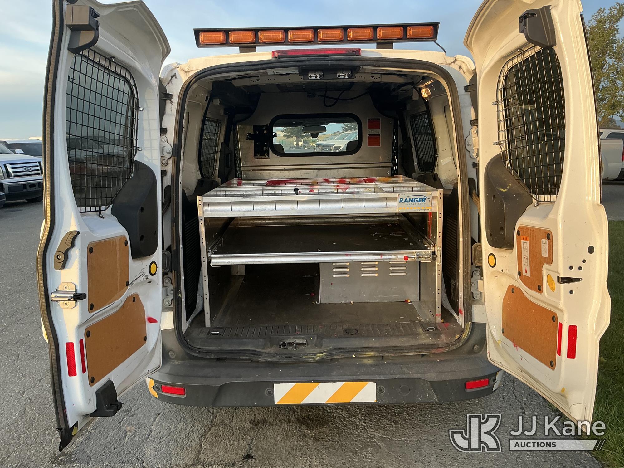 2015 Ford Transit Connect XLT LWB Cargo Van, s/n NM0LS7F72F1203038, 2.5L L4 DOHC 16V FWD, GAS, 6-Speed Automatic, A/C, with Metal Shelves , (102,060 miles) (Runs & Moves)(Gears Sound Like They Grind When Accelerating, Vehicle Shakes When Accelerating, Front Bumper Slightly Sticks Out(Passed Smog)) (Bidding Restricted to Licensed Vehicle Dealers Only), This is a Titled Item*