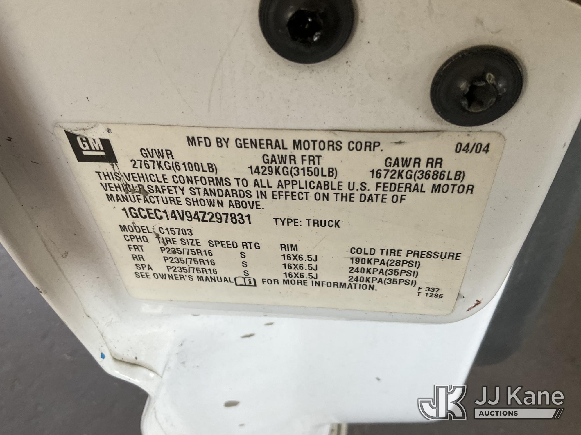 2004 Chevrolet Silverado 1500 Pickup Truck, s/n 1GCEC14V94Z297831, 4.8L V8 OHV 16V RWD, GAS, 4-Speed Automatic, A/C, (Exempt from Odometer Disclosure - Reads 255,379 miles) (Runs & Moves, Engine Light On) (Bidding Restricted to Licensed Vehicle Dealers Only), This is a Titled Item*